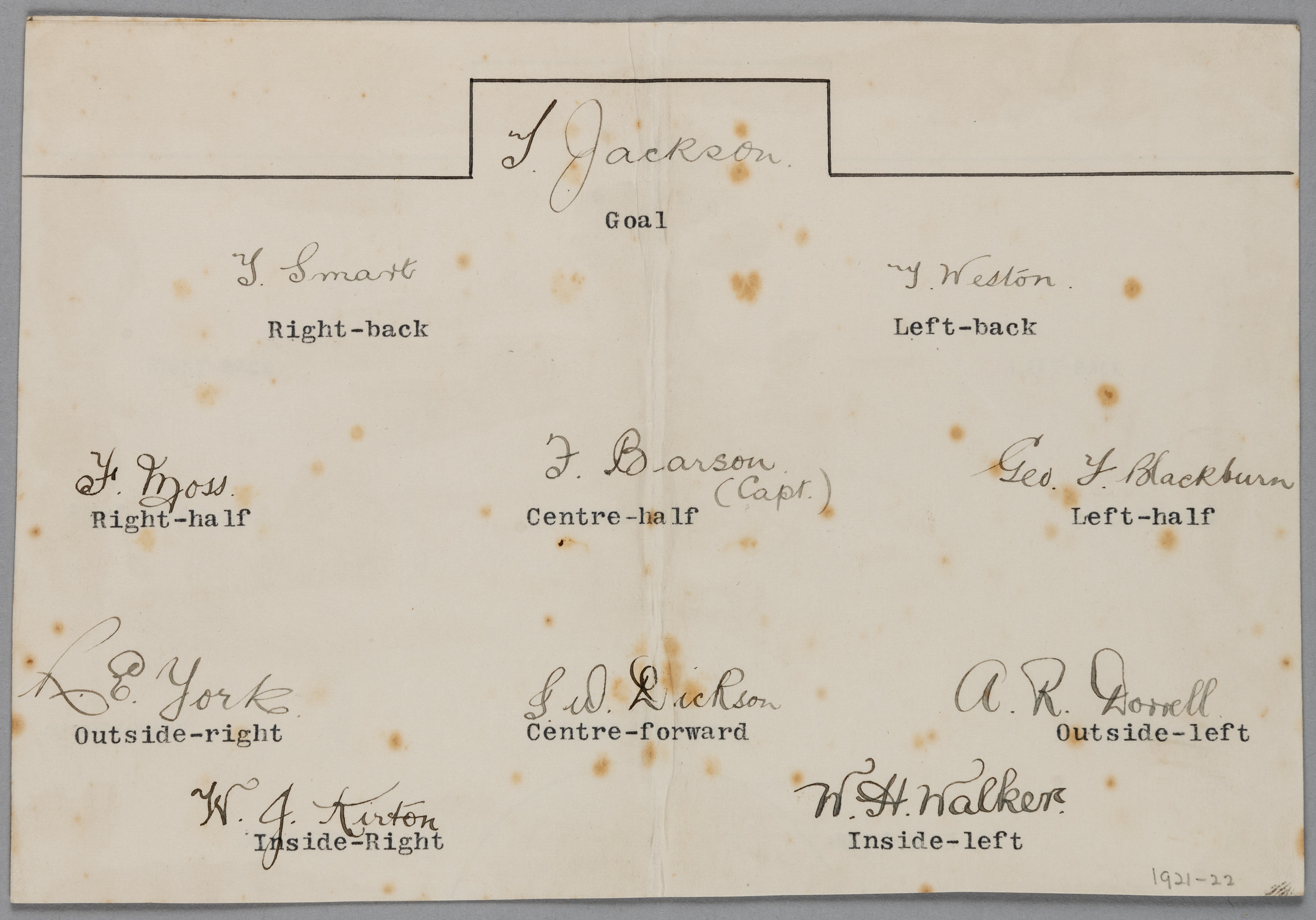 Aston Villa FC 1921-22 autographs, rare original autographed fold-over card size 8.5 by 5.5in. with typed team grid to the open interior, fully autog