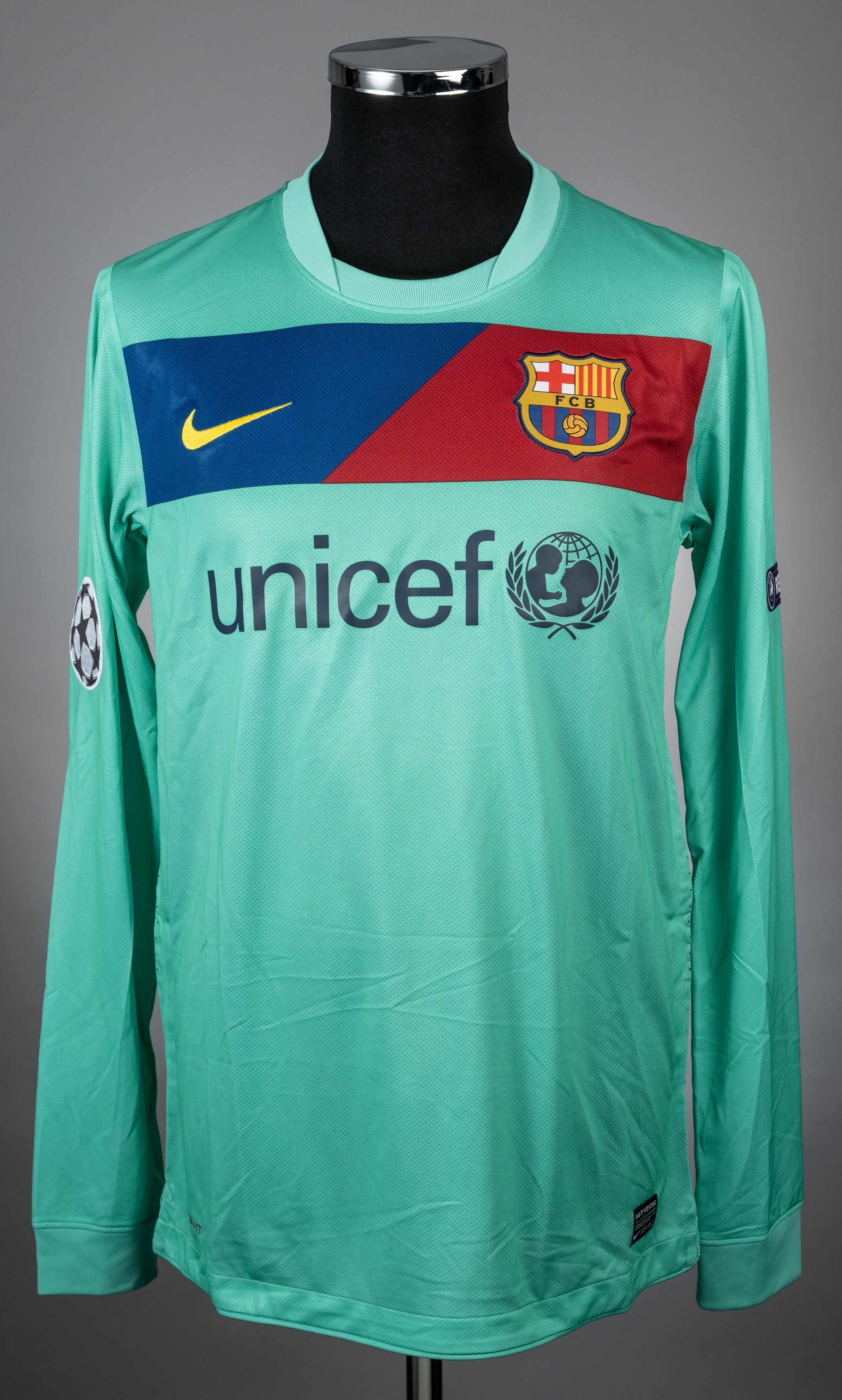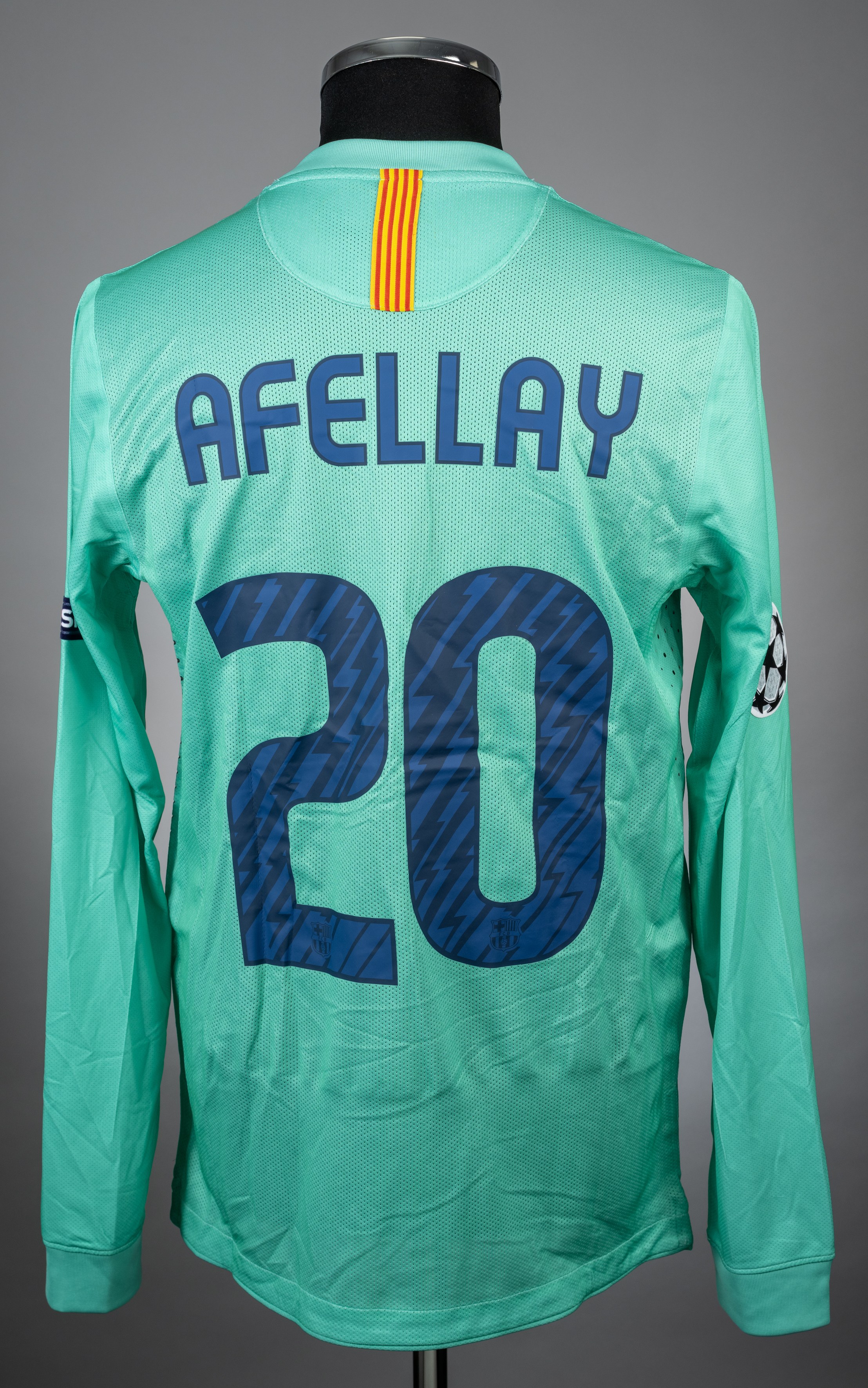 Ibrahim Afellay bench worn Barcelona Champions League no.20 green away jersey 2010-11, played at Emirates Stadium on February 16th and is regarded as