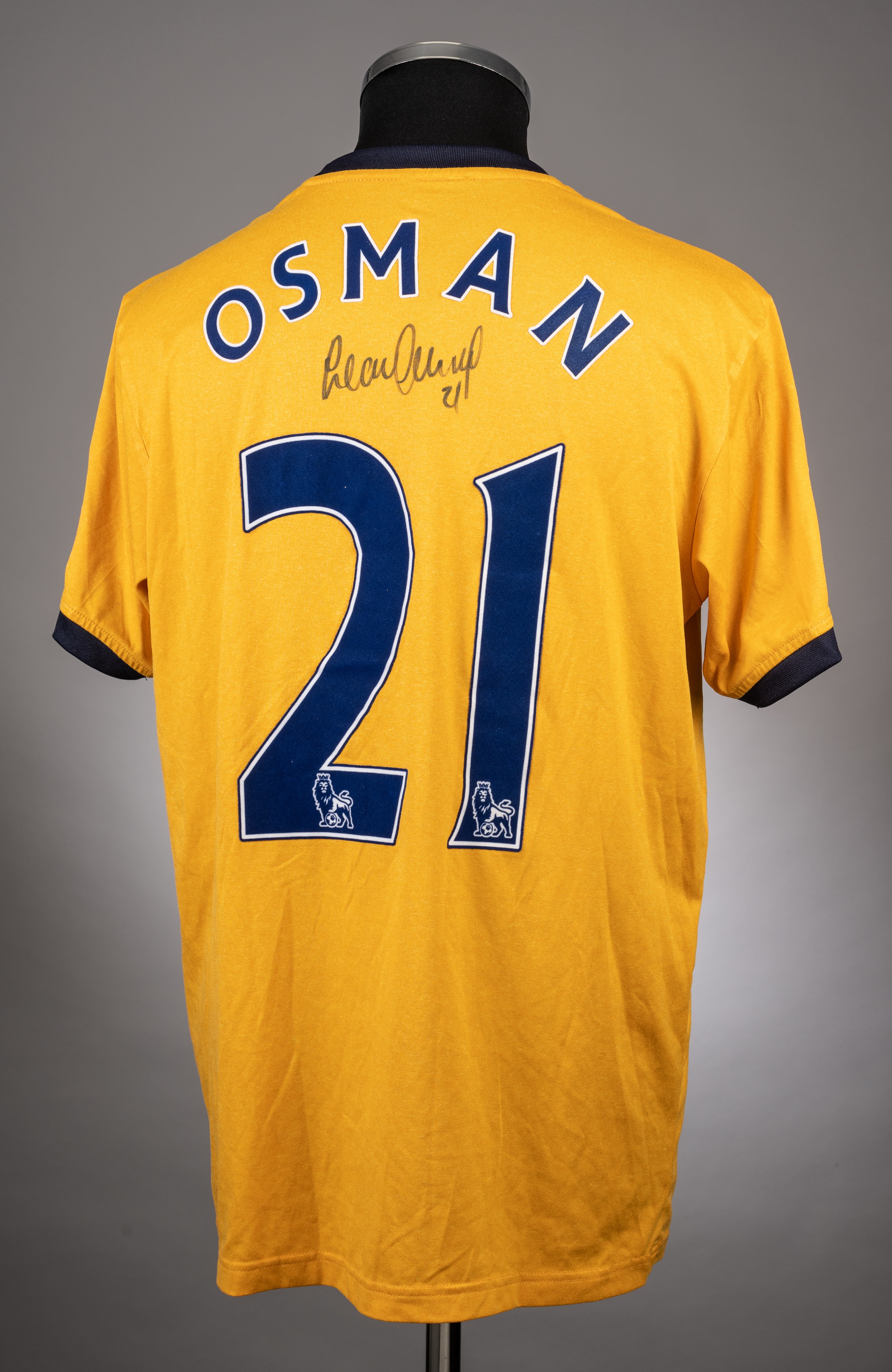 Leon Osman gold Everton FC away jersey season 2011-12 from the game v Newcastle United that took place at St James Park 5/11/2011. Player issue Le Co