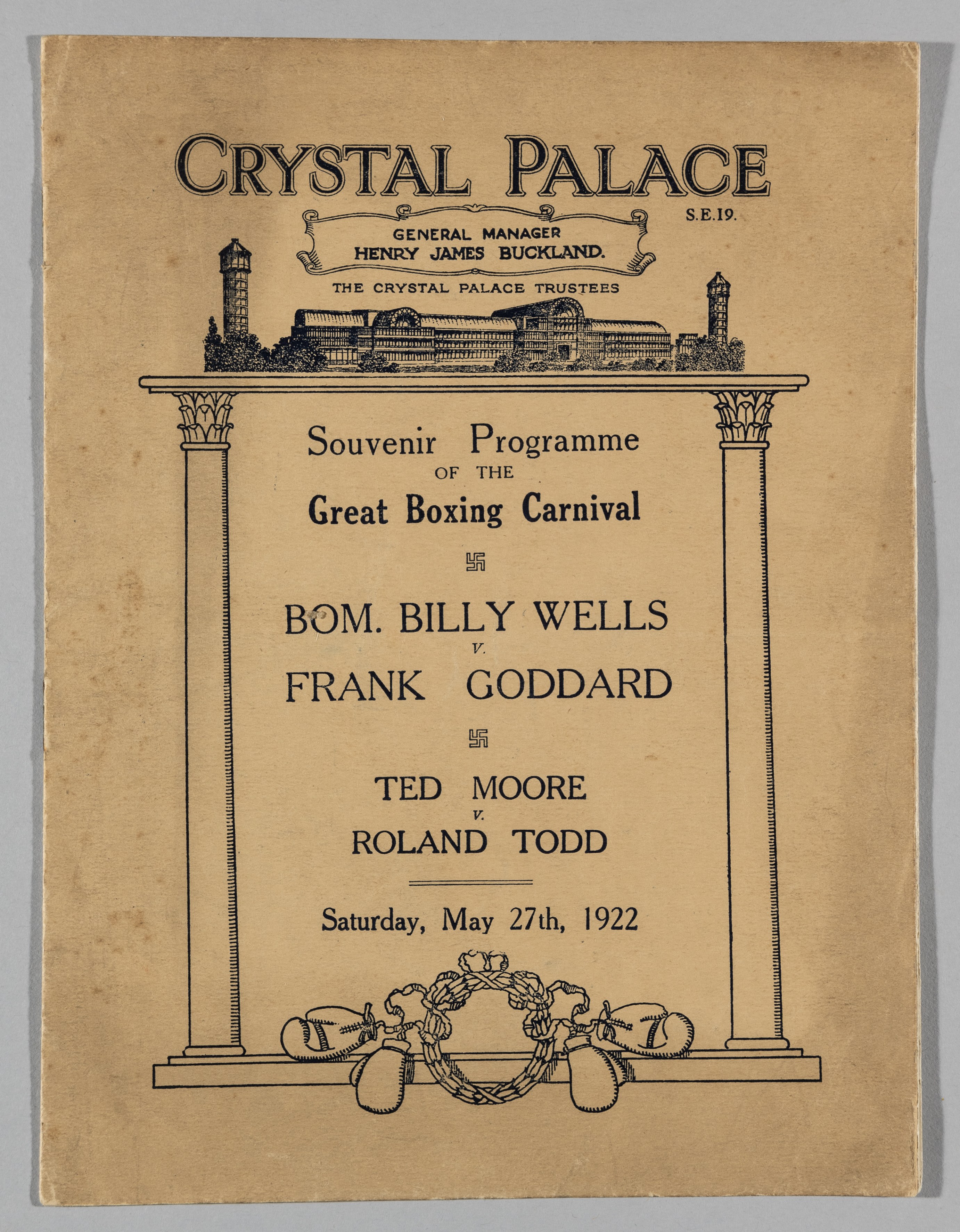Bombardier Billy Wells v. Frank Goddard Great Boxing Carnival programme, also Ted Moore v. Roland Todd, 27th May 1922 at The Crystal Palace Signs