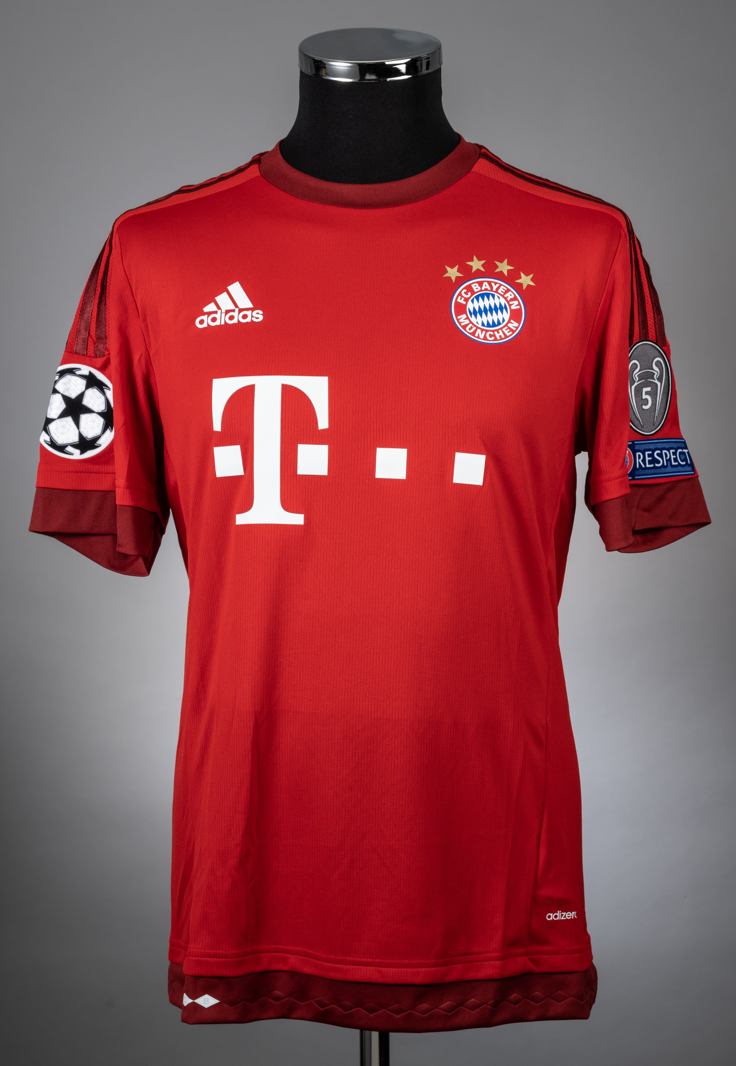 Mario Gotze red No.19 Bayern Munich Champions League short-sleeved jersey, 2015-16, Adidas, with crew-neck collar and printed badge FC BAYERN MUNCHE
