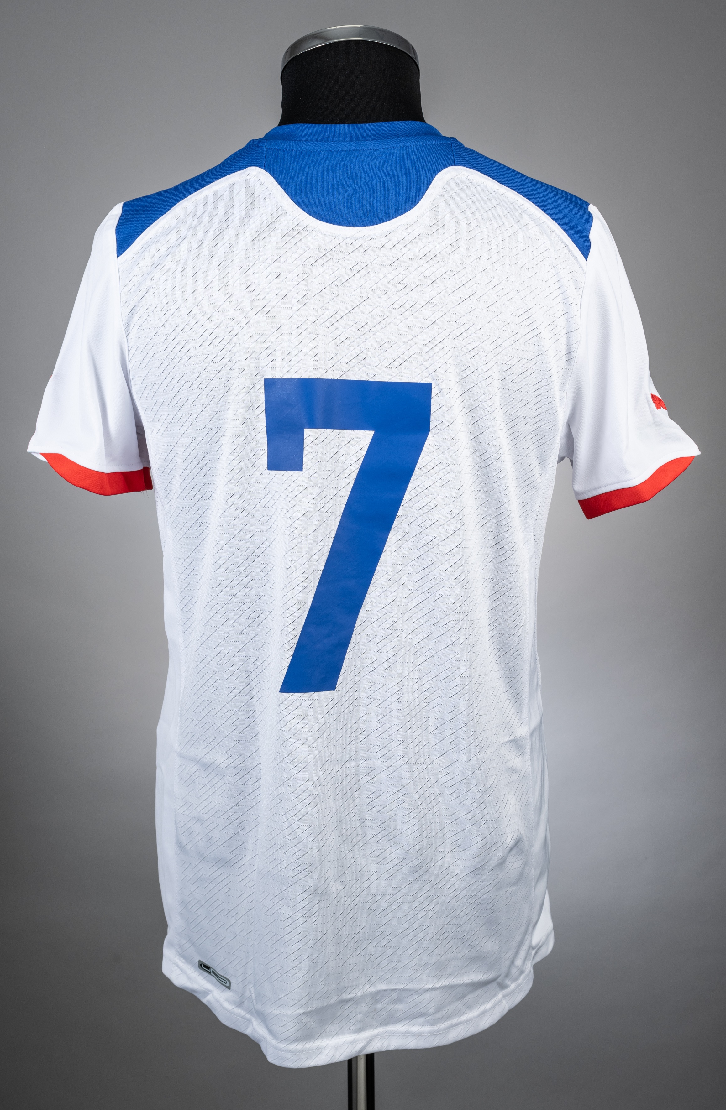 Alexis Sanchez white No.7 Chile v Portugal short-sleeved match worn jersey, 2010-11, Puma, M, with crew-neck collar and badge inscribed FEDERACION DE FUTBOL DE CHILE The jersey was worn by Alexis Sanchez in the friendly match against Portugal played on 26th March 2011, match ending in a 1-1 draw, the jersey was given to Mark Gonzalez