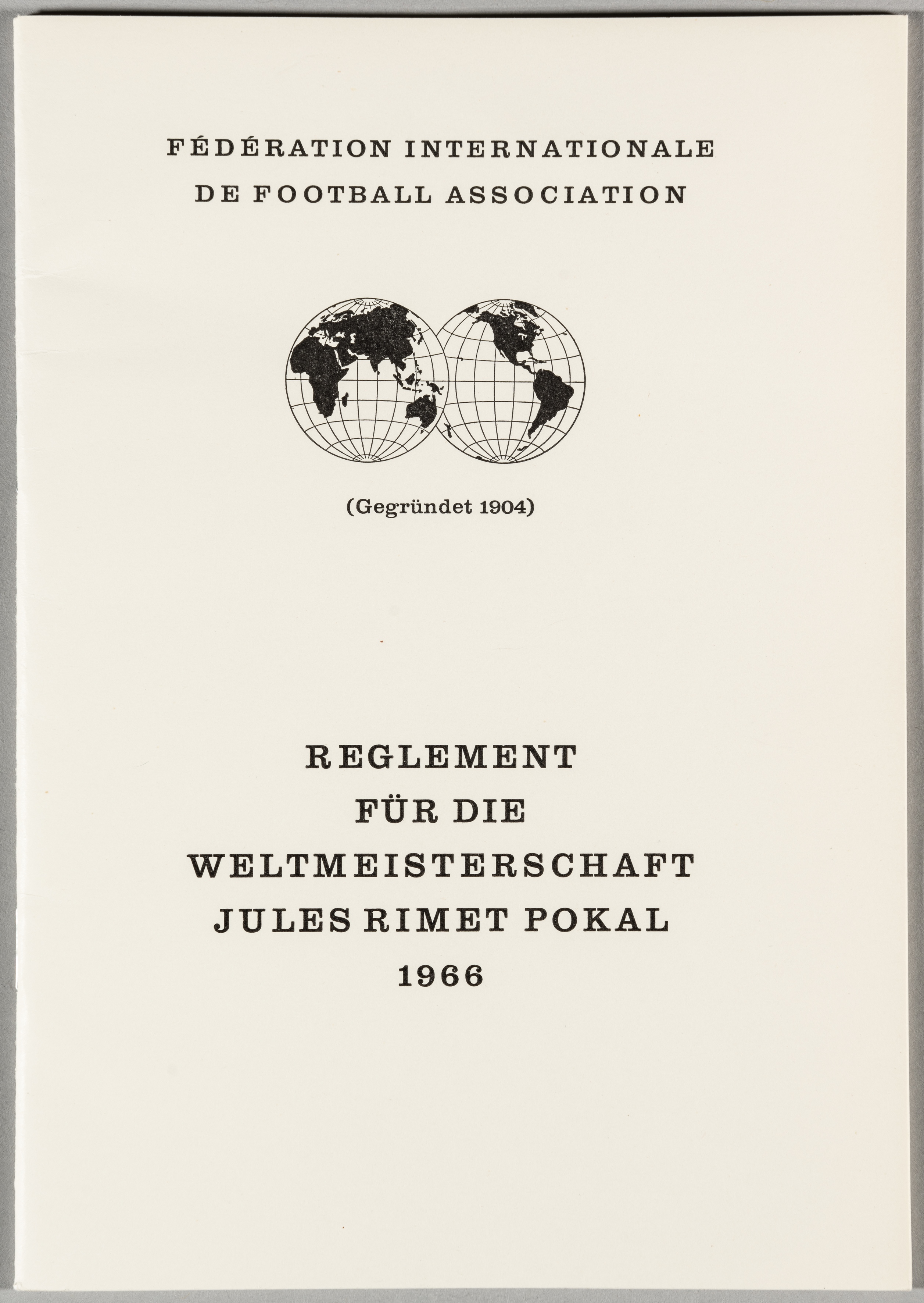 World Cup 1966 England copy of regulations for World Championship Jules Rimet Cup 1966, issued by Federation International de Football Association, 30-page booklet covering all aspects of tournament, German version