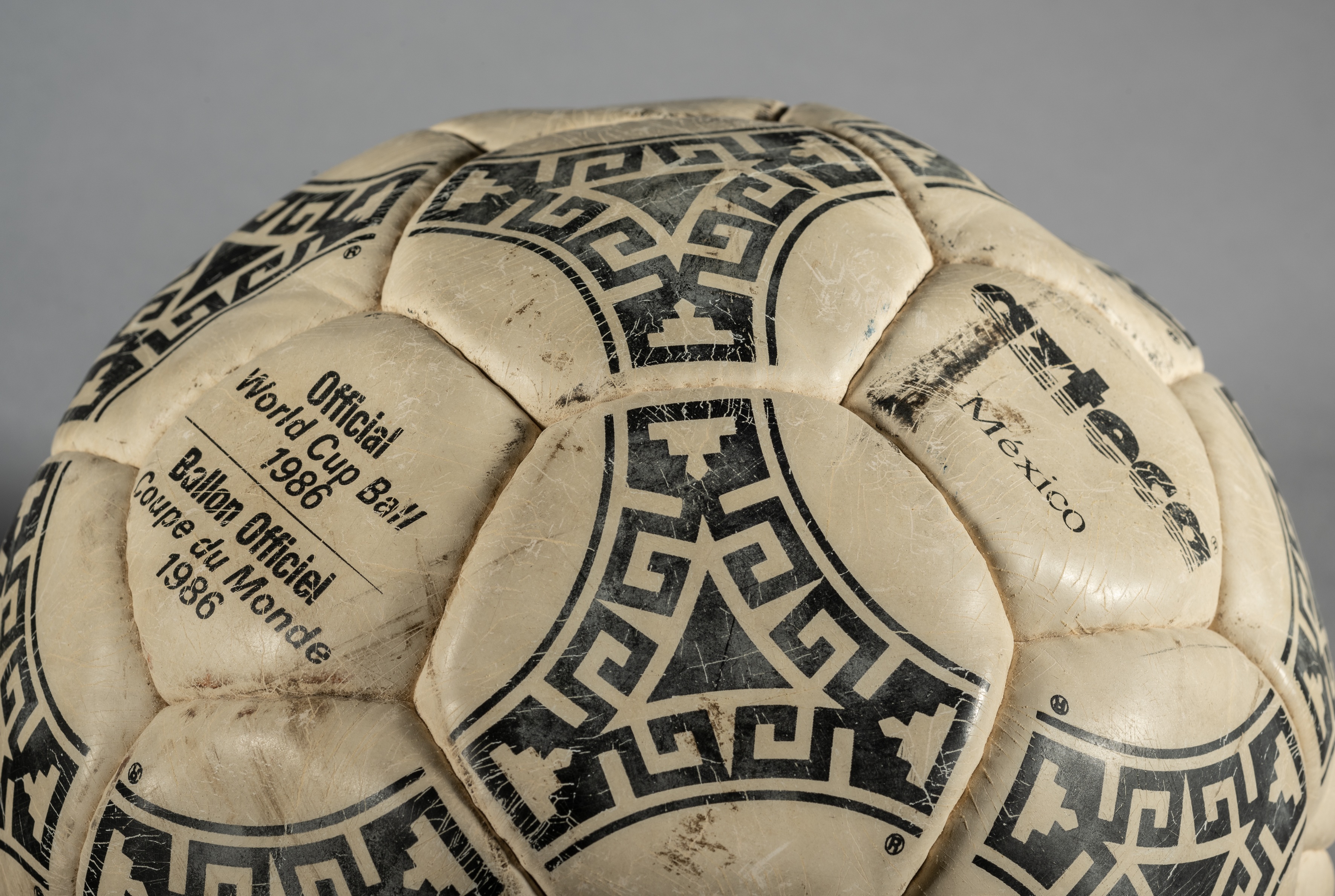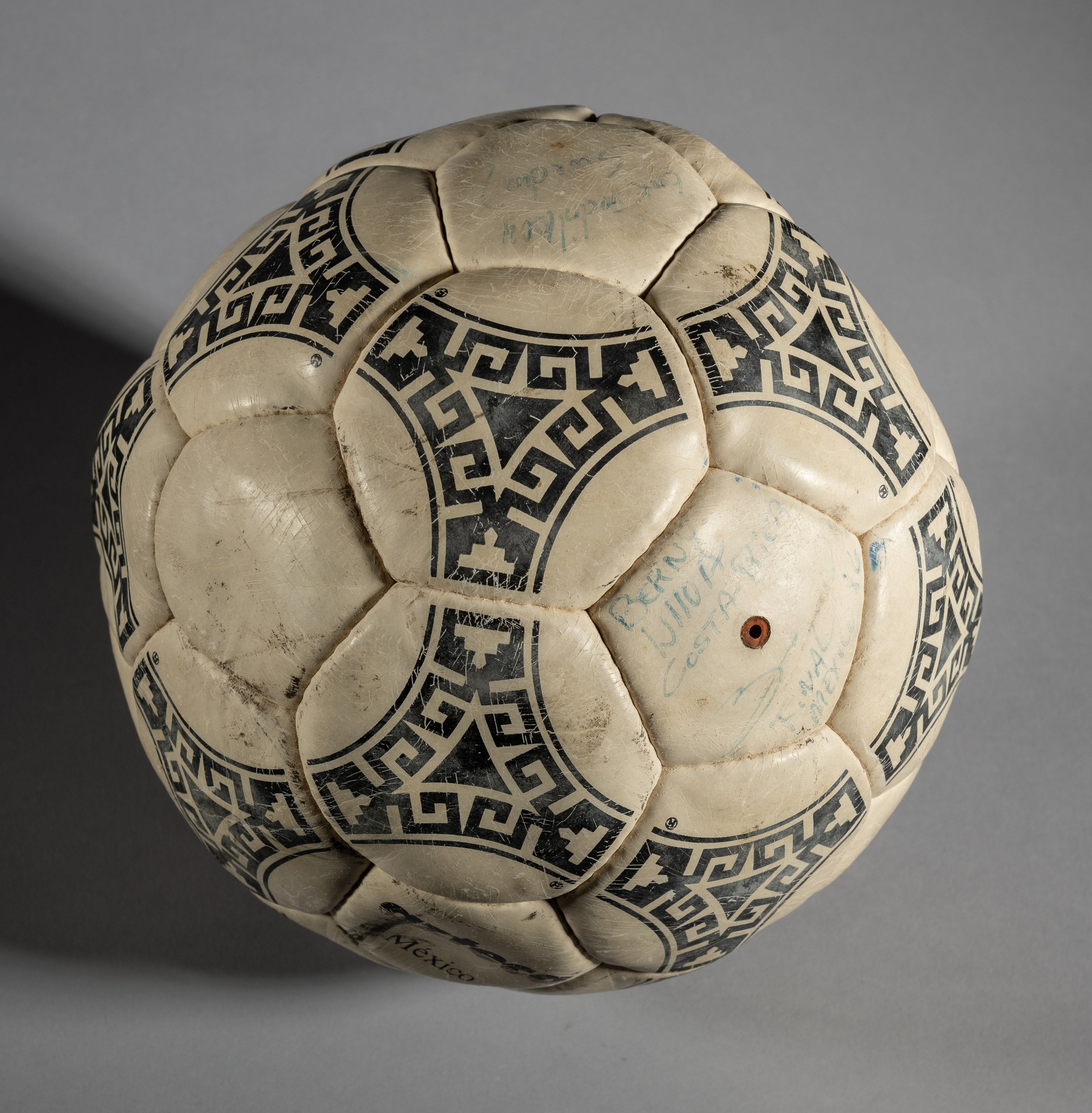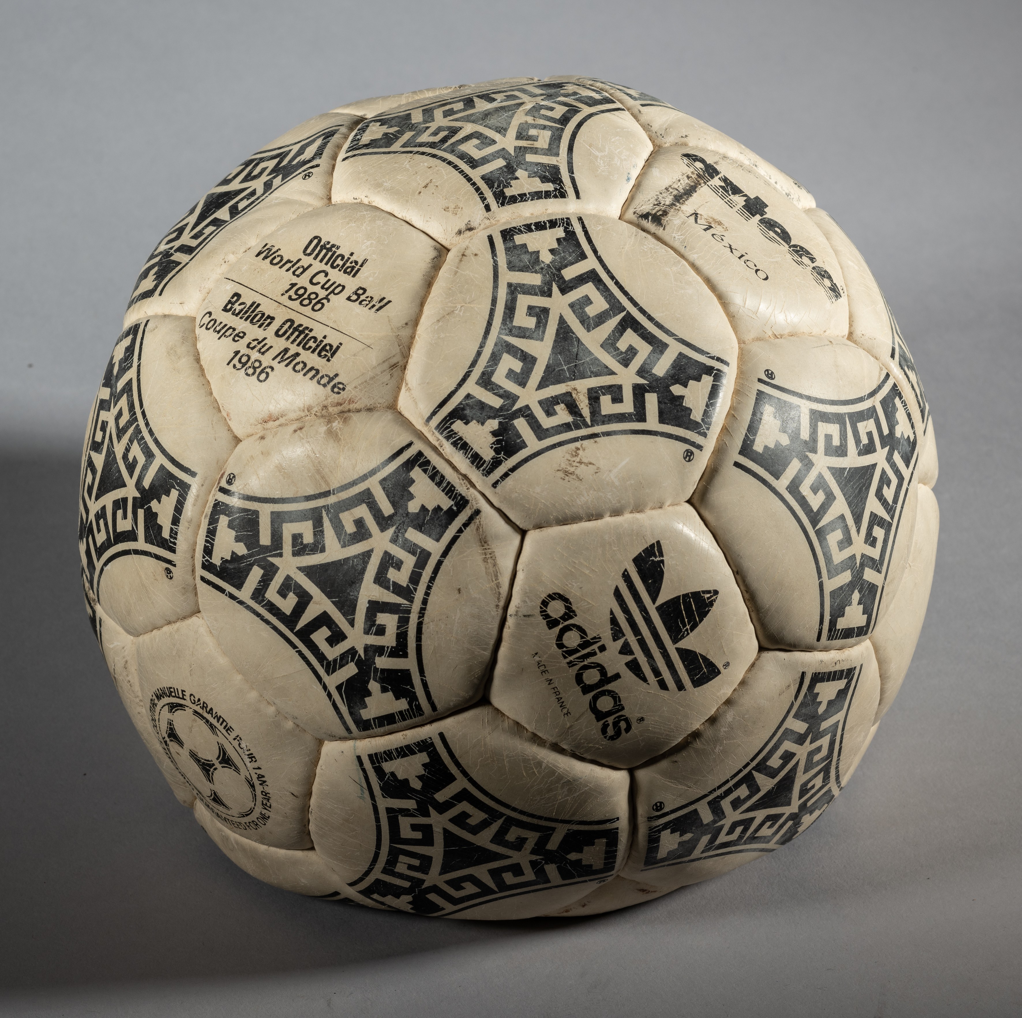 The match ball used for the Argentina v Germany FIFA World Cup Final played at the Estadio Azteca, Mexico City, 29th June 1986, offered with a signed letter of provenance from the Brazilian FIFA match referee Romualdo Arppi Filho, the ball autographed by Romualdo Arppi Filho and his assistants Erik Fredriksson and Bernylloa Morea the white Adidas Azteca ball is formed of 32 pentagonal panels with a sinuous black & white design inspired by the architecture and murals of the Aztec Civilisation that flourished in central Mexico through the 14th to the 16th centuries. The curvature of the Aztec motifs also acts to frame a series of white discs reserved for the printing of the Adidas branding and confirmation the Azteca is the official ball of the 1986 World Cup. The FIFA 1986 World Cup, Mexico, saw the introduction of the first polyurethane coated, rain-resistant, entirely non-leather synthetic match ball, designed for enhanced qualities on hard, rough and wet surfaces. The Azteca was hand-sewn and consisted of an outer polyurethane wearing coat and three lower layers, which mutually complemented one another with varying structures Adidas termed “Adicron.” These were intended to ensure the ball’s resistance, ability to retain its shape and be waterproof. Adidas were rising to the challenge of producing a high-performance football at World Cup venues staged at high-altitude on sun-baked pitches where turf management is extremely challenging, but at a date in the calendar that coincided with the beginnings of Mexico’s rainy season. The Adidas Azteca represented a massive leap forward for the game. In the 1986 World Cup final played on the 29th June 1986 at the Estadio Azteca before 114,600 spectators Argentina defeated West Germany 3-2 to lift the World Cup for a 2nd time. Jose Luis Brown opened the scoring for Argentina in the 23rd minute with a header after an error of the German goalkeeper, Harald Schumacher on a free-kick from the right and it stayed at 1–0 until half-time. 11 minutes into the second half, Jorge Valdano doubled Argentina's lead with a low side foot finish after cutting in from the left past the advancing goalkeeper.Karl-Heinz Rummenigge pulled a goal back in the 74th minute from close range for West Germany, his first goal in the tournament. West Germany then equalised in the 81st minute, with Rudi Voller scoring with a header from close range. Although Diego Maradona was heavily marked by Lothar Matthaus throughout the game, his pass to Jorge Burruchaga in the 84th minute allowed Argentina to regain the lead at 3–2 when he slid the ball past the advancing goalkeeper from the right and into the corner of the net.