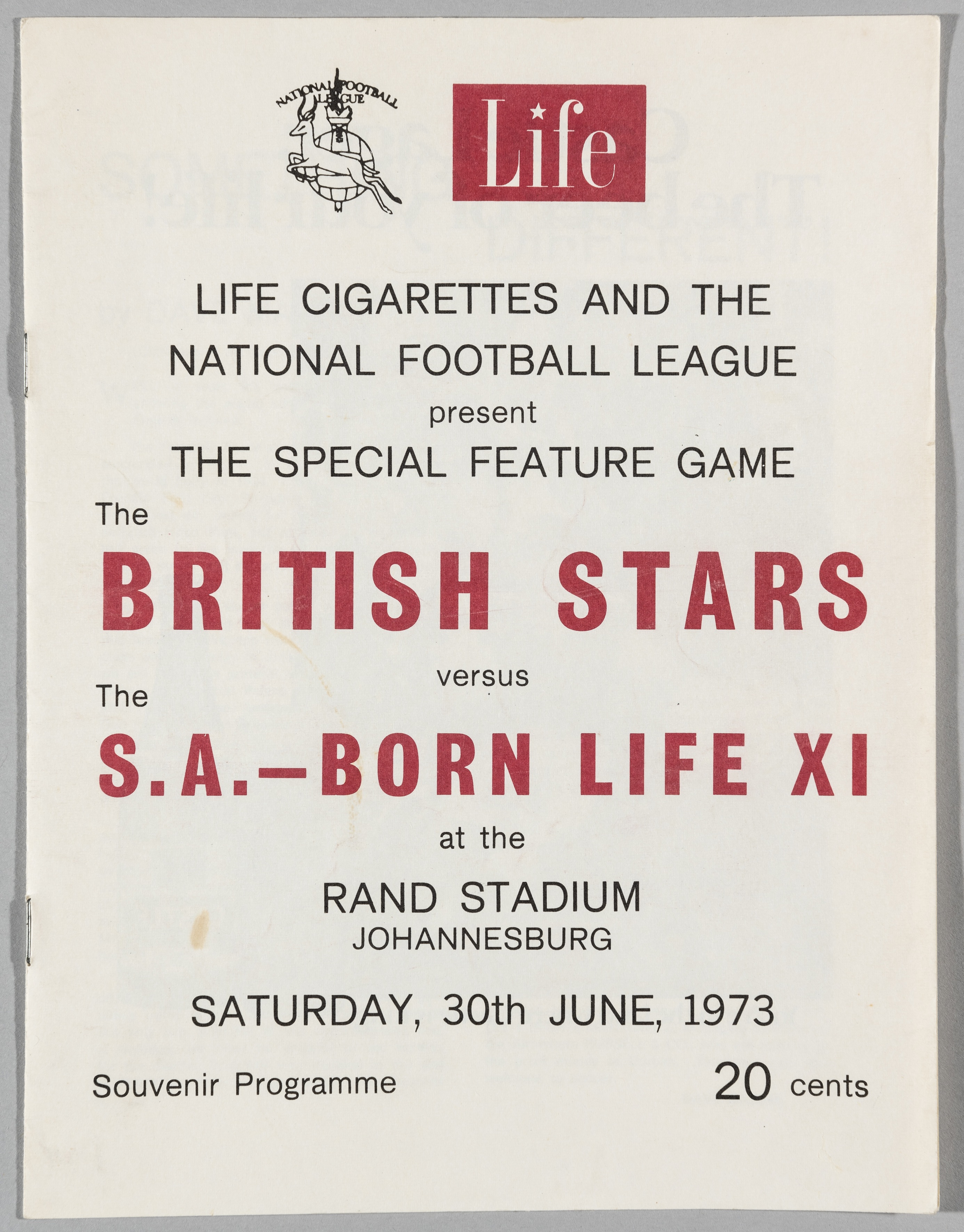 Rare signed British Stars v the South Africa Born Life XI football programme, played at Rand Stadium on 30th June 1973, 12-page programme with centr