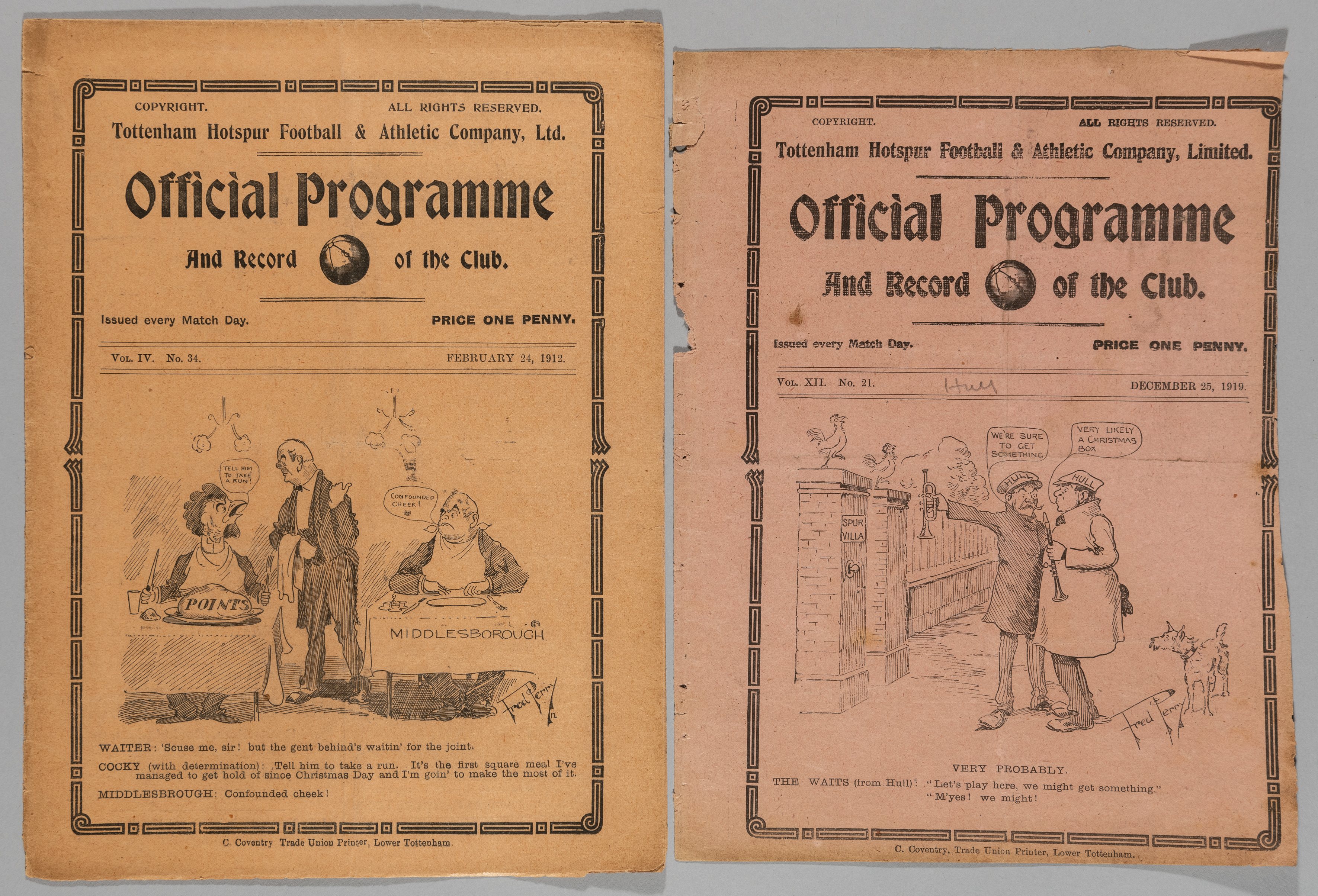 Tottenham Hotspur v Arsenal reserves programme 24th February 1912, and Tottenham Hotspur v Hull City programme Christmas Day 1919 (2)