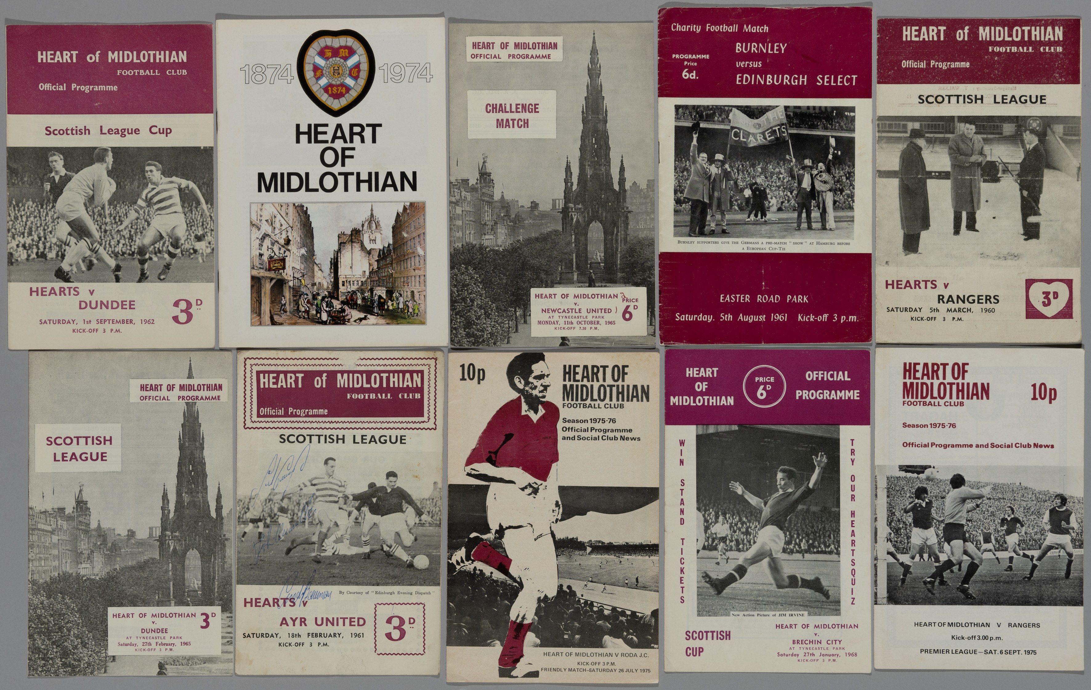 A collection of 1960s Heart of Midlothian home match programmes, including League, Scottish Cup, League Cup etc including Newcastle United, Challenge Match, 11th October 1965 and Edinburgh Select v. Burnley, 5th August 1961 at Easter Road (approx. 60)