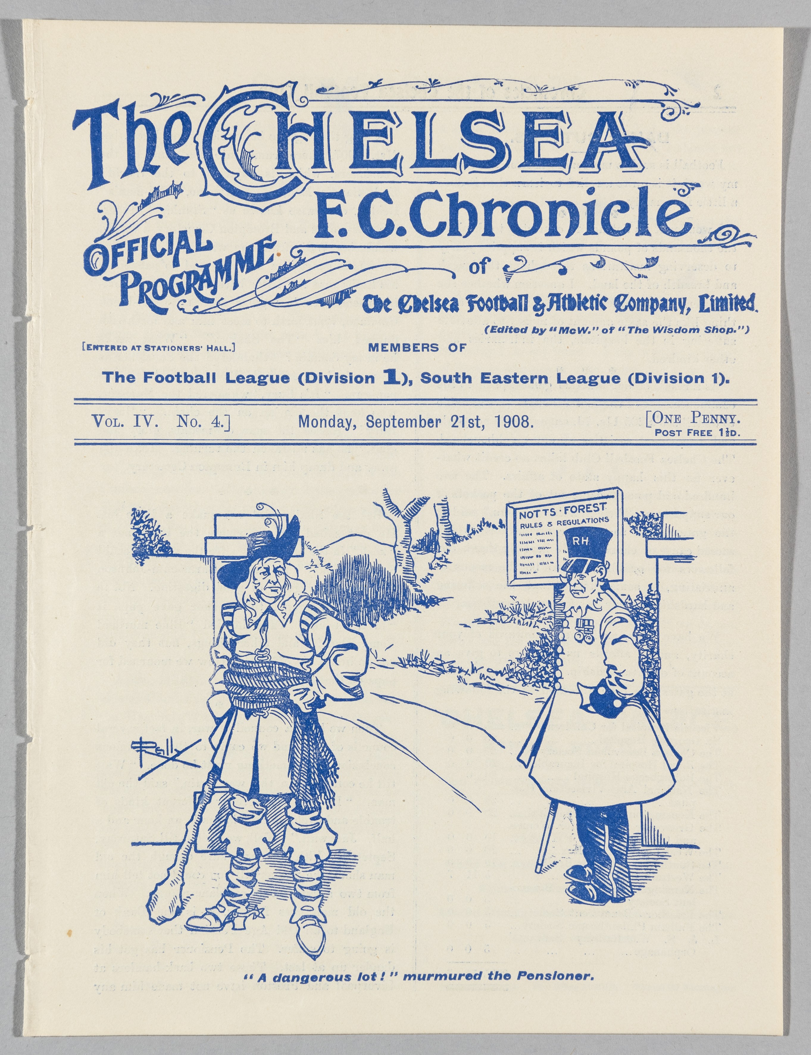 Chelsea v Nottingham Forest programme 21st September 1908, ex-bound volume