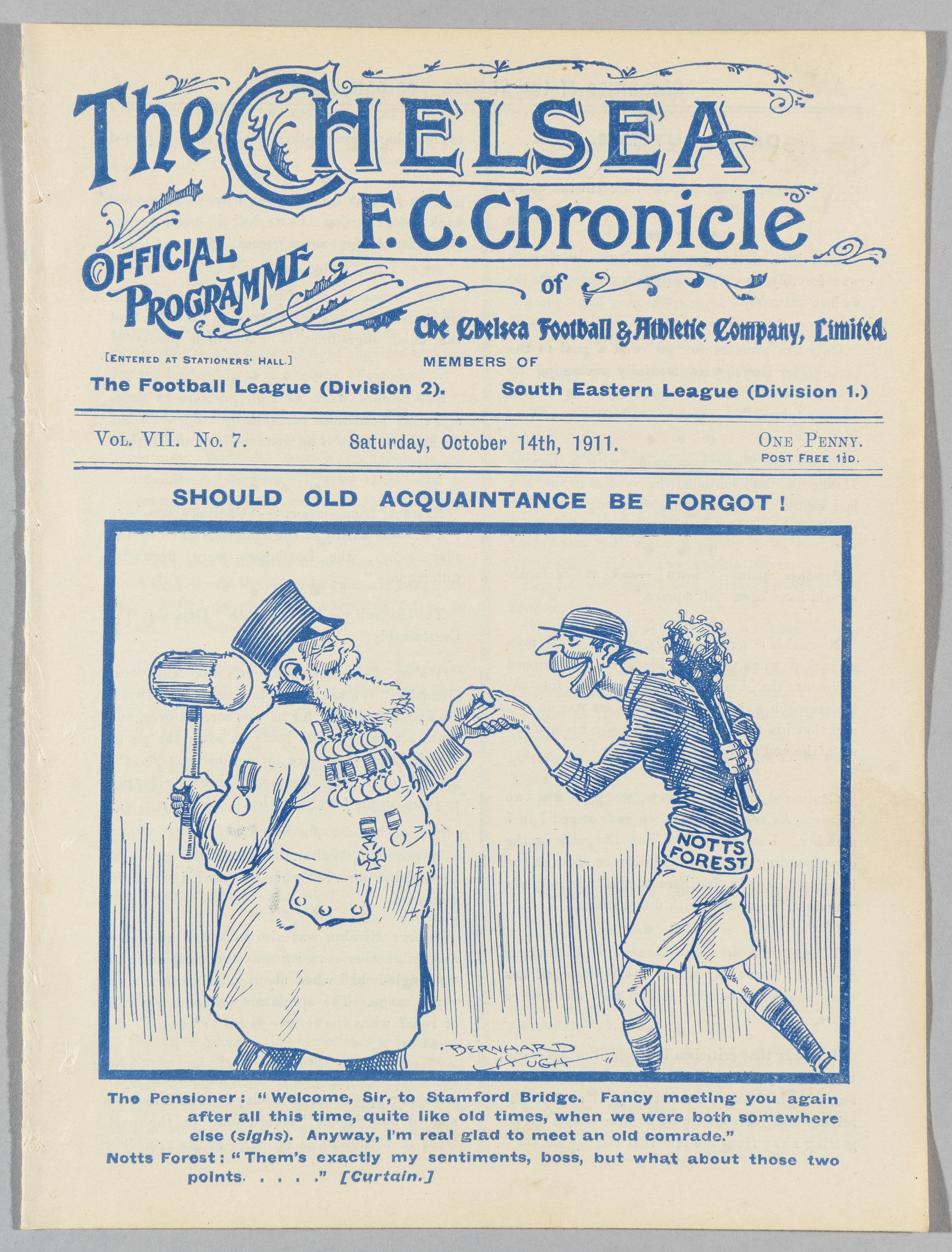Chelsea v Nottingham Forest programme 14th October 1911, ex-bound volume