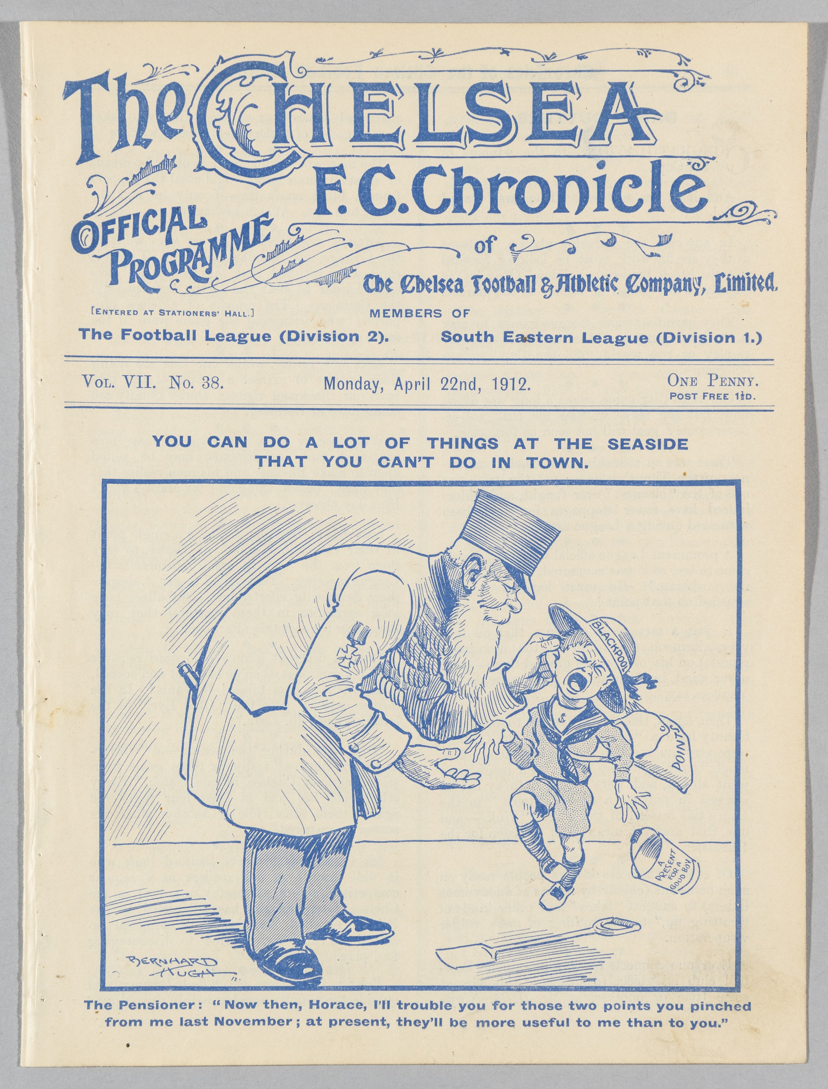 Chelsea v Blackpool programme 22nd April 1912, ex-bound volume
