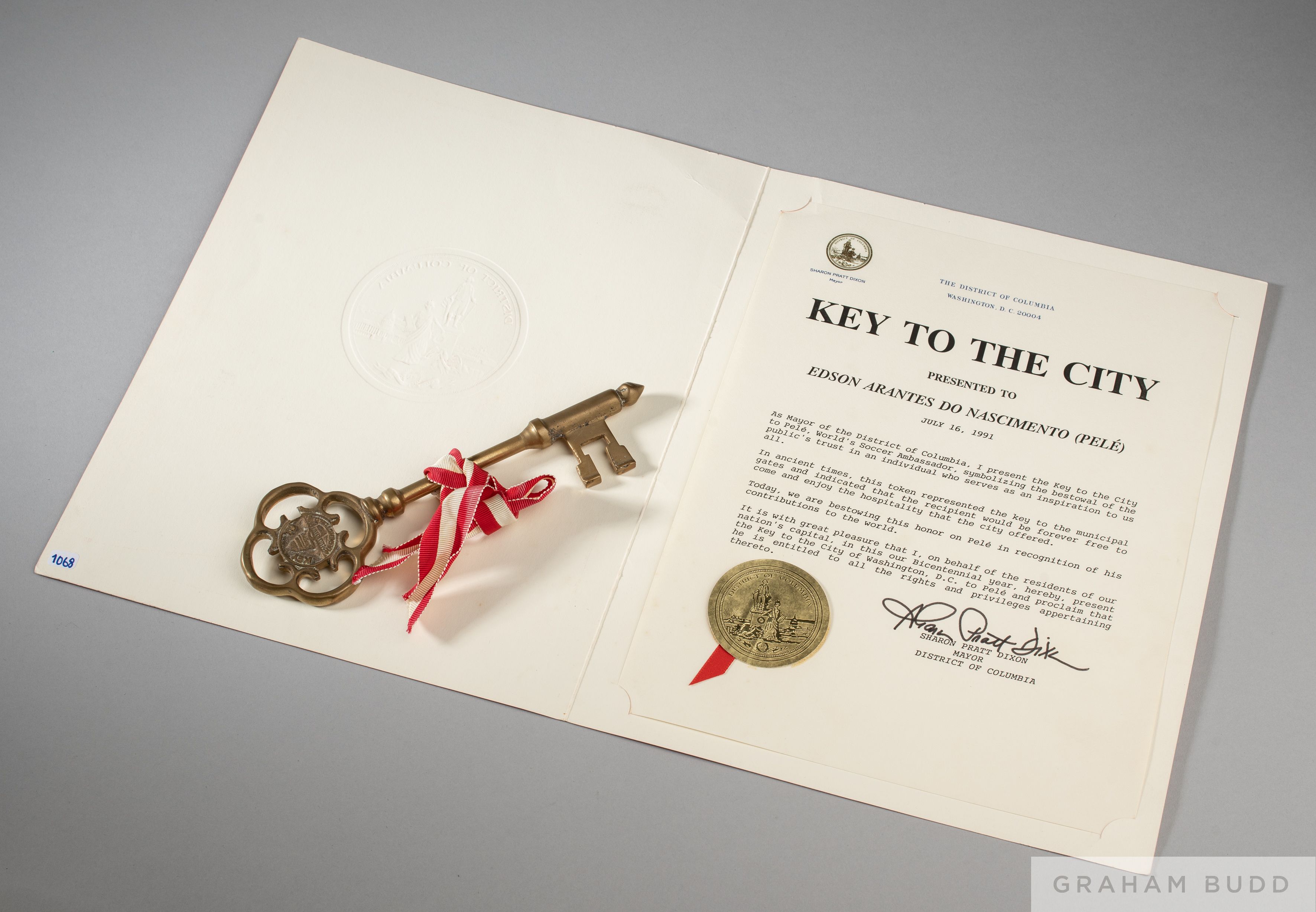A key to the city and certificate presented to Pelé in 1991 by the Mayor of the District of Columbia the certificate states in part “As Mayor of the