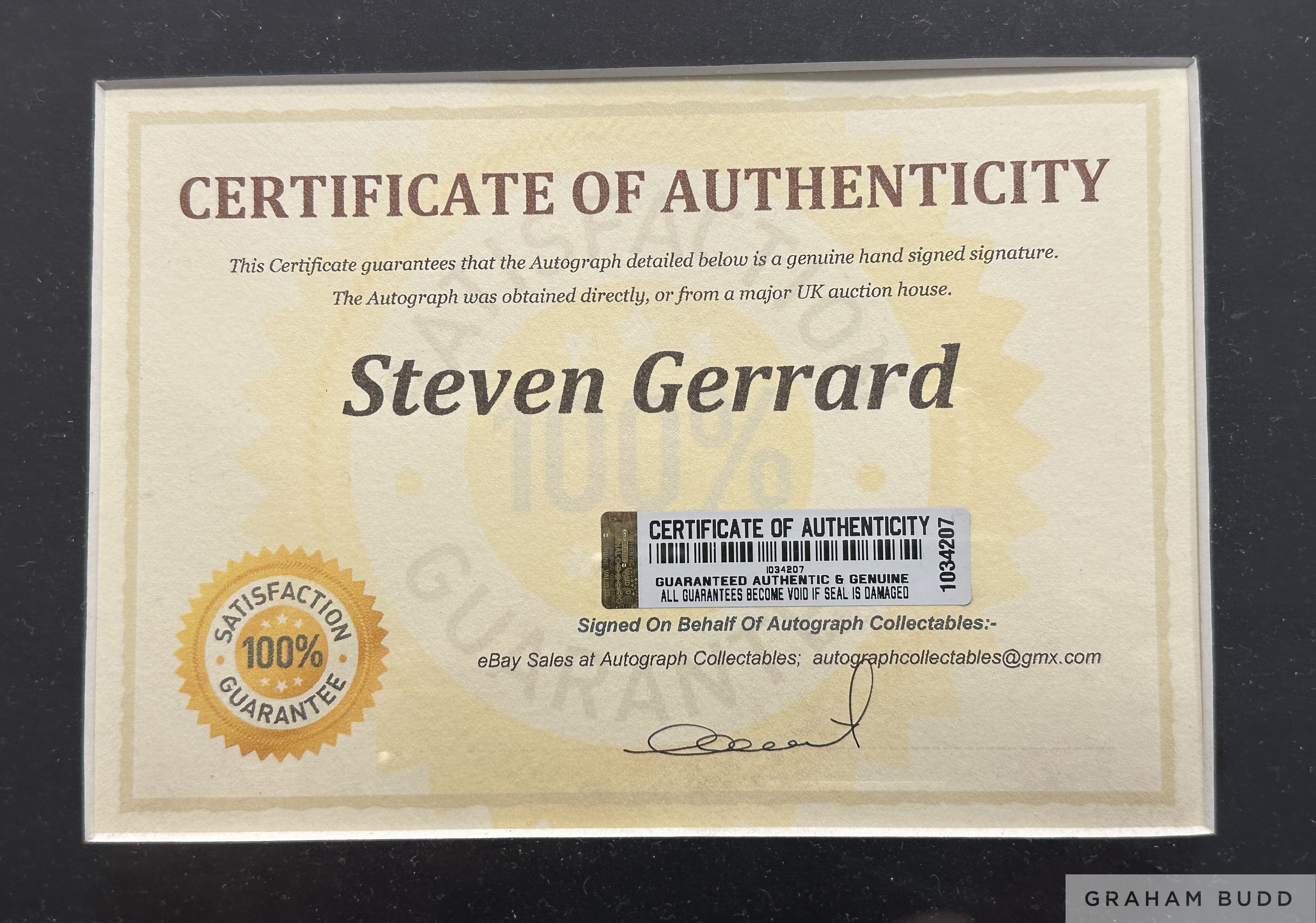 Steven Gerrard autographed framed display comprising signed replica shirt, multi signed Anfield card, various photographs, certificate of authenticit