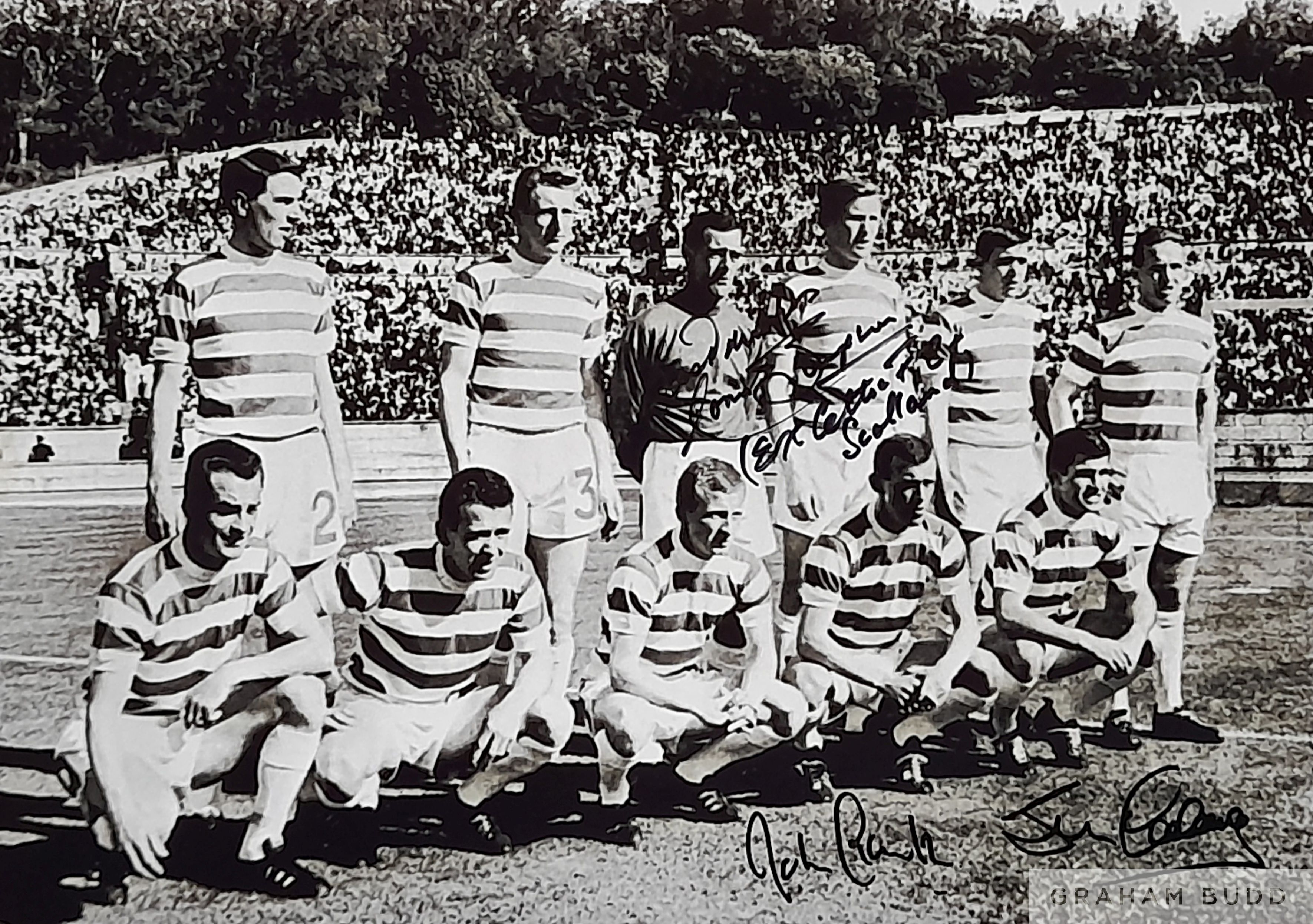 Celtic 1967 Lisbon Lions signed photograph, shows the team photo prior to ko in the European Cup Final versus Inter Milan, autographed by Jim Craig,