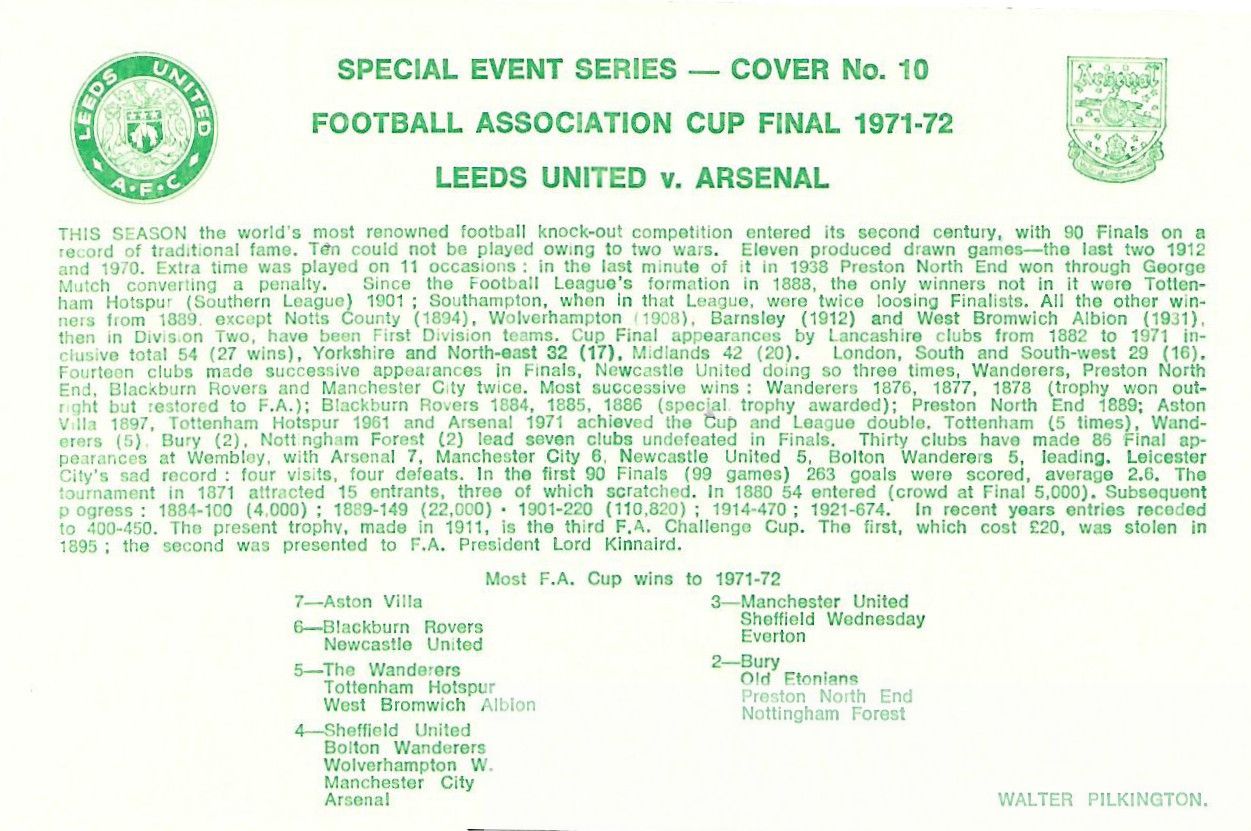 Leeds United signed 1972 FA Cup winners First Day Cover from the official football league series of special events season 1971-72 F.C. Number 10, s