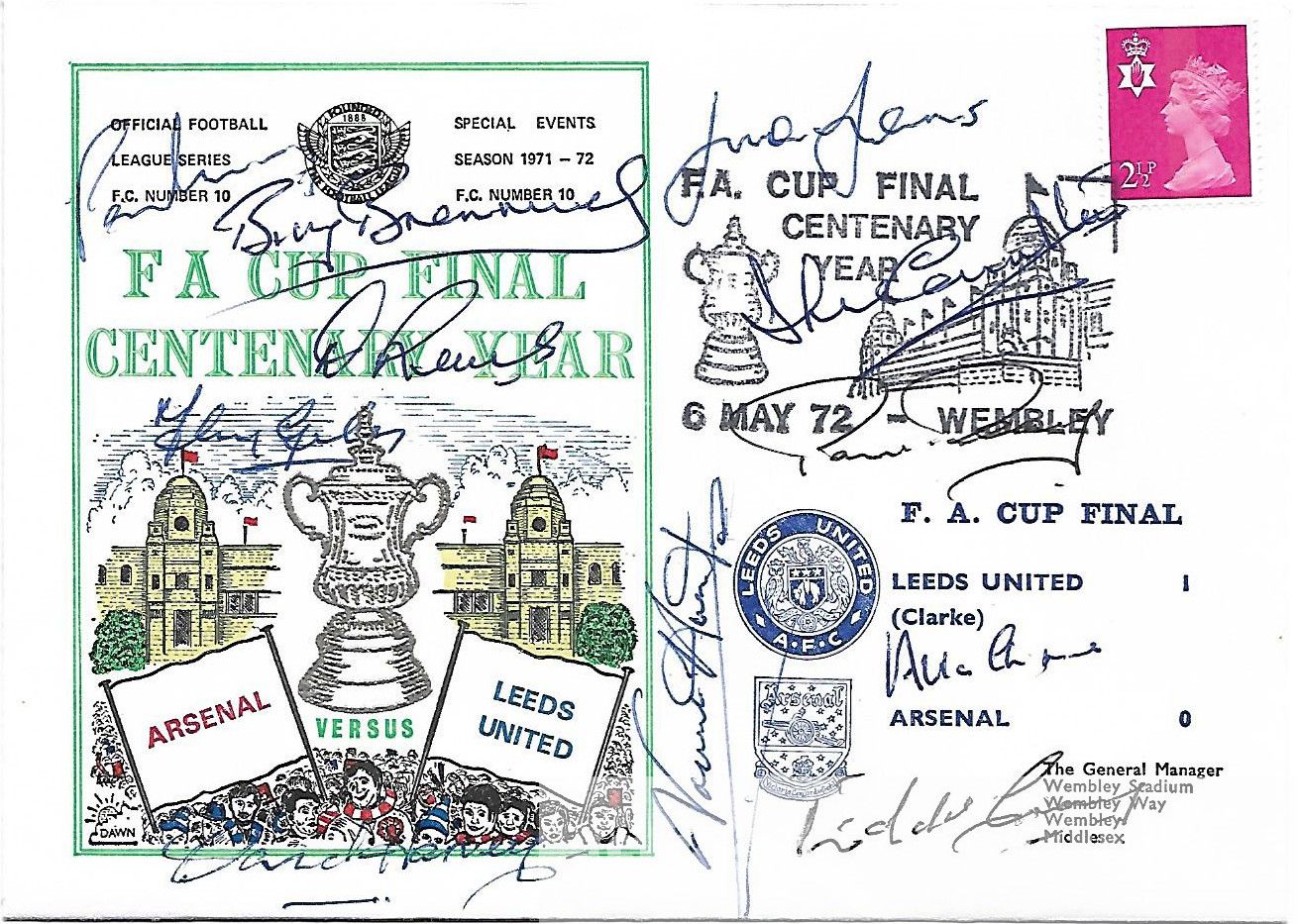 Leeds United signed 1972 FA Cup winners First Day Cover from the official football league series of special events season 1971-72 F.C. Number 10, signed by manager Don Revie and 10 players, Allan Clarke, Eddie Gray, Paul Reaney, David Harvey, Peter Lorimer, Johnny Giles, Jack Charlton, Billy Bremner, Mick Jones and Norman Hunter, complete with statistical insert card