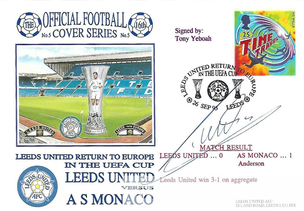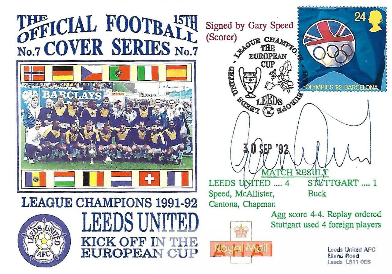 Leeds United signed First Day Covers, five in total signed by ex Legends of the Elland Road club, Jack Charlton, Allan “Sniffer” Clarke, Norman “Bite Yer Legs” Hunter, Tony Yeboah and Gary Speed. Two of the covers are very Limited Edition signed collectors items, Gary Speed number 116 of 200 with Toy Yeboah number 225 of 249