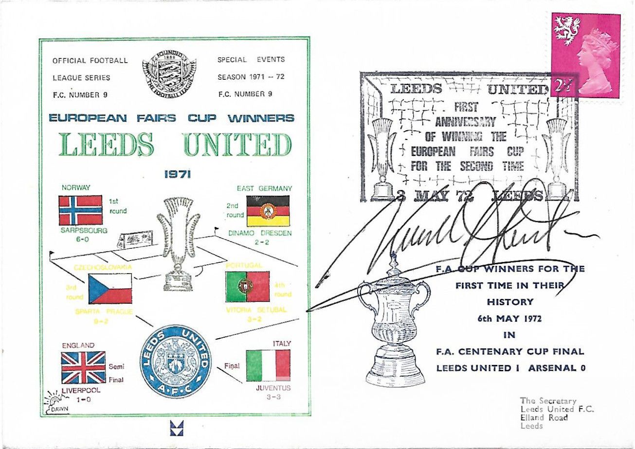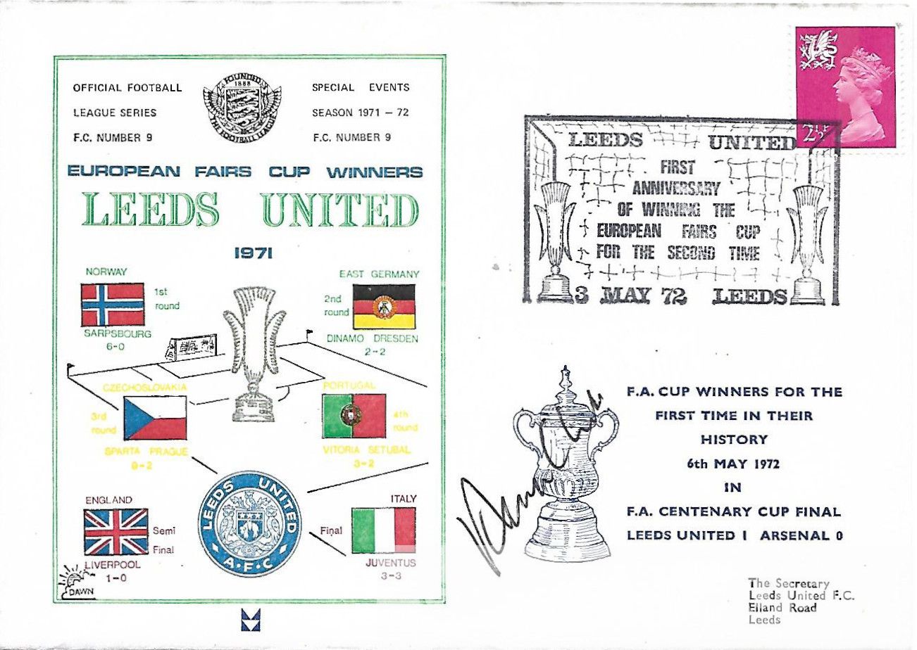 Leeds United signed First Day Covers, five in total signed by ex Legends of the Elland Road club, Jack Charlton, Allan “Sniffer” Clarke, Norman “Bit