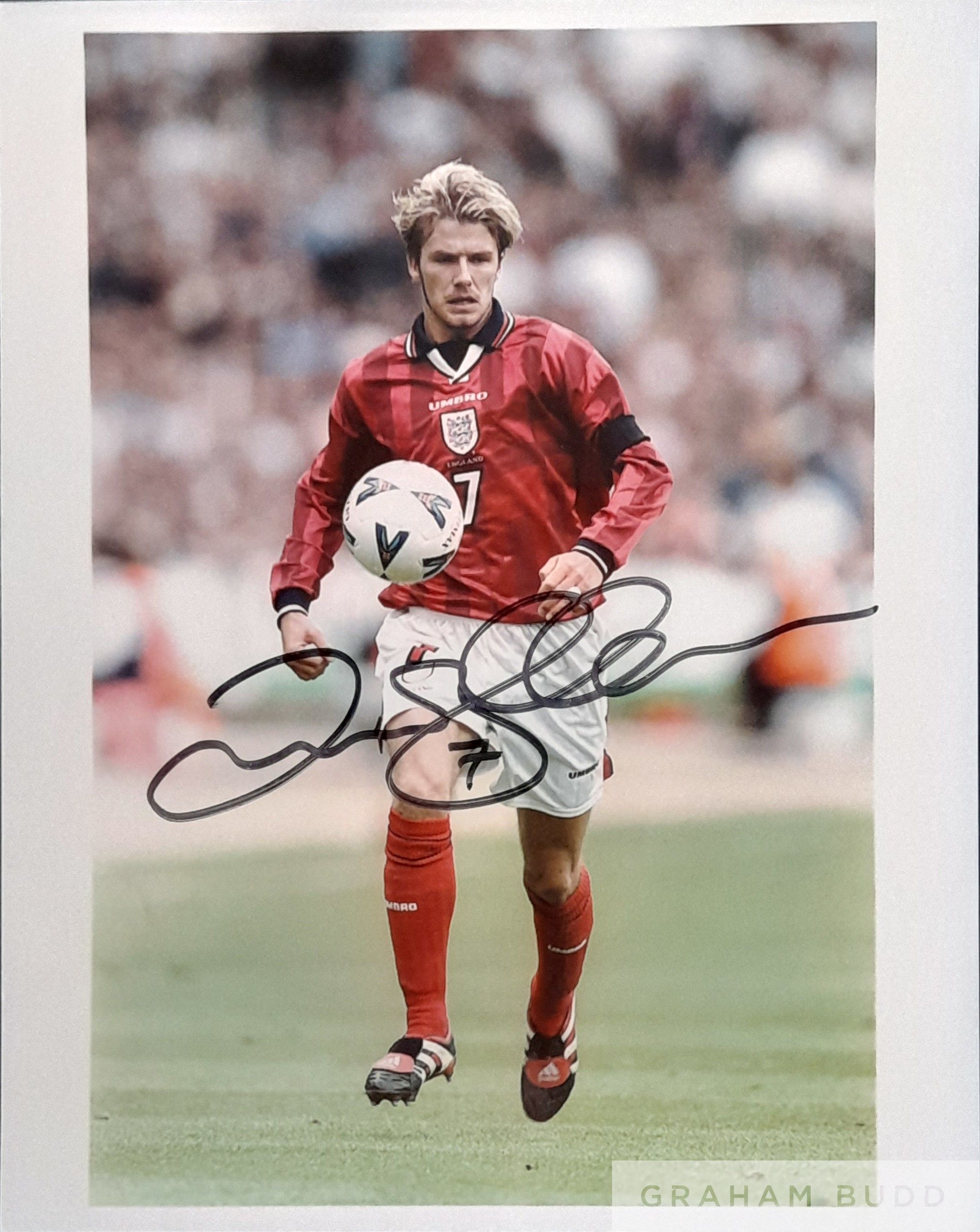 David Beckham official signed England photograph in leather bound slip case, complete with certificate of authenticity certified by Westminster Coll