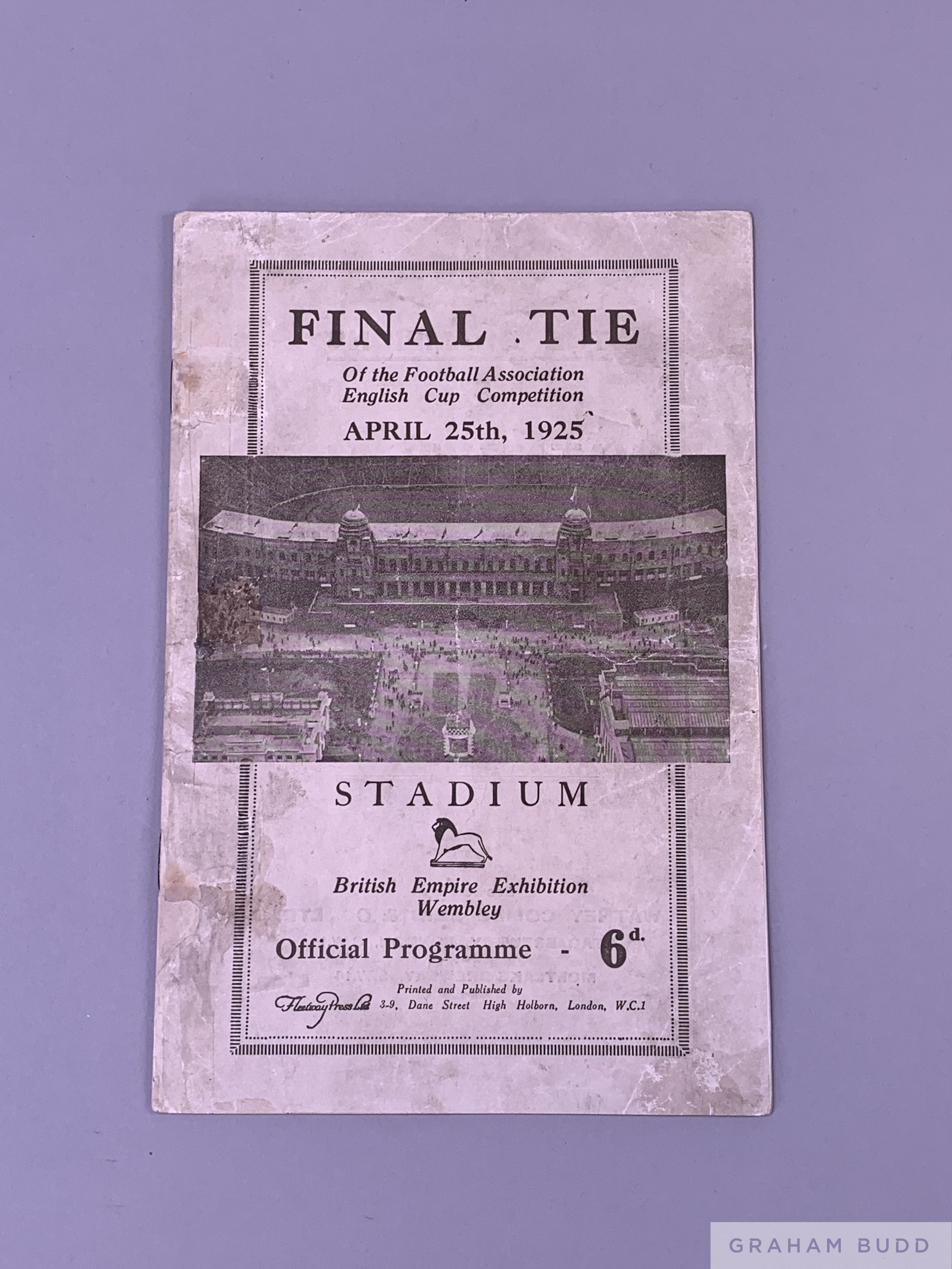 F.A. Cup Final programme Cardiff City v Sheffield United, played at Wembley Stadium, 25th April 1925 16-page, spine restored, rusty staples, some staining