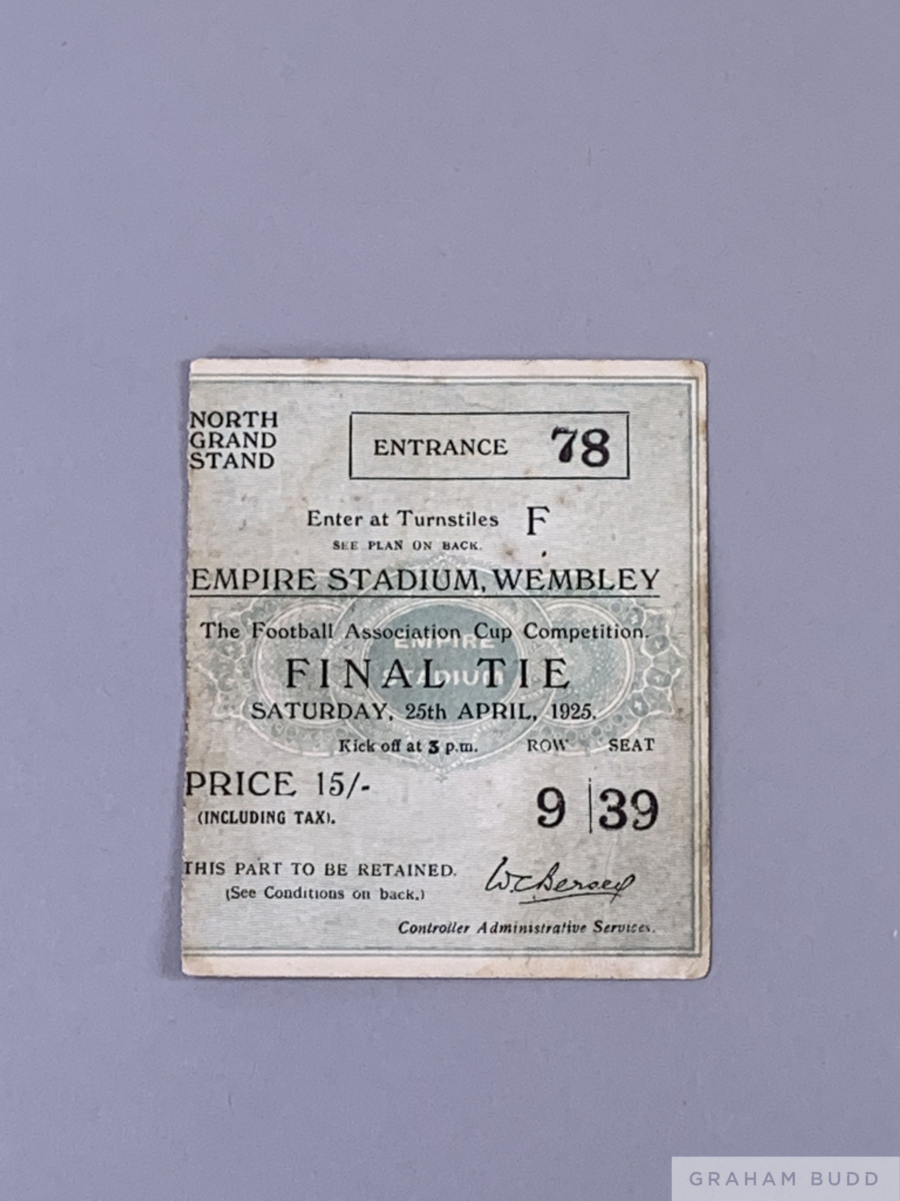 1925 F.A. Cup Final ticket for Cardiff City v Sheffield United, 25th April 1925