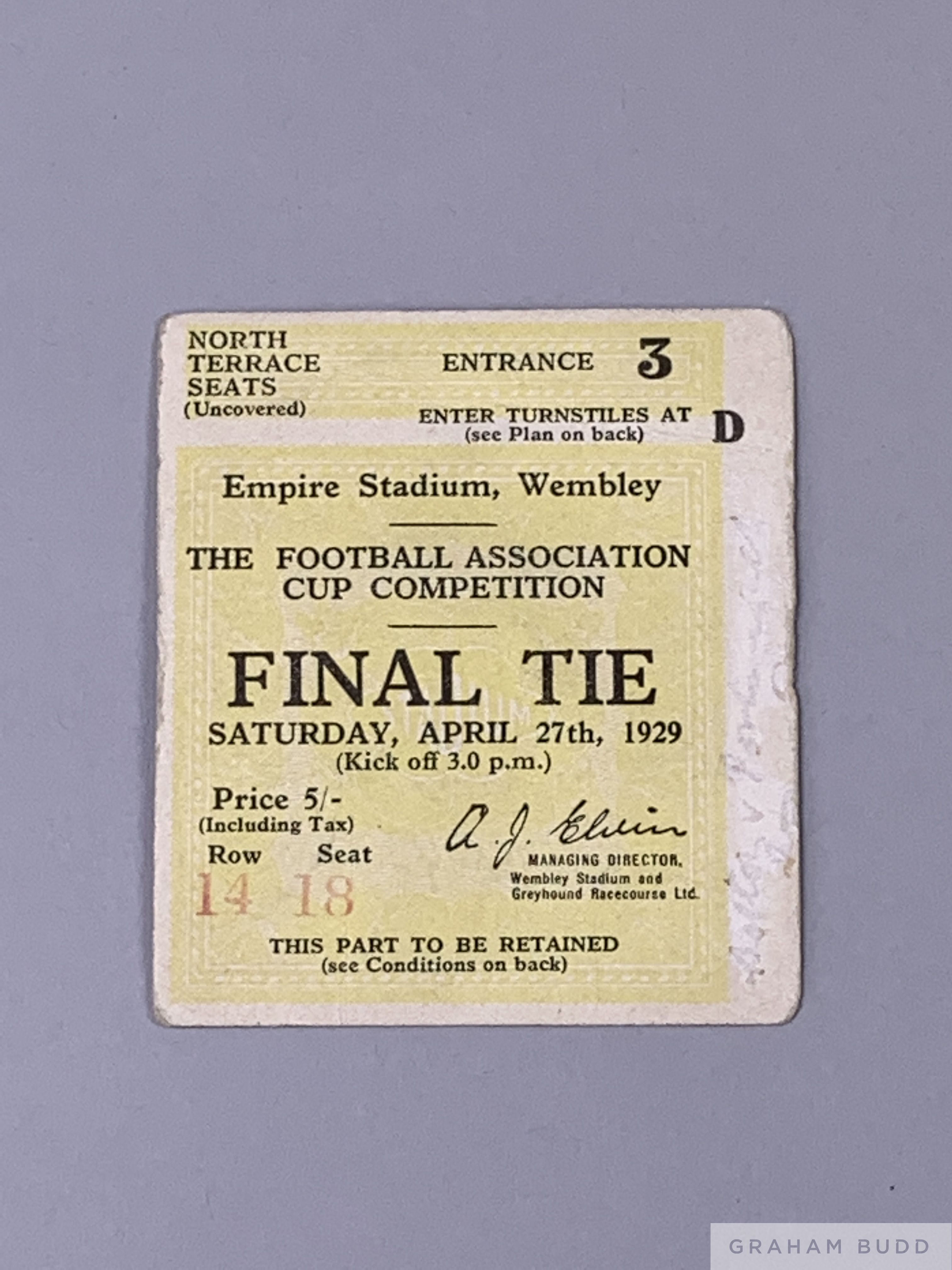 F.A. Cup Final ticket for Bolton Wanderers v. Portsmouth, 27th April 1929 Row 14 Seat 18, text front and back
