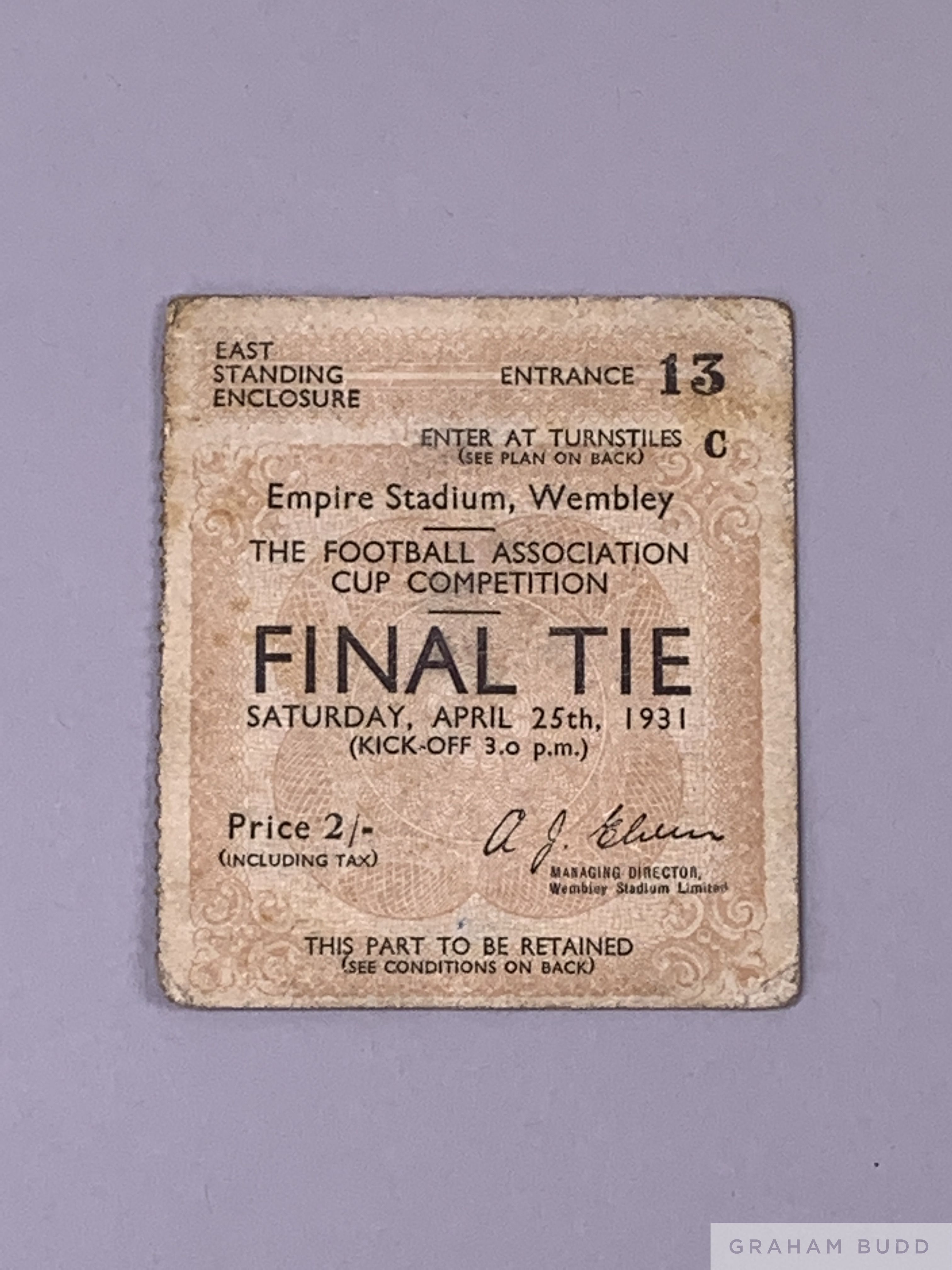 F.A. Cup Final ticket for Birmingham v West Bromwich Albion, 25th April 1931 No.1571