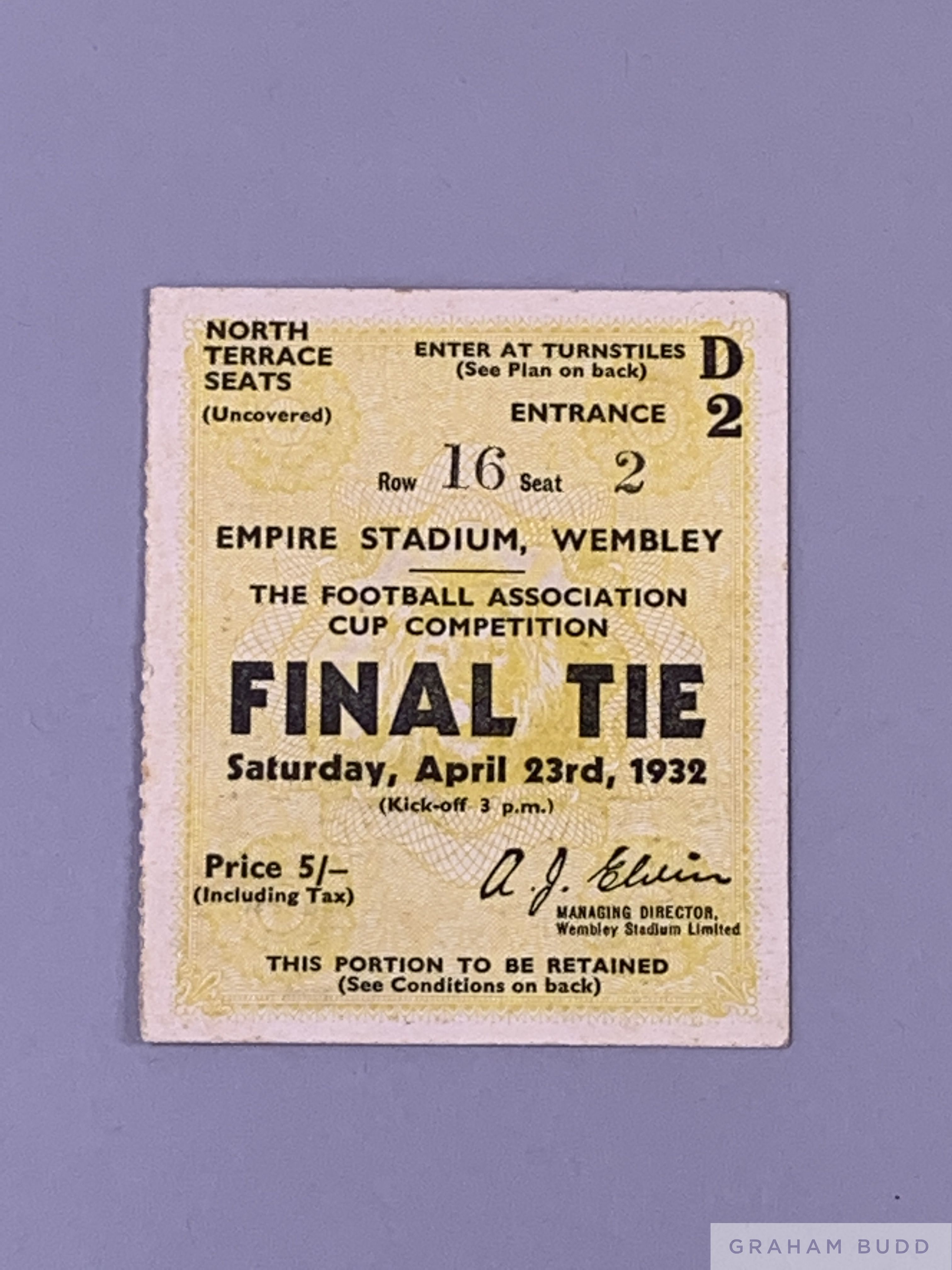 F.A. Cup Final ticket for Arsenal v Newcastle United, 23rd April, 1932 Row 16, Seat 2