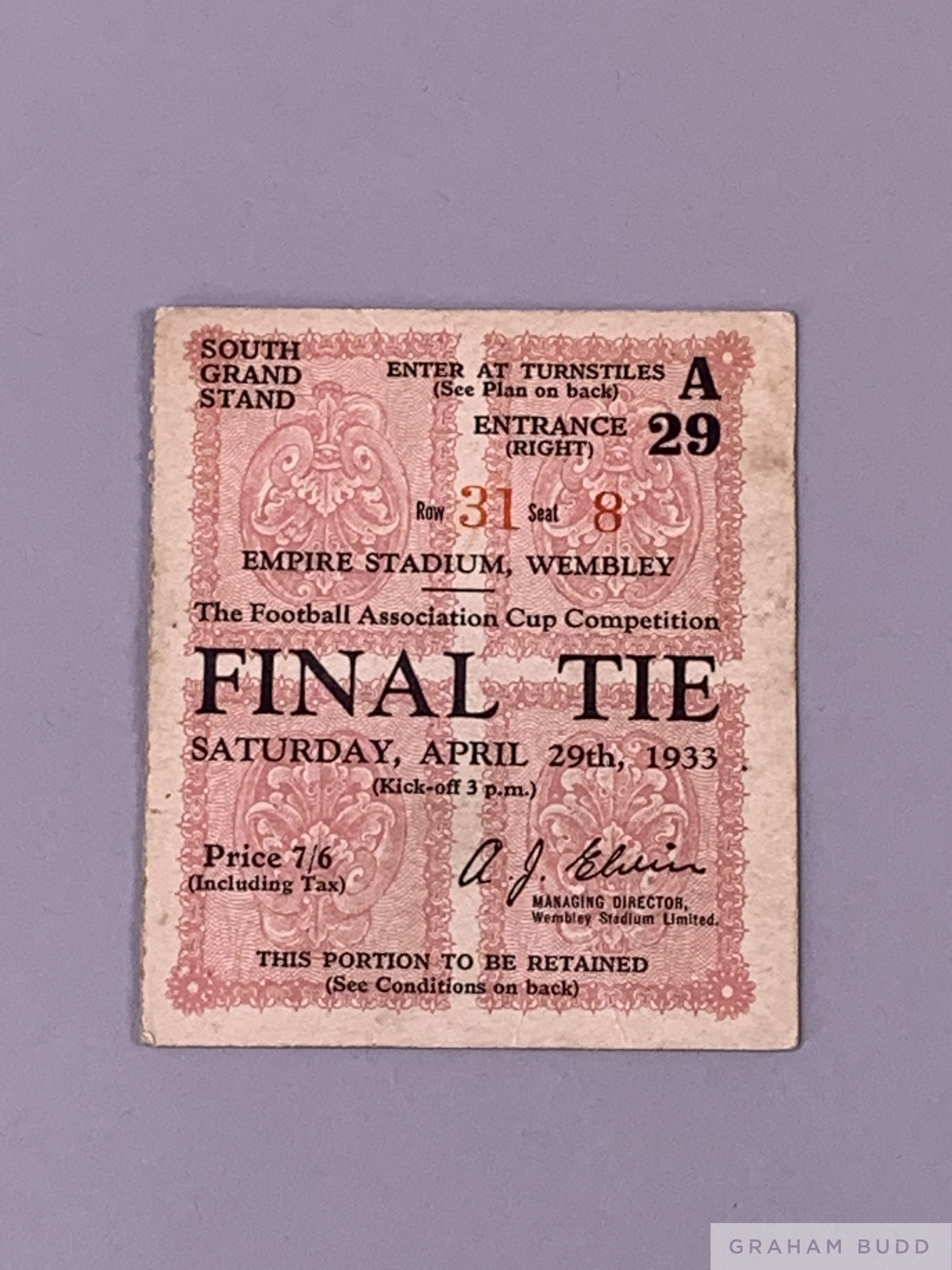 F.A. Cup Final ticket for Everton v. Manchester City, 29th April 1933 Row 31, Seat 8