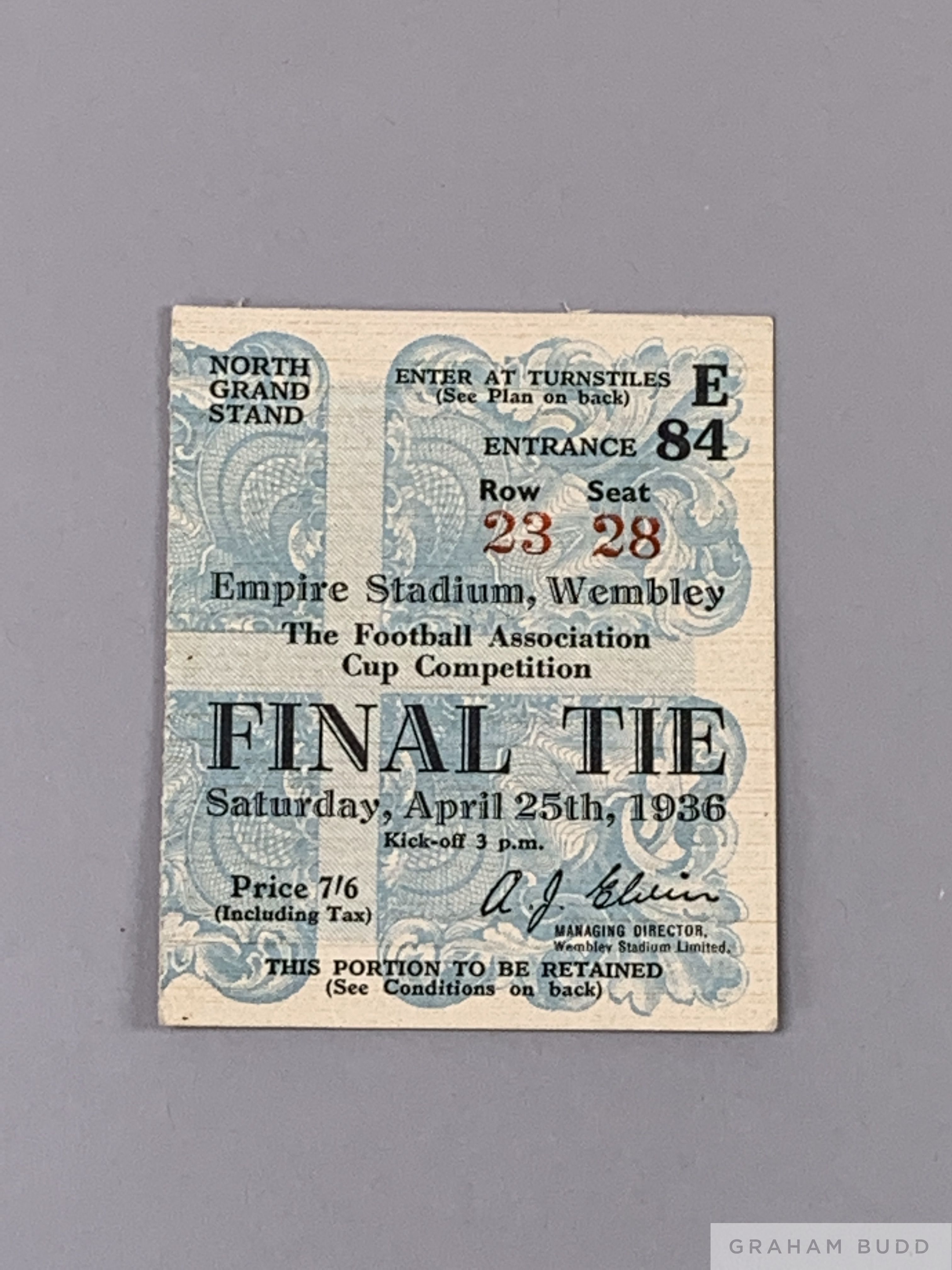 F.A. Cup Final programme Arsenal v Sheffield United, played at Wembley Stadium, 25th April 1936 22-page, rusty staples, overall fair and two tickets stubs (3)