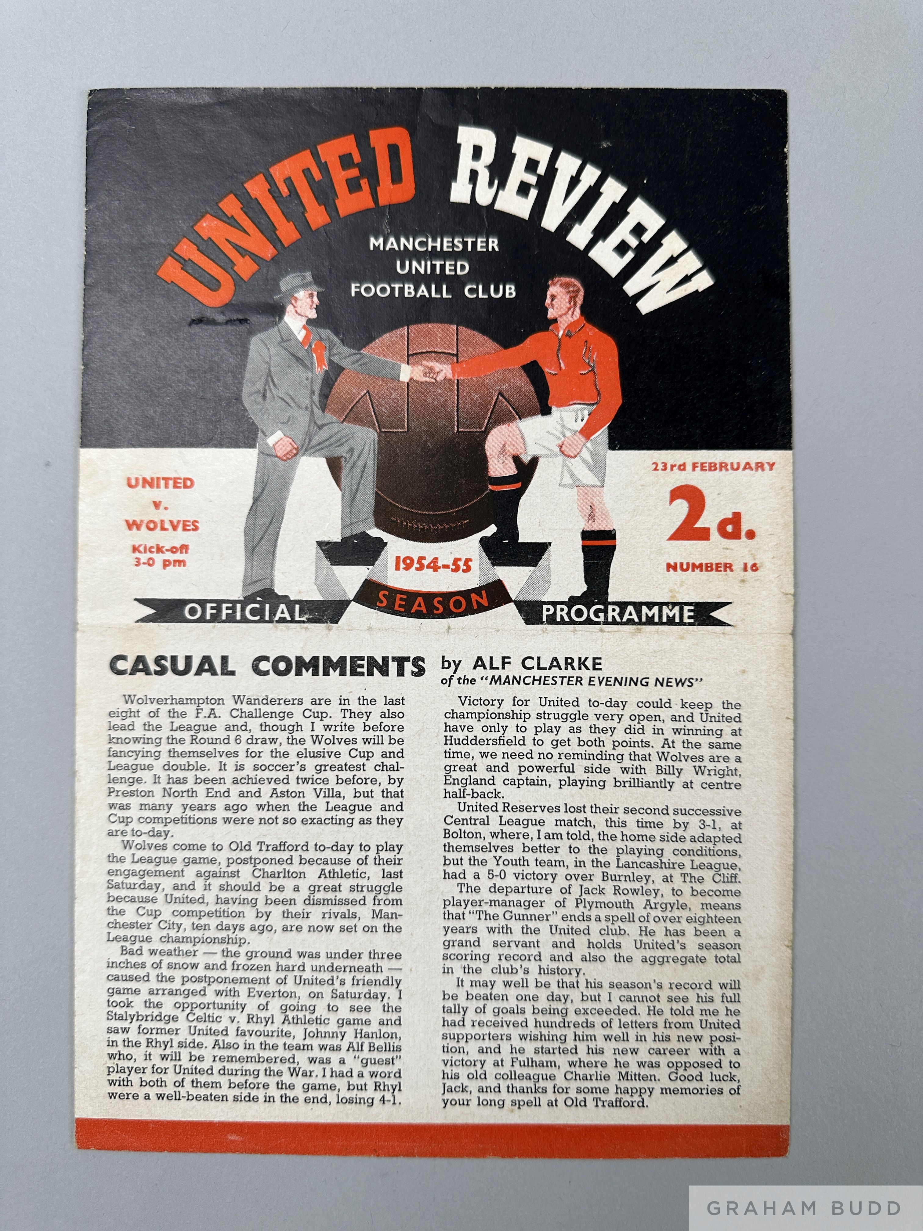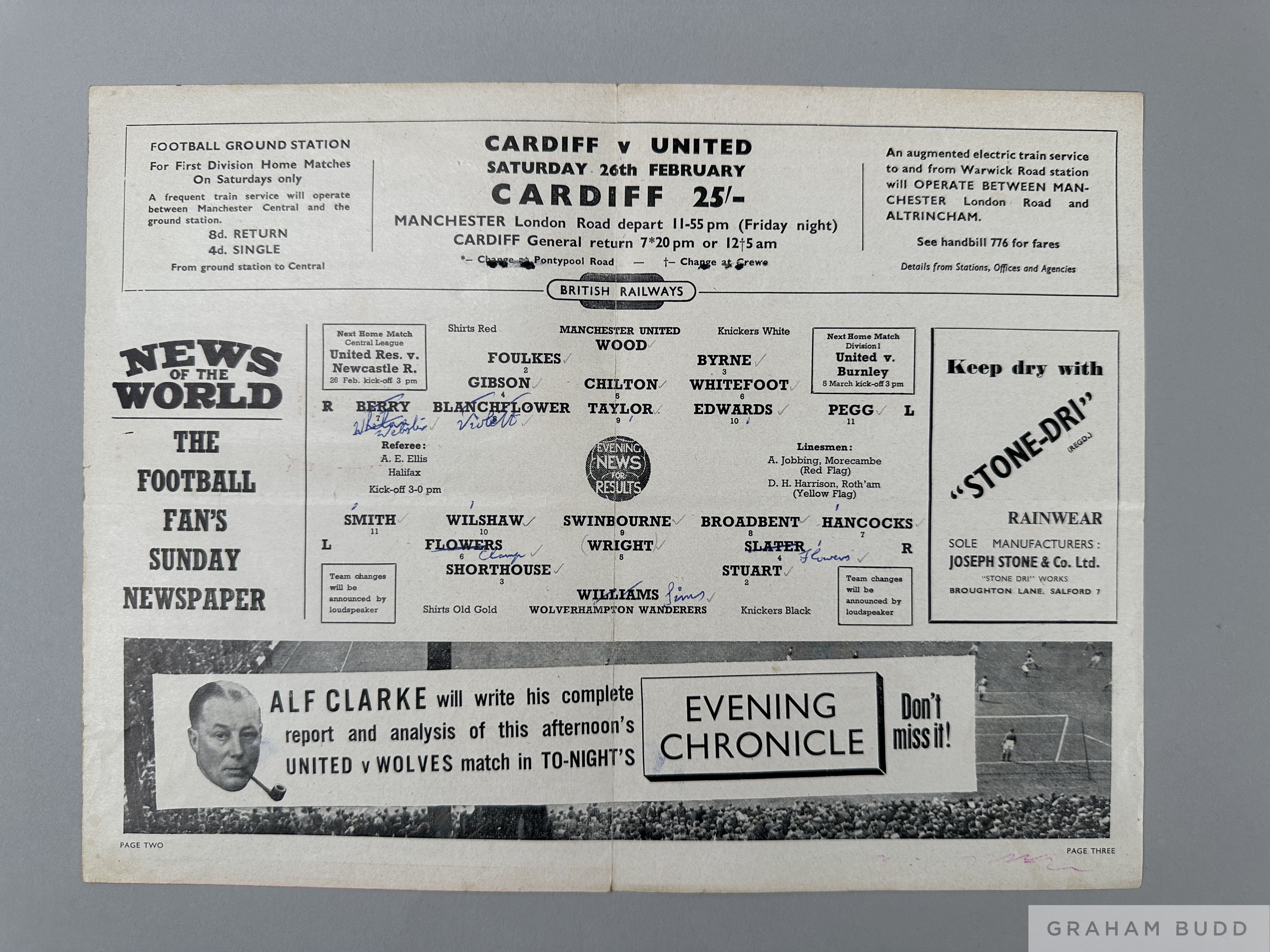 Manchester United v. Wolverhampton Wanderers match programme, 23rd February 1955 four page edition, signs of fold, some ink written team changes