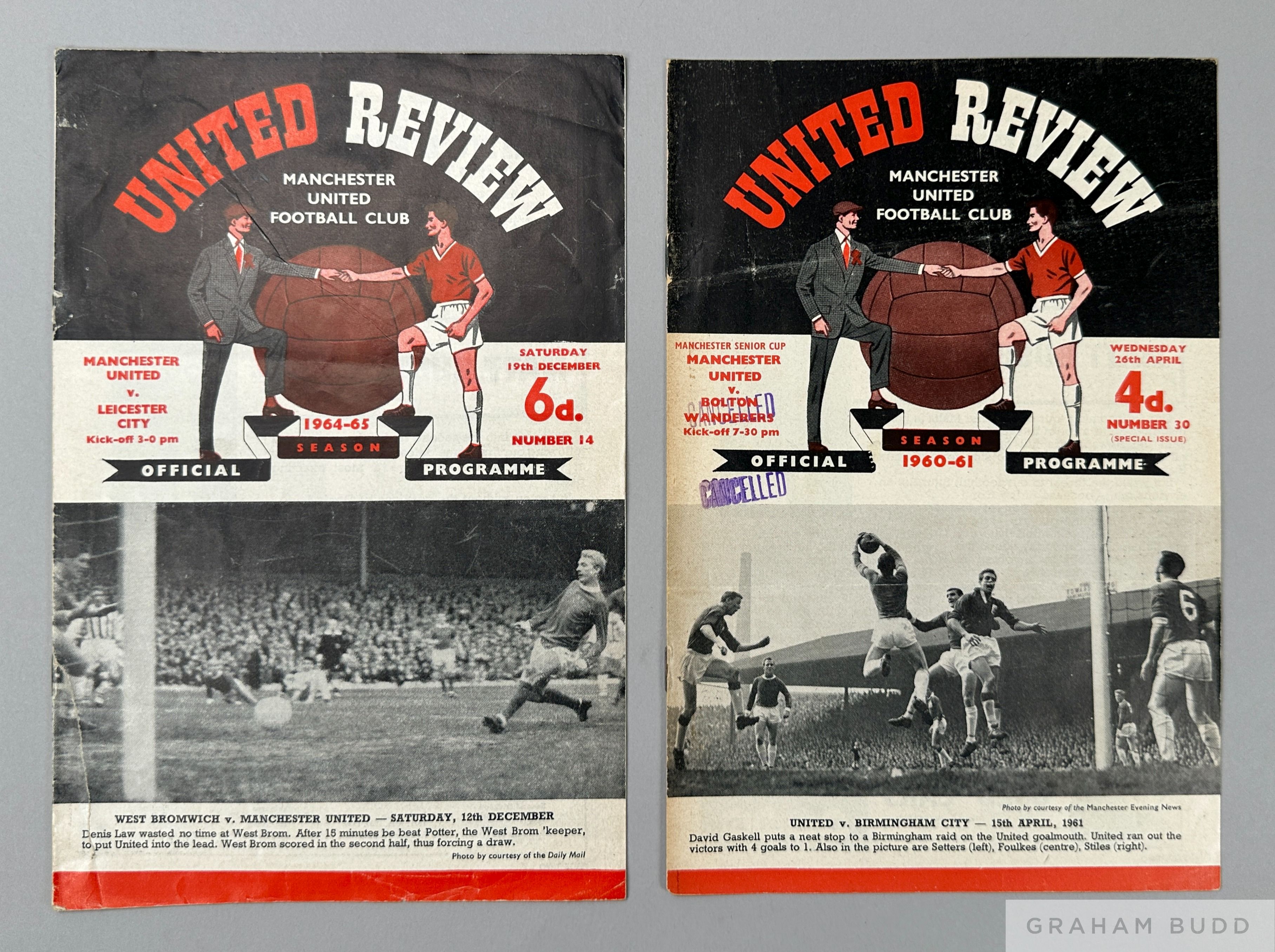 Two Manchester United home match postponed match programmes comprising Leicester City, 19th December 1964 and Bolton Wanderers, Manchester Senior Cup, 26th April 1961 (2)