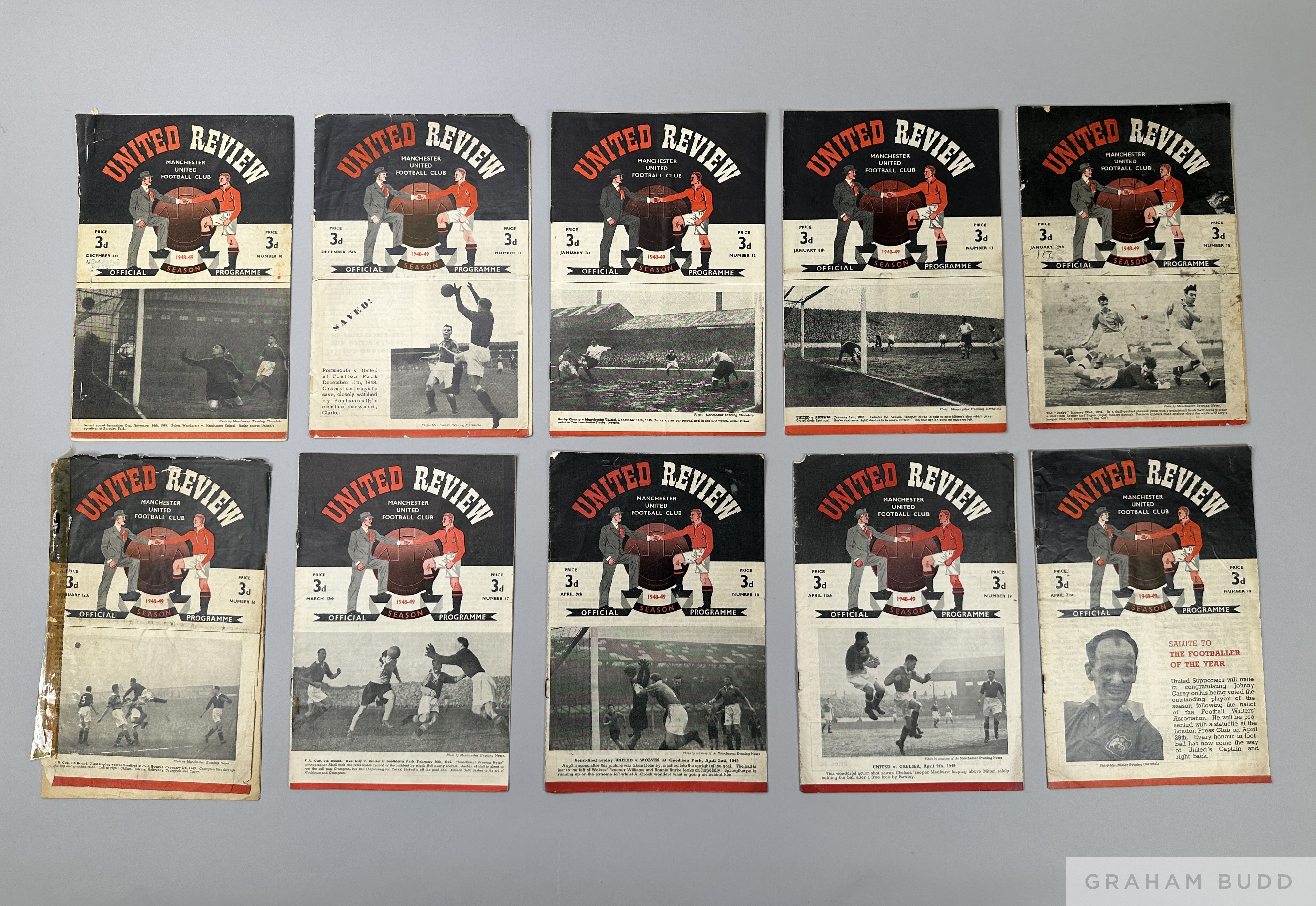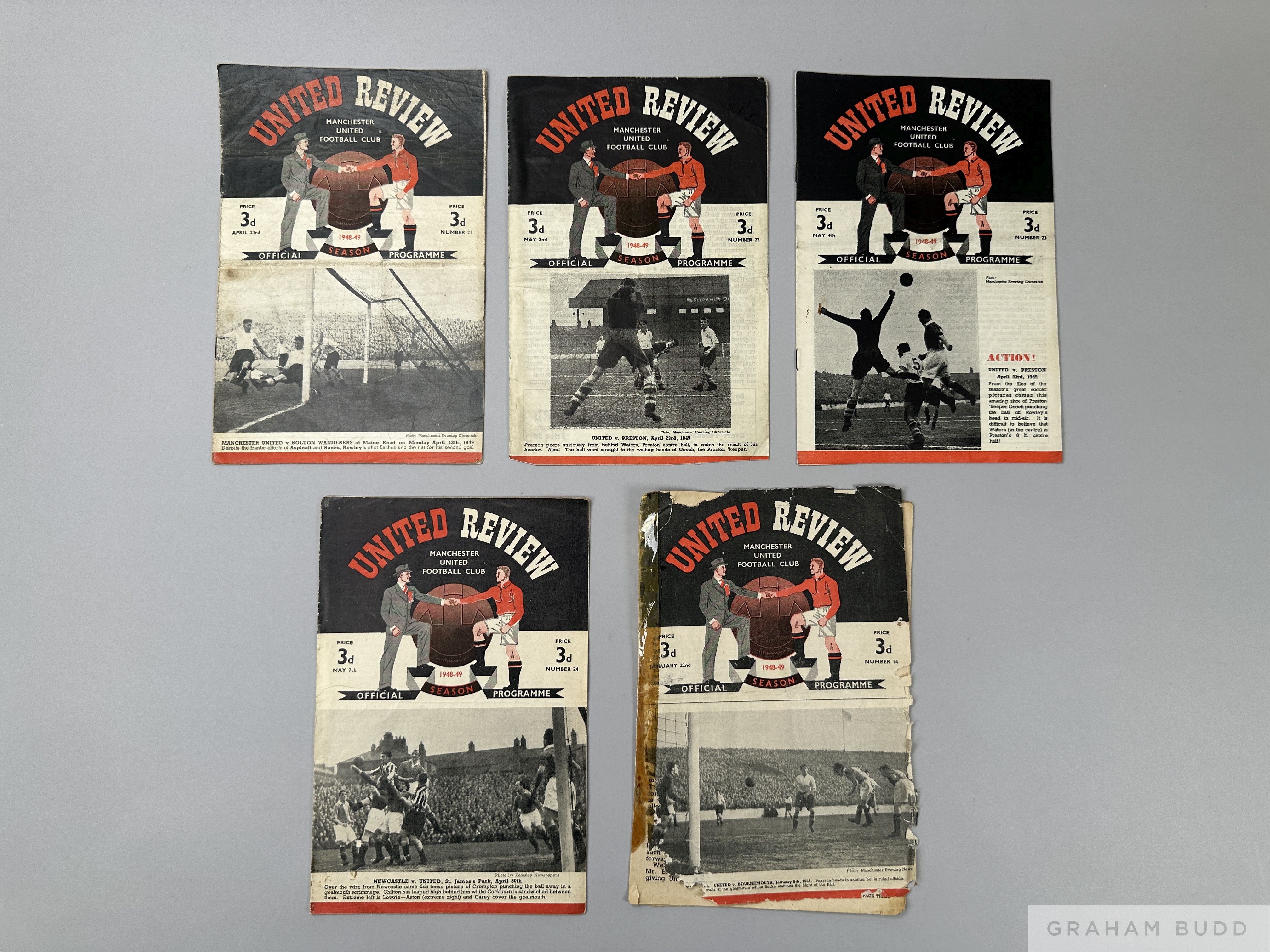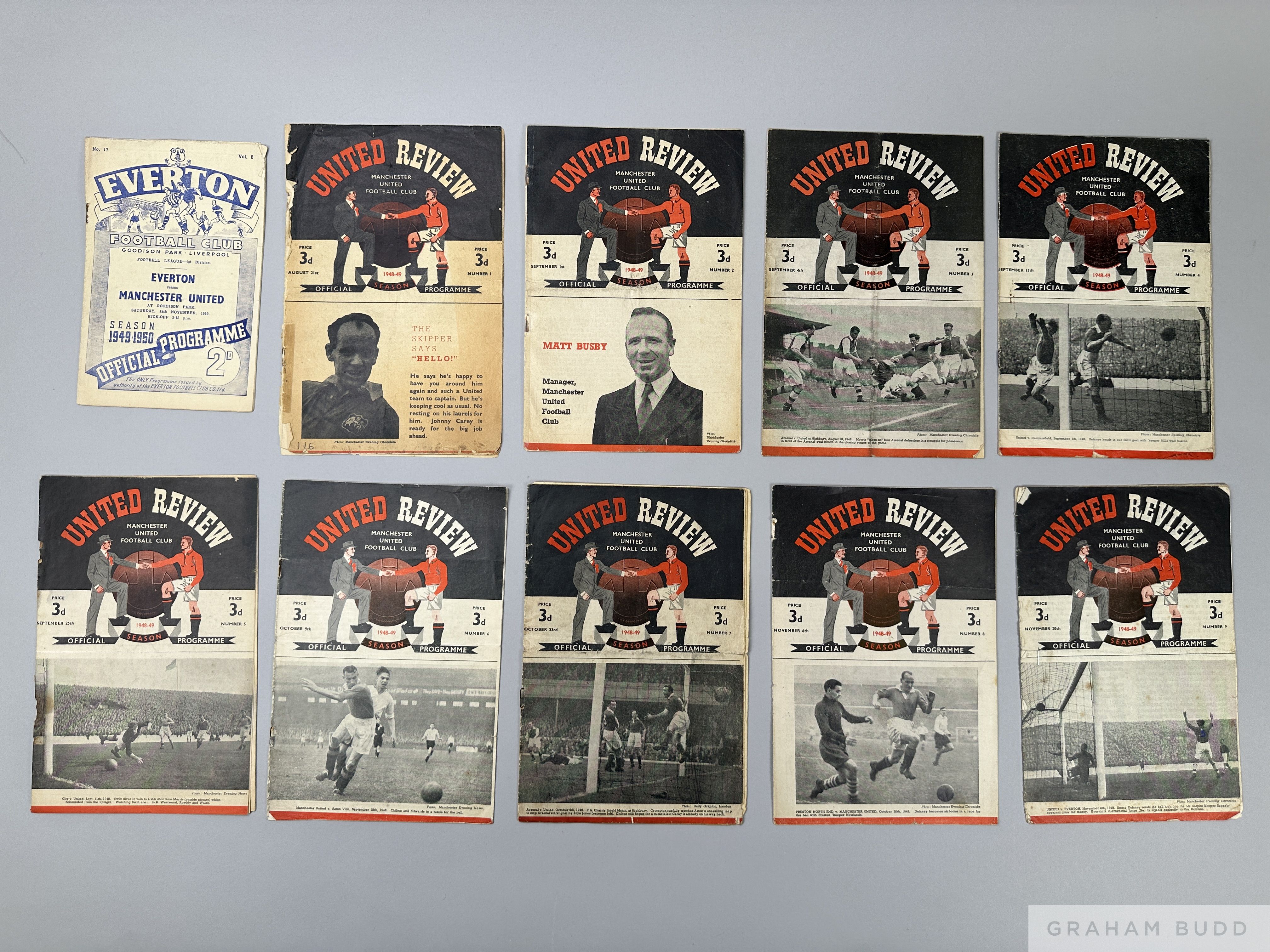 Complete run of Manchester United home league and F.A.Cup match programmes, 1948-49 lacking Bradford 7th February and Everton v. Manchester United, 12th November 1949, programmes in poor/fair condition (24)