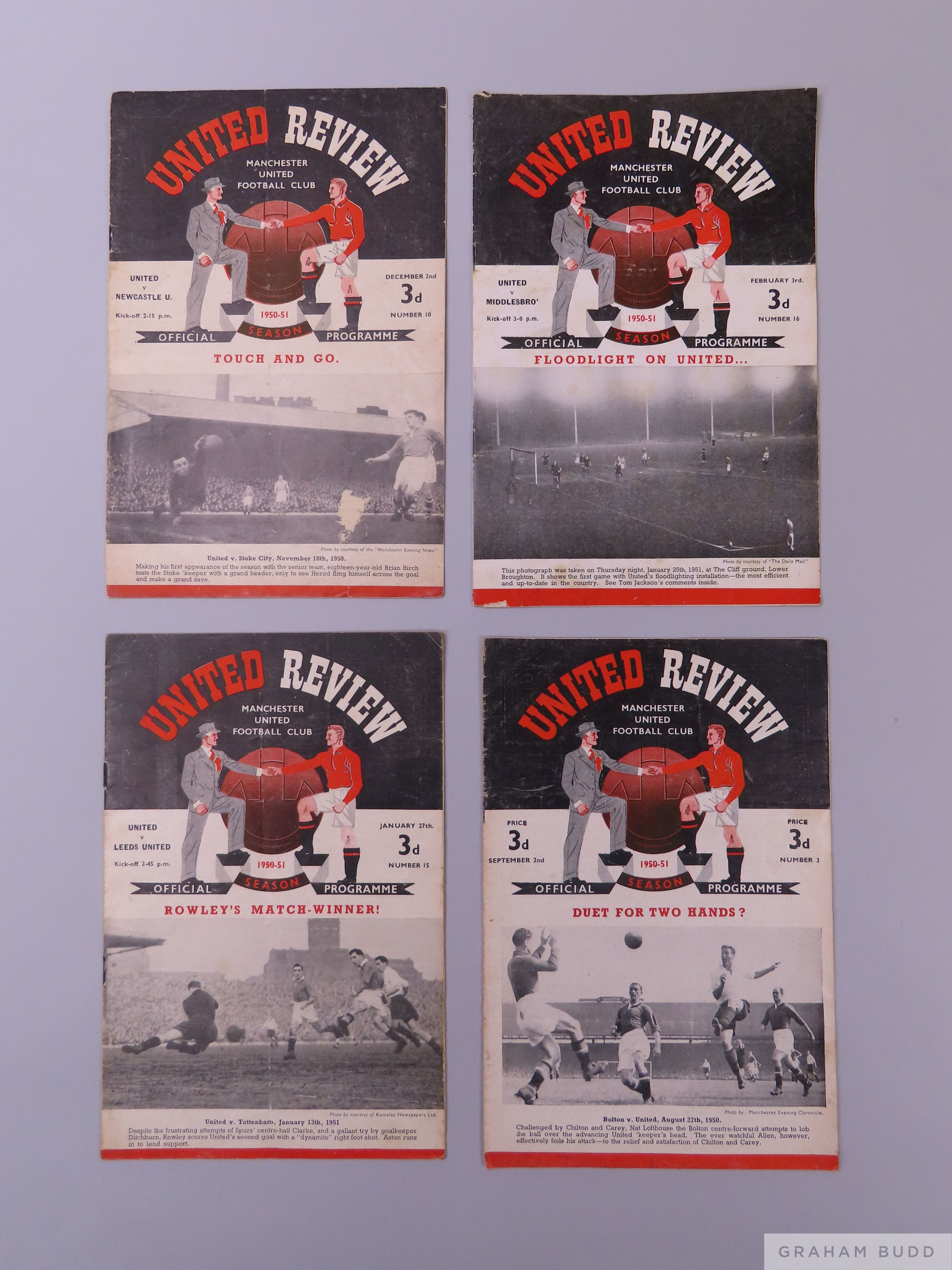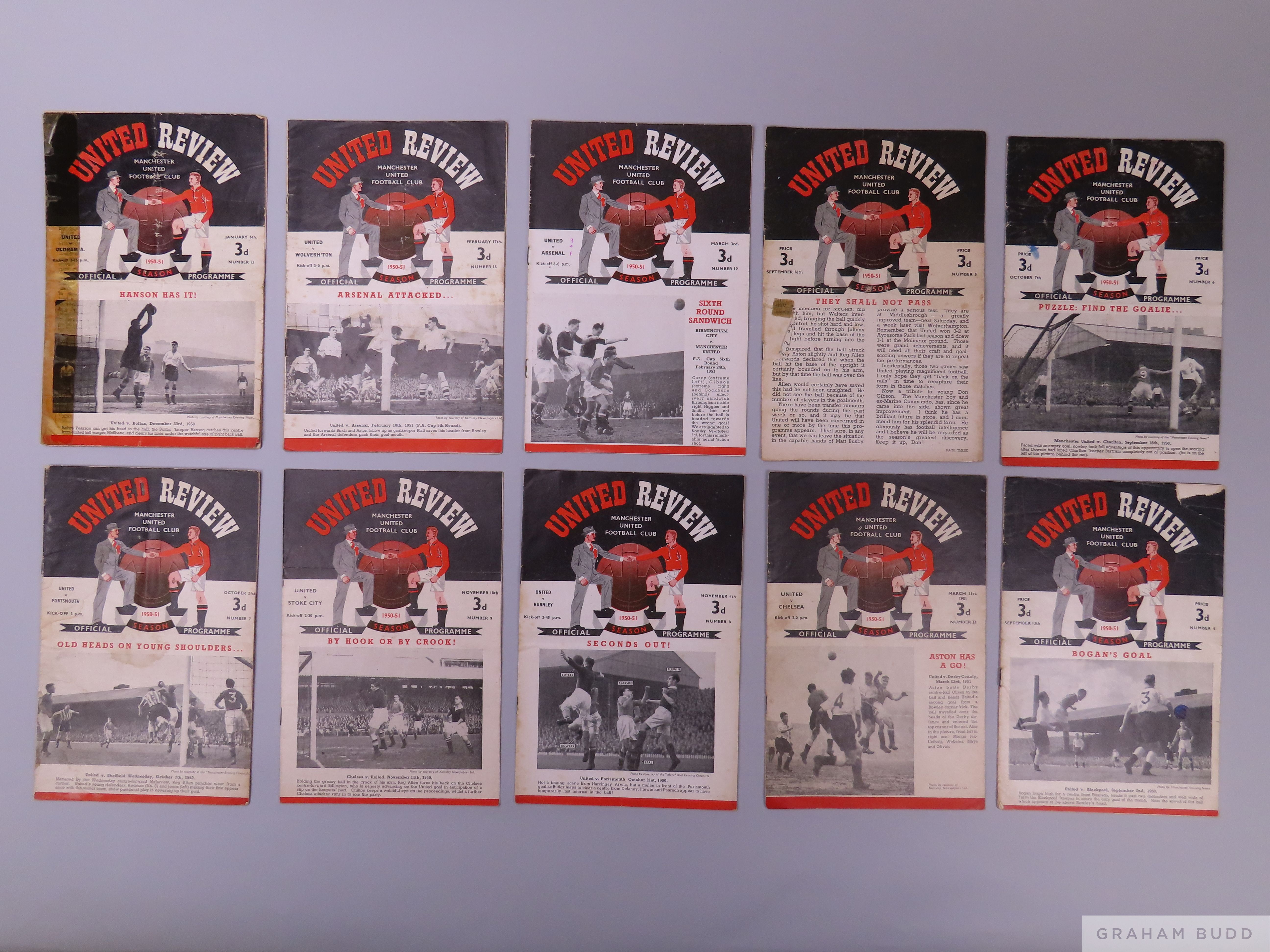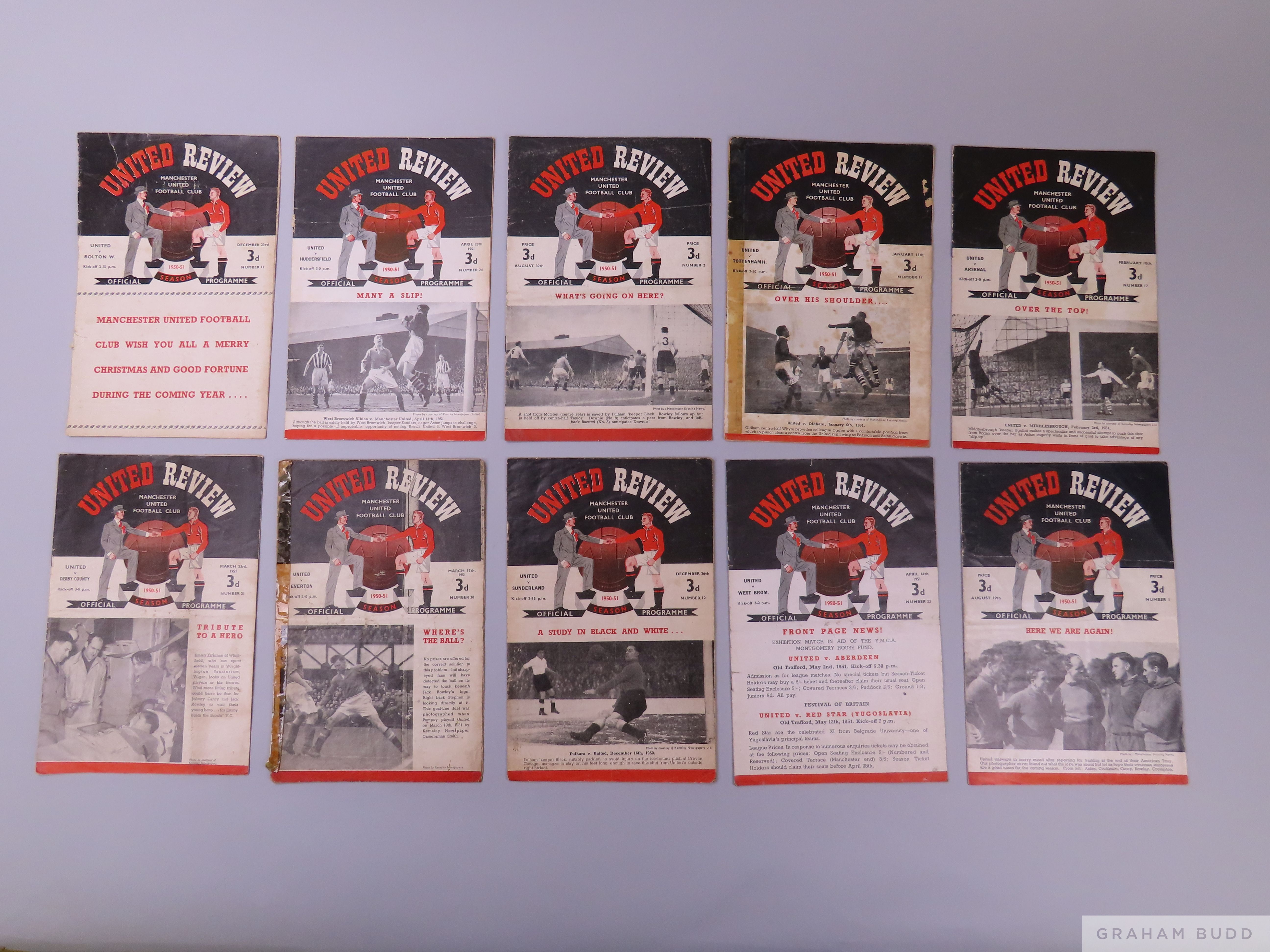Complete run of Manchester United home league and F.A.Cup match programmes, 1950-51 programme in fair/poor condition (24)