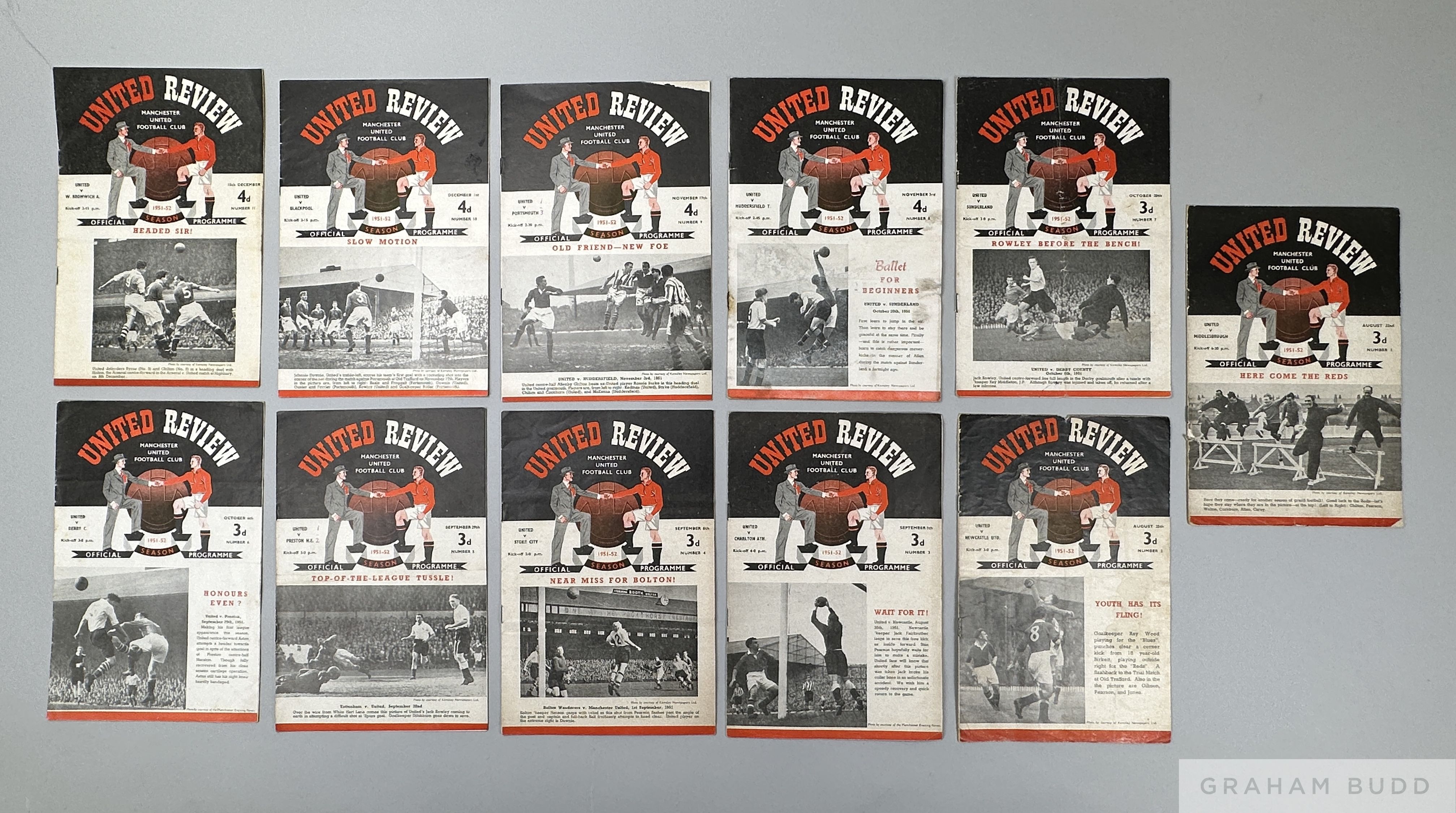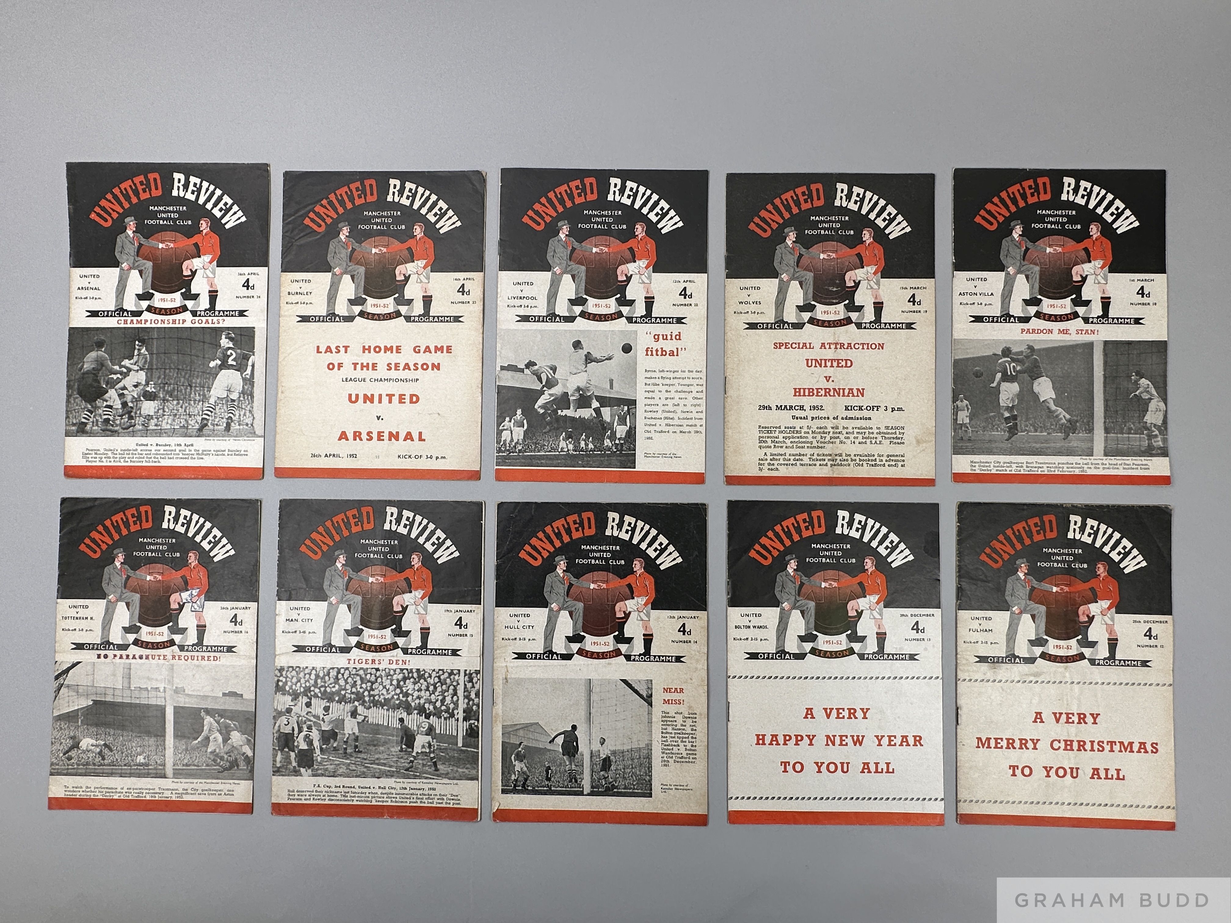 Complete run of Manchester United home league and F.A.Cup match programmes, 1951-52 programmes in fair condition (21)