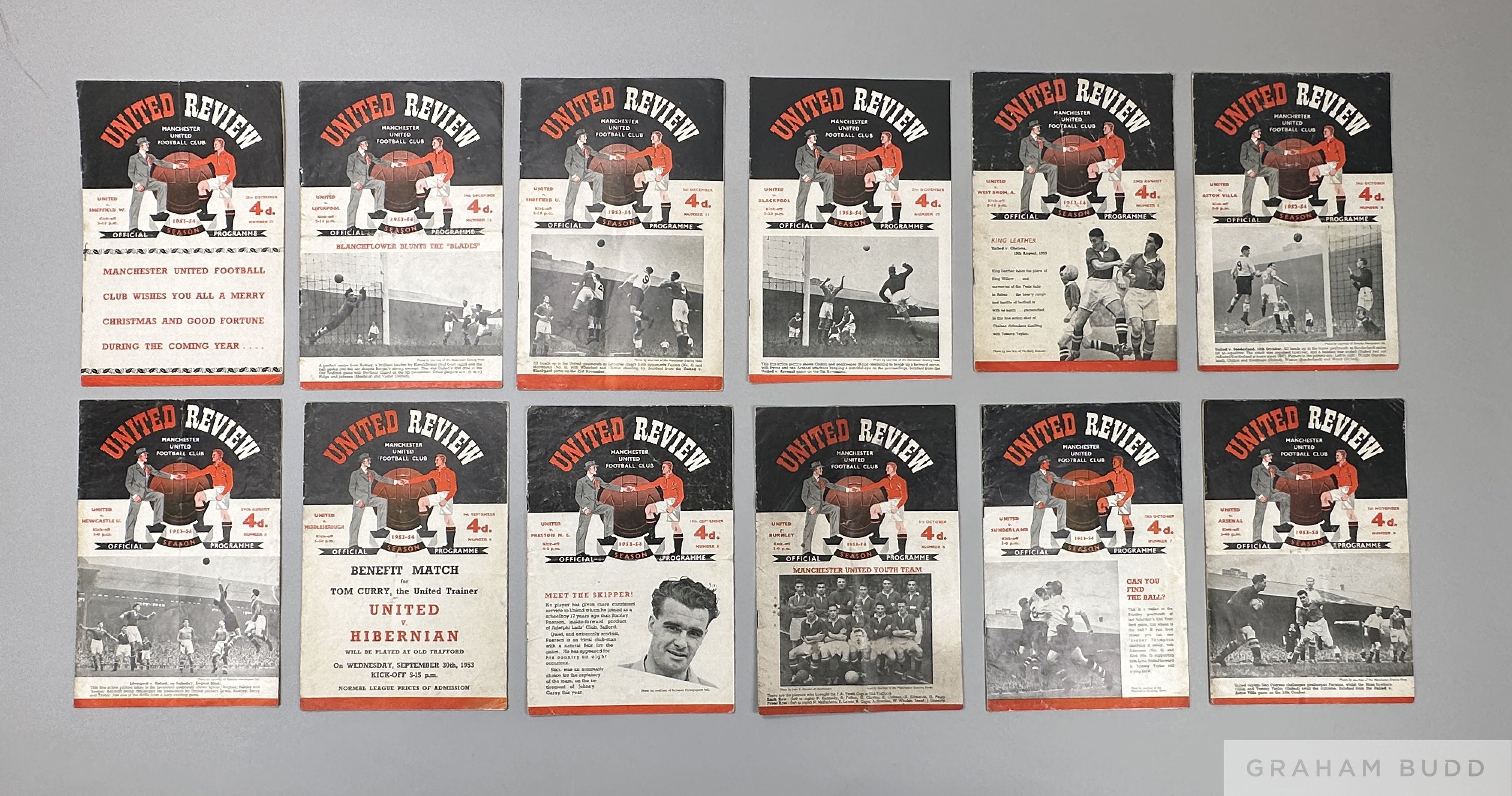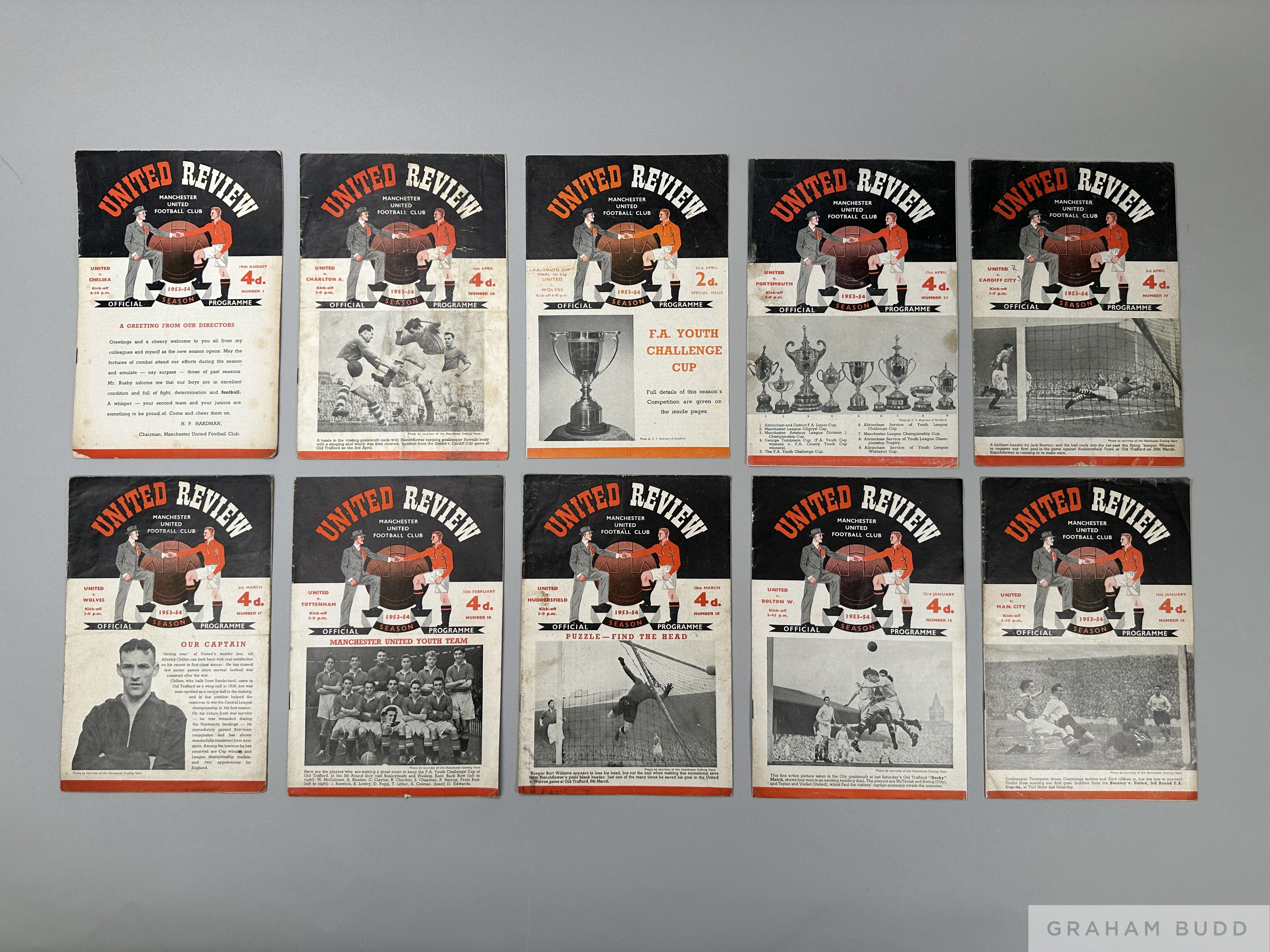 Complete run of Manchester United home league match programmes, 1953-54 including Manchester United v. Wolves, F.A.Youth Cup final, 1st leg 23rd Apri
