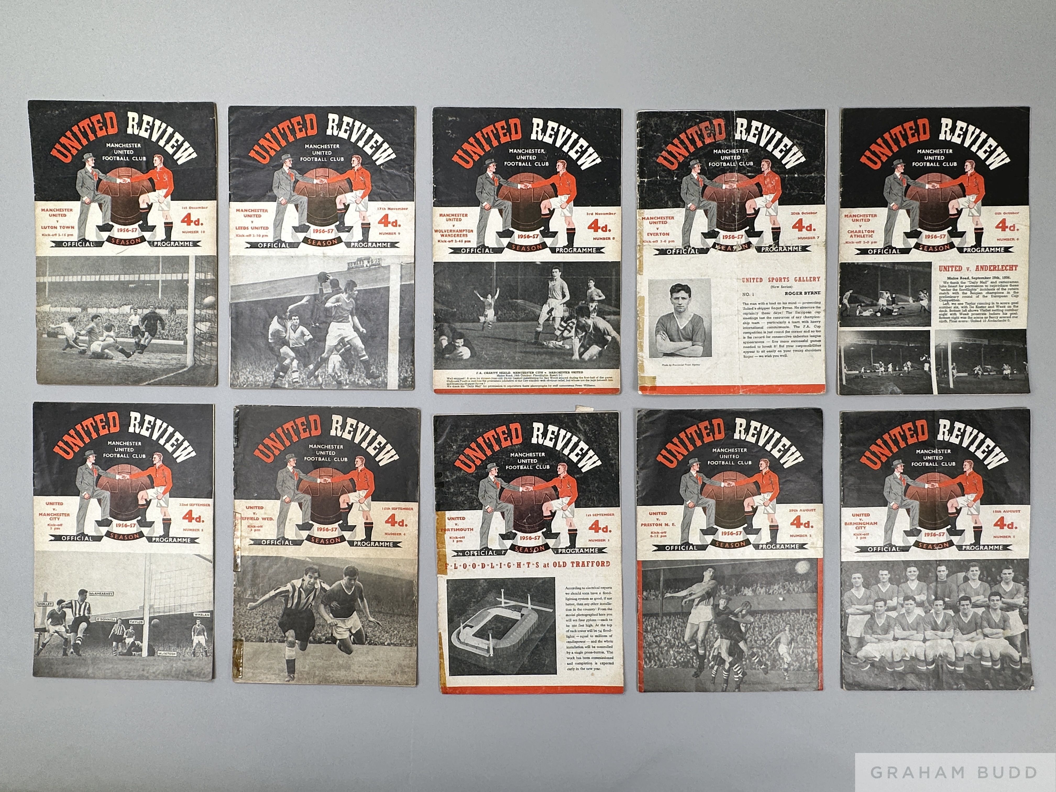 Complete run of Manchester United home league match programmes, 1956-57 including R.S.C. Anderlecht, 26th September, Borussia Dortmund, 17th October,