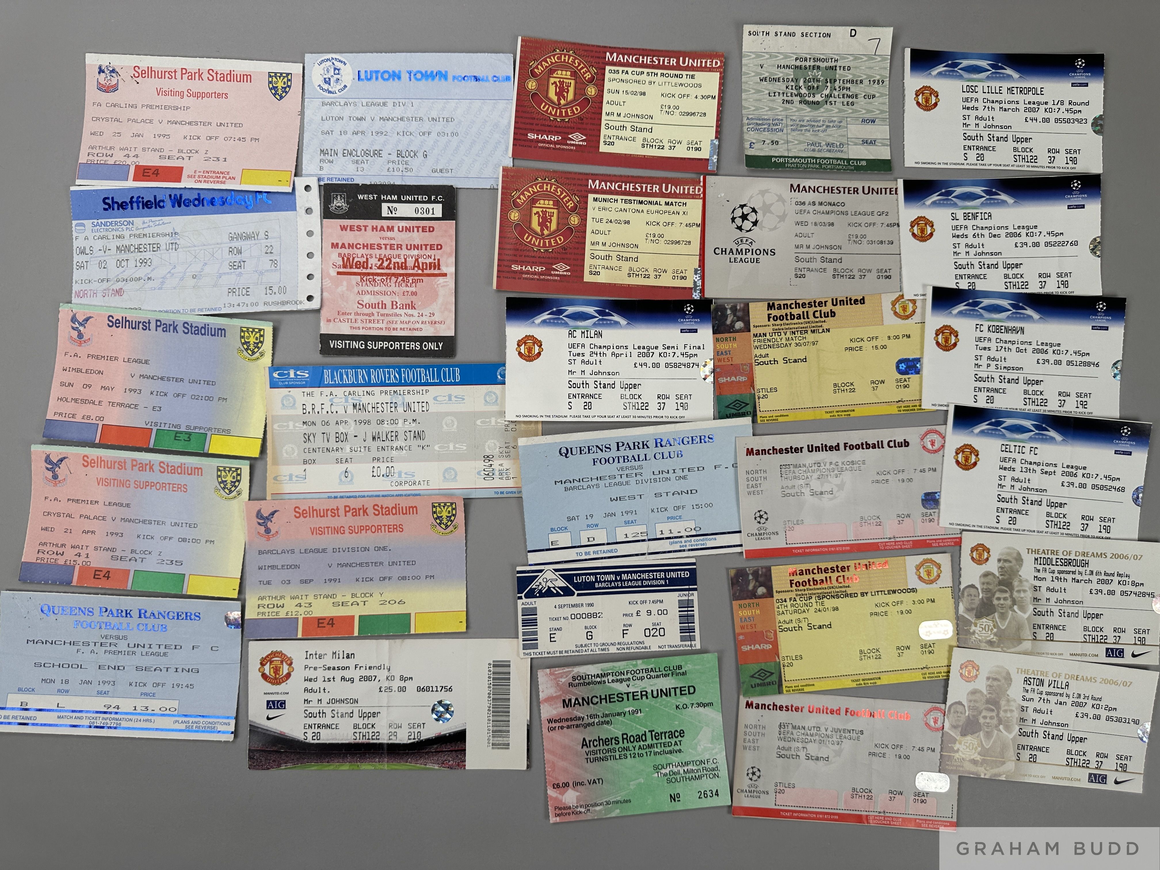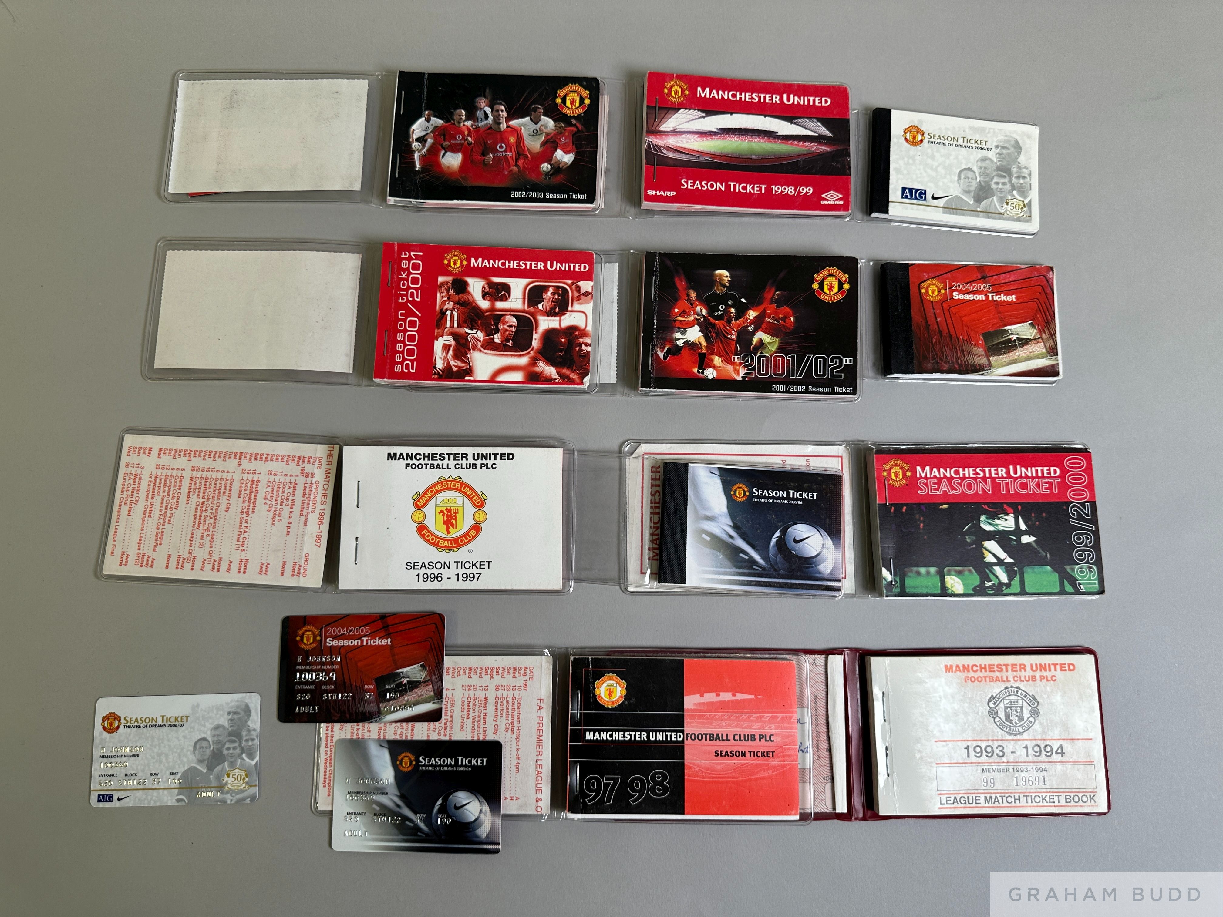 Collection of Manchester United ticket stubs from the 1990s and later including League, Cup, European etc. and a run of later season ticket booklets