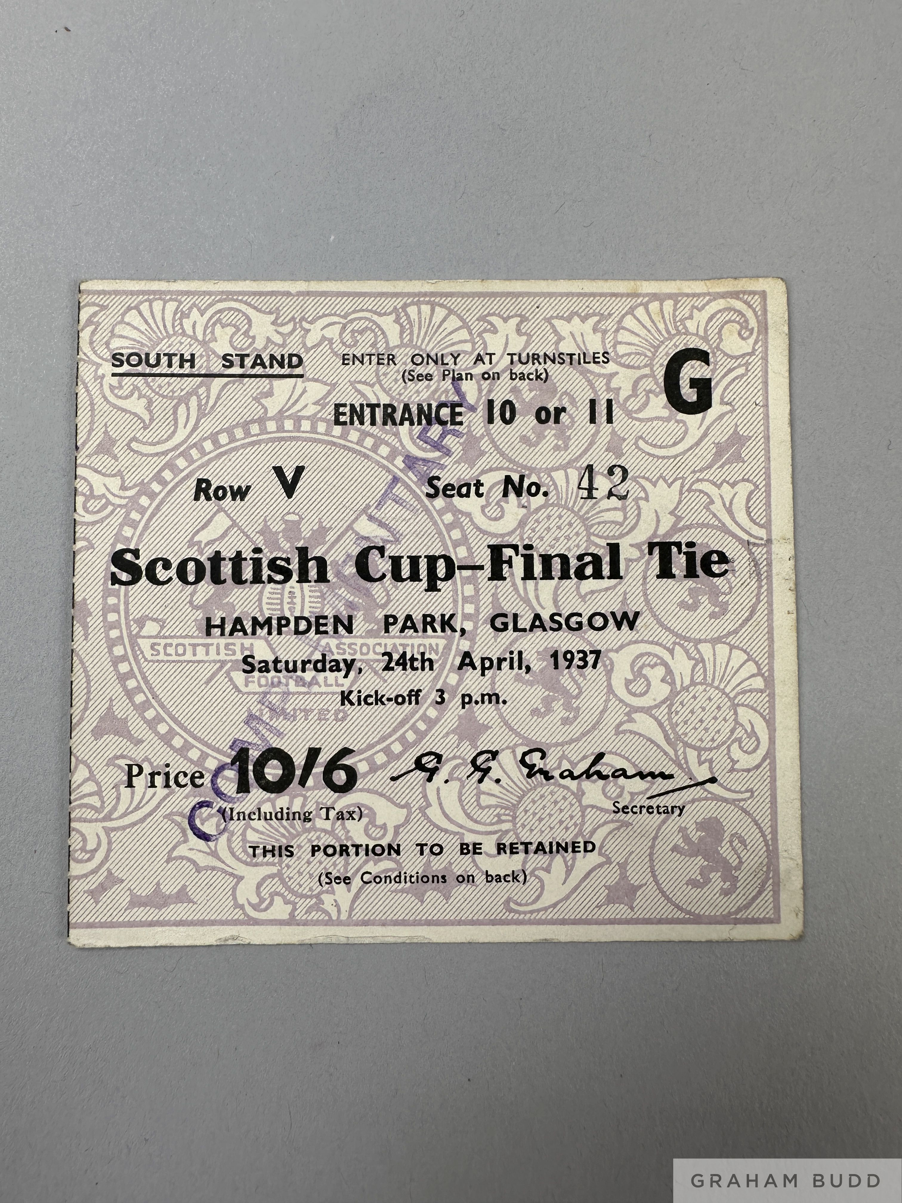 Rare Celtic v. Aberdeen Scottish Cup Final ticket stub, 24th April 1937 previously stuck down within an album, some wear to back, good overall