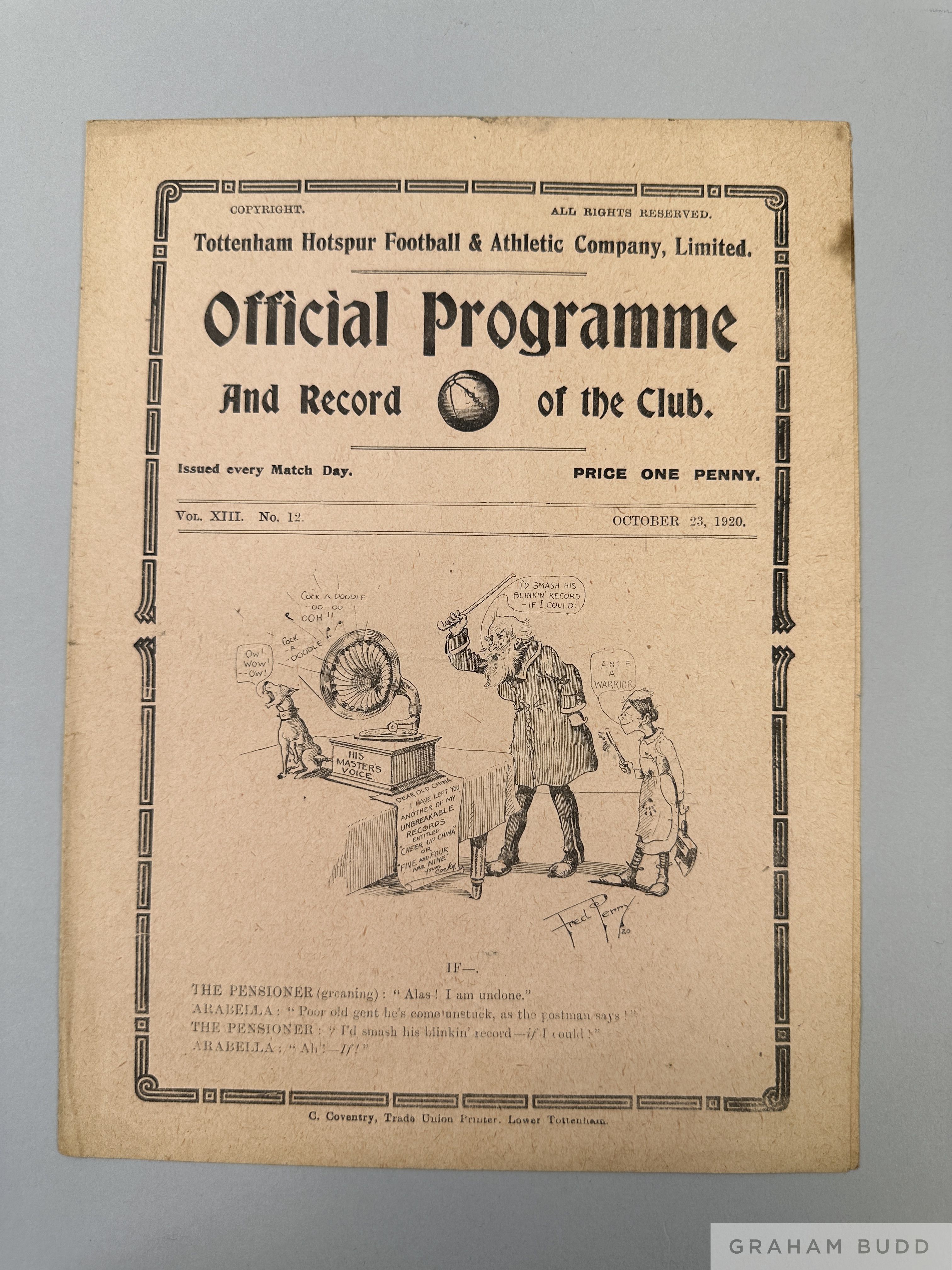 Tottenham Hotspur v. Burnley home match programme, 23rd October 1920 Signs of folds, pencil text on team page