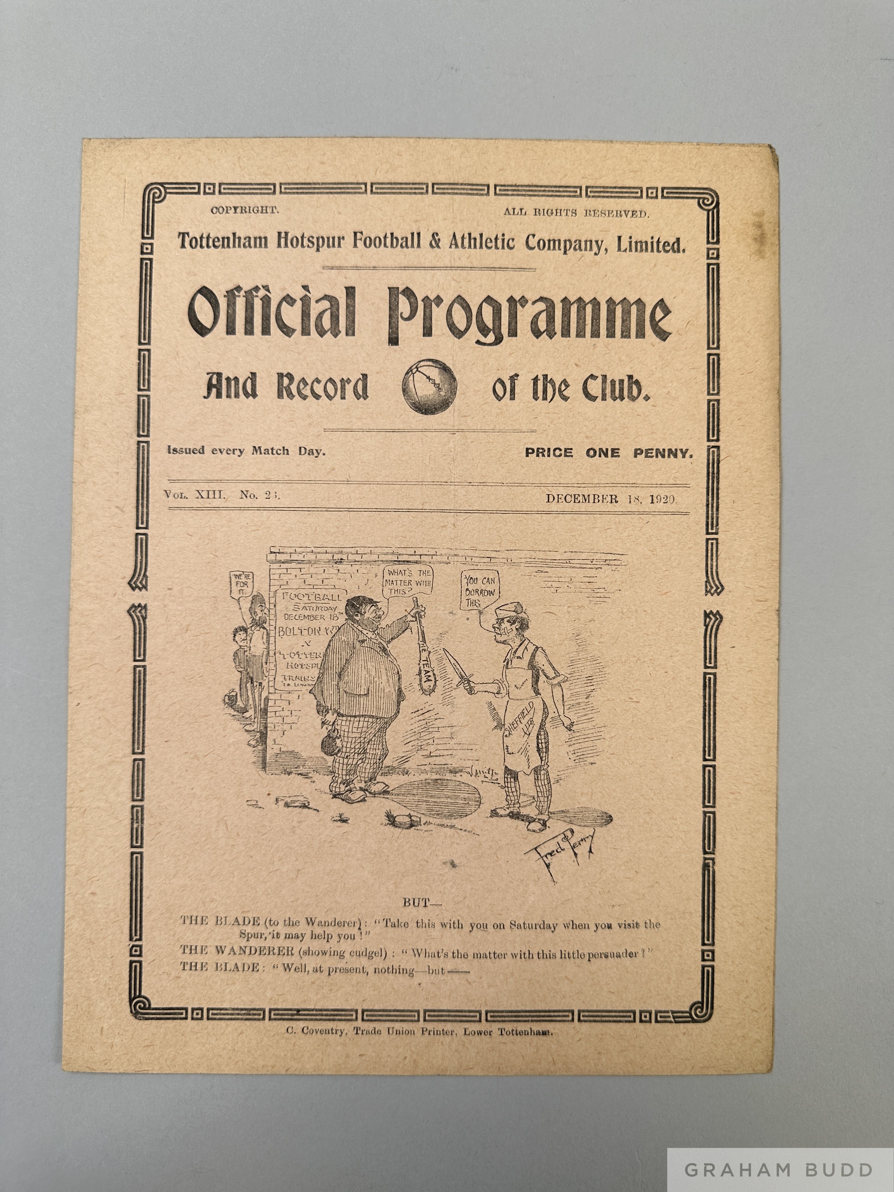 Tottenham Hotspur v. Bolton Wanderers home match programme, 18th December 1920 Signs of folds, pencil text on team page