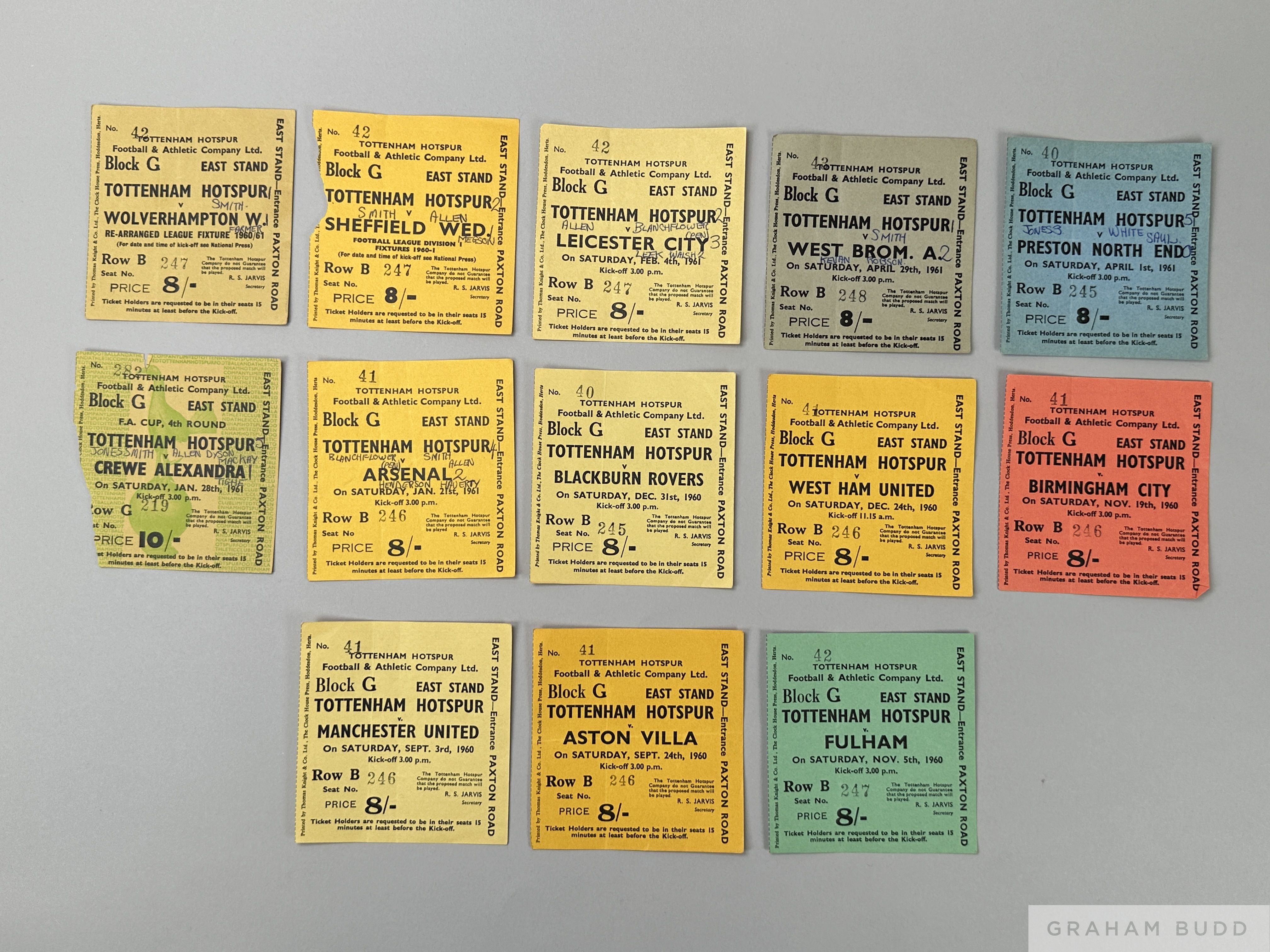 Thirteen 1960-61 "Double" season Tottenham Hotspur ticket stubs comprising Manchester United, Aston Villa, Fulham, Birmingham City, West Ham United,