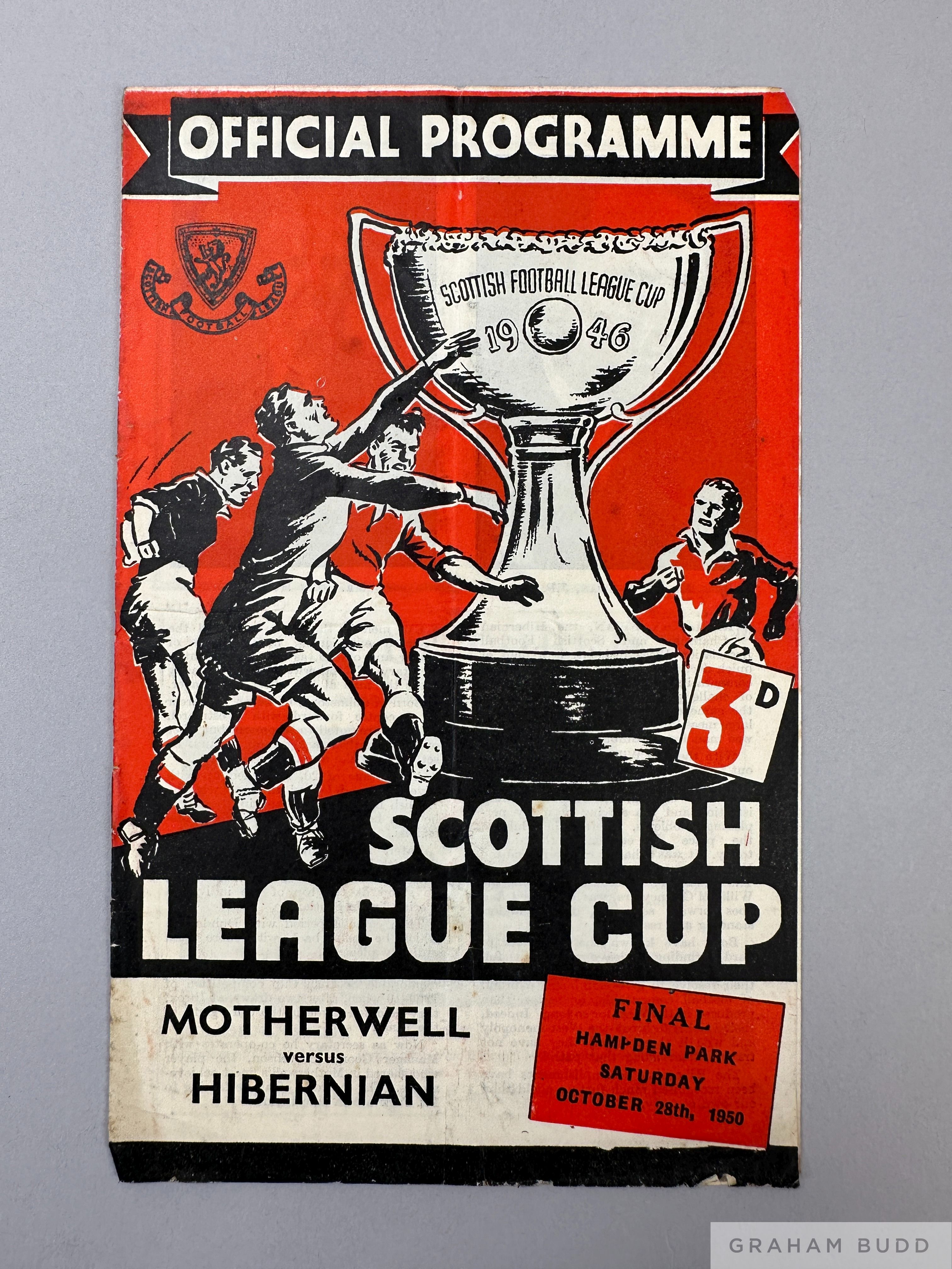 Motherwell v. Hibernian Scottish League Cup Final, 28th October 1950 horizontal and vertical folds, tear top of spine