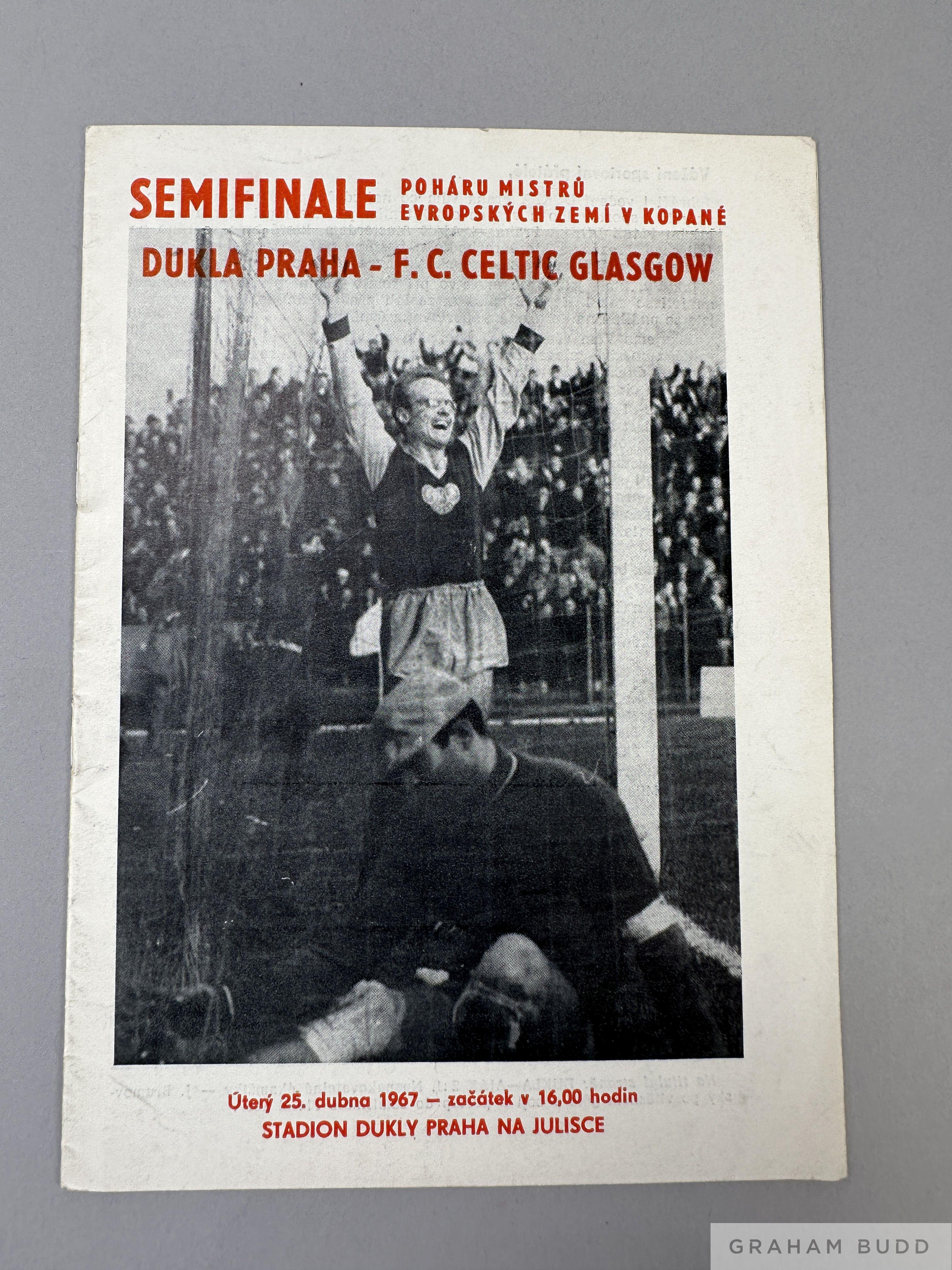 Dukla Prague v. Celtic, European Cup Semi-Final 2nd Leg match programme, 25th April 1967 overall good copy