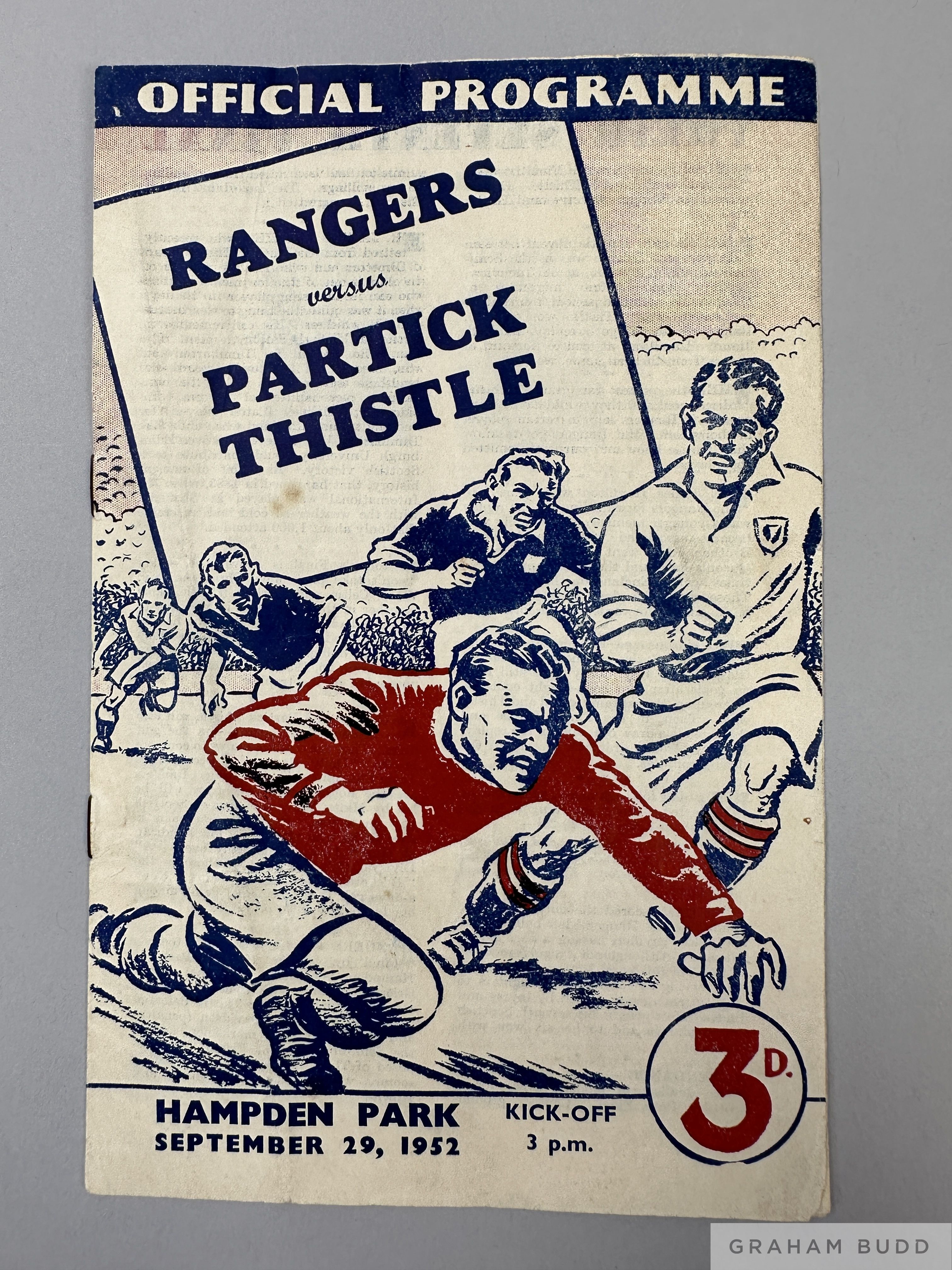 Rangers v. Partick Thistle Glasgow Cup Final match programme, 29th September 1952 signs of folds, some creasing and slight staining