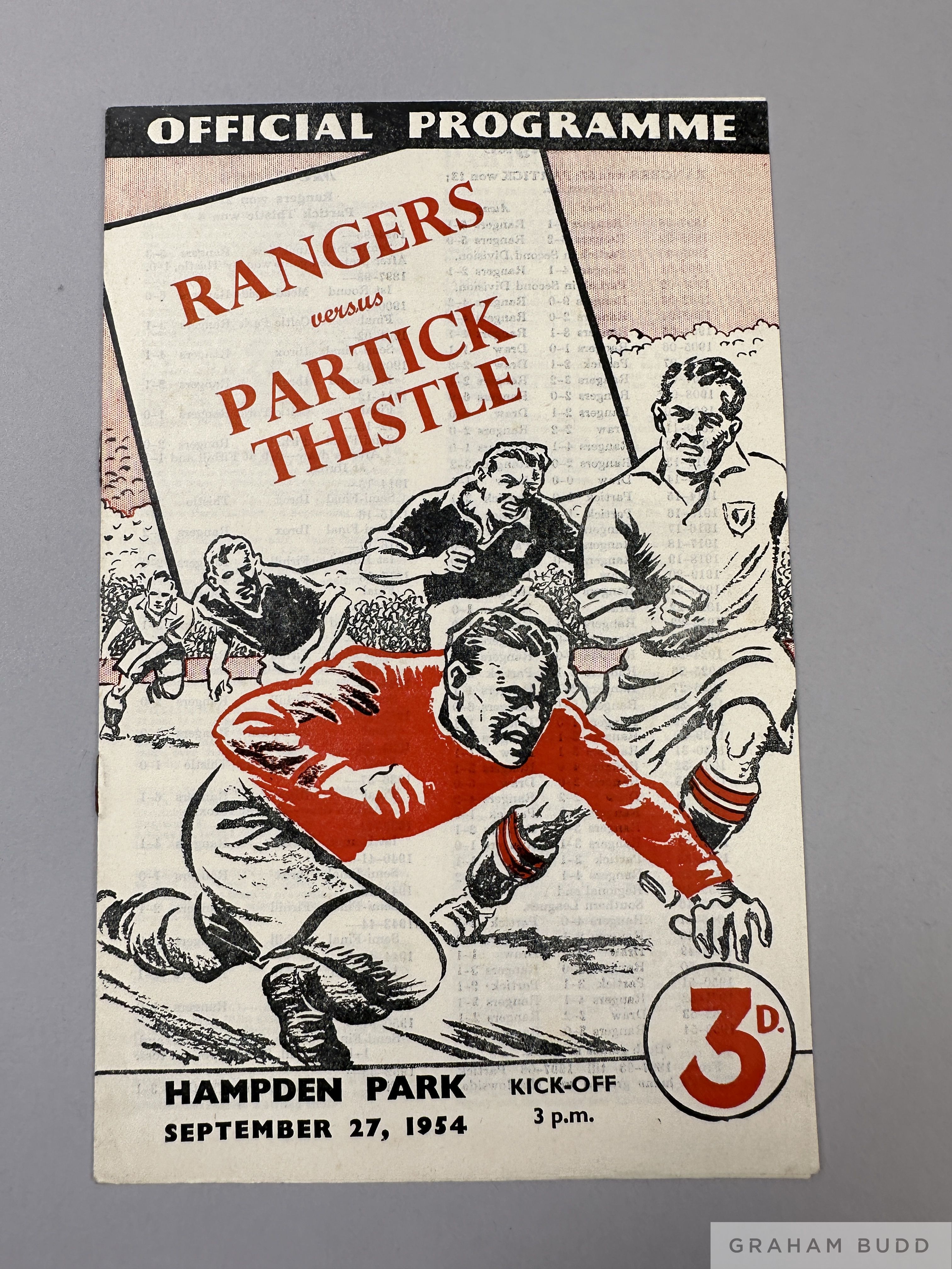 Rangers v. Partick Thistle Glasgow Cup Final match programme, 27th September 1954 overall good