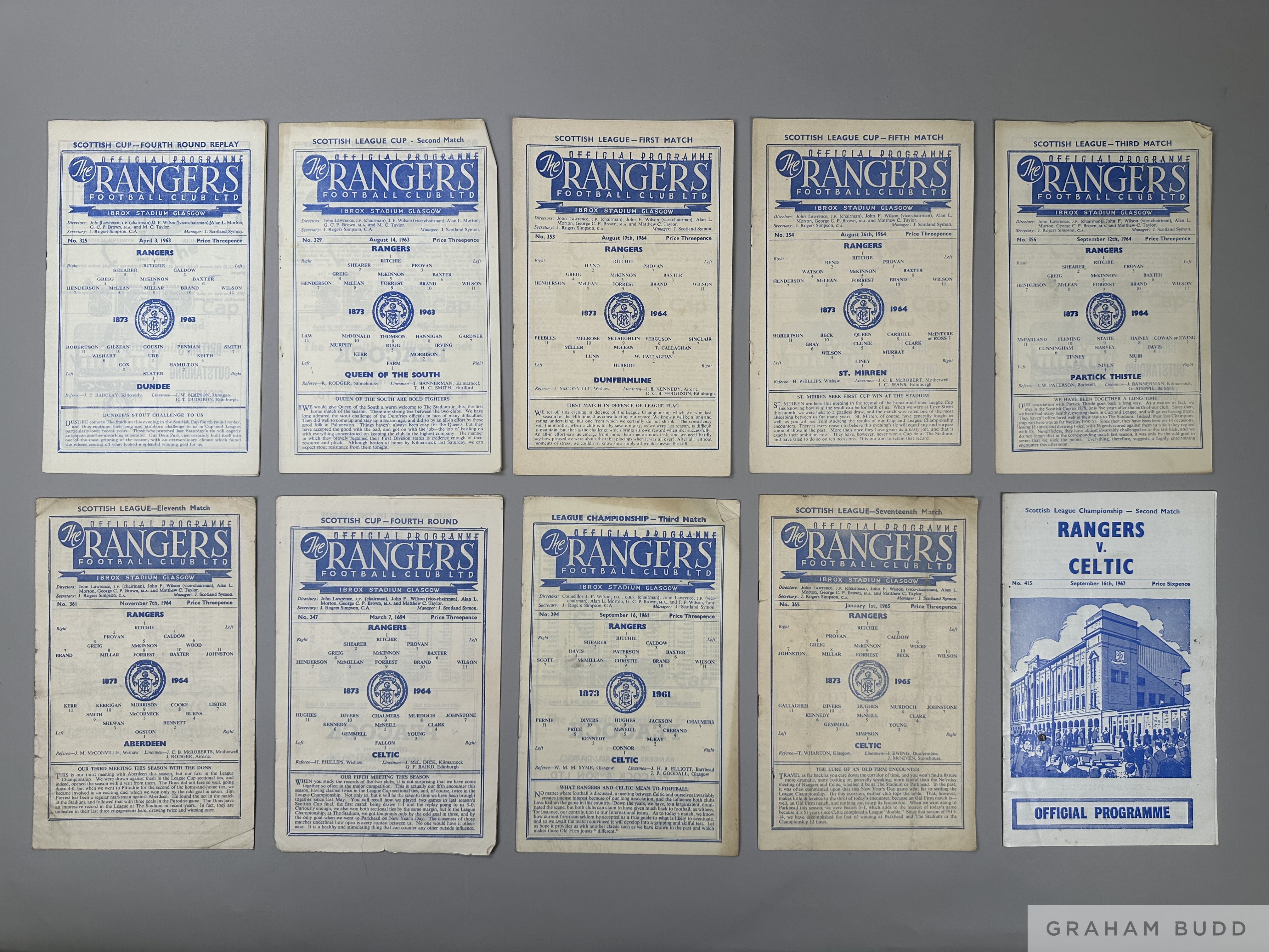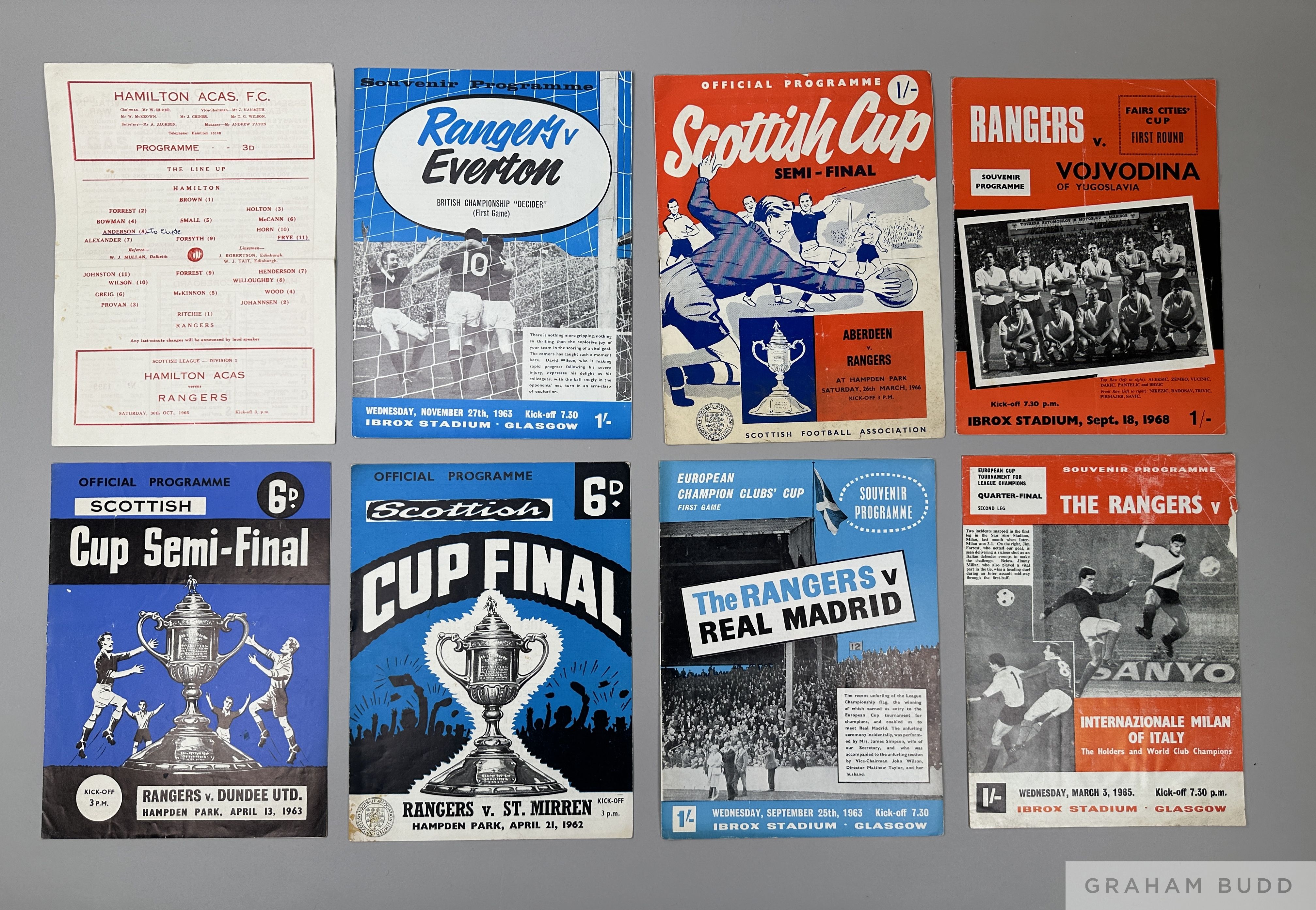 Forty-four Rangers home and away match programmes, 1960s including Scottish Cup Final, Semi Final, Fairs Cup, European Cup, etc., (44)