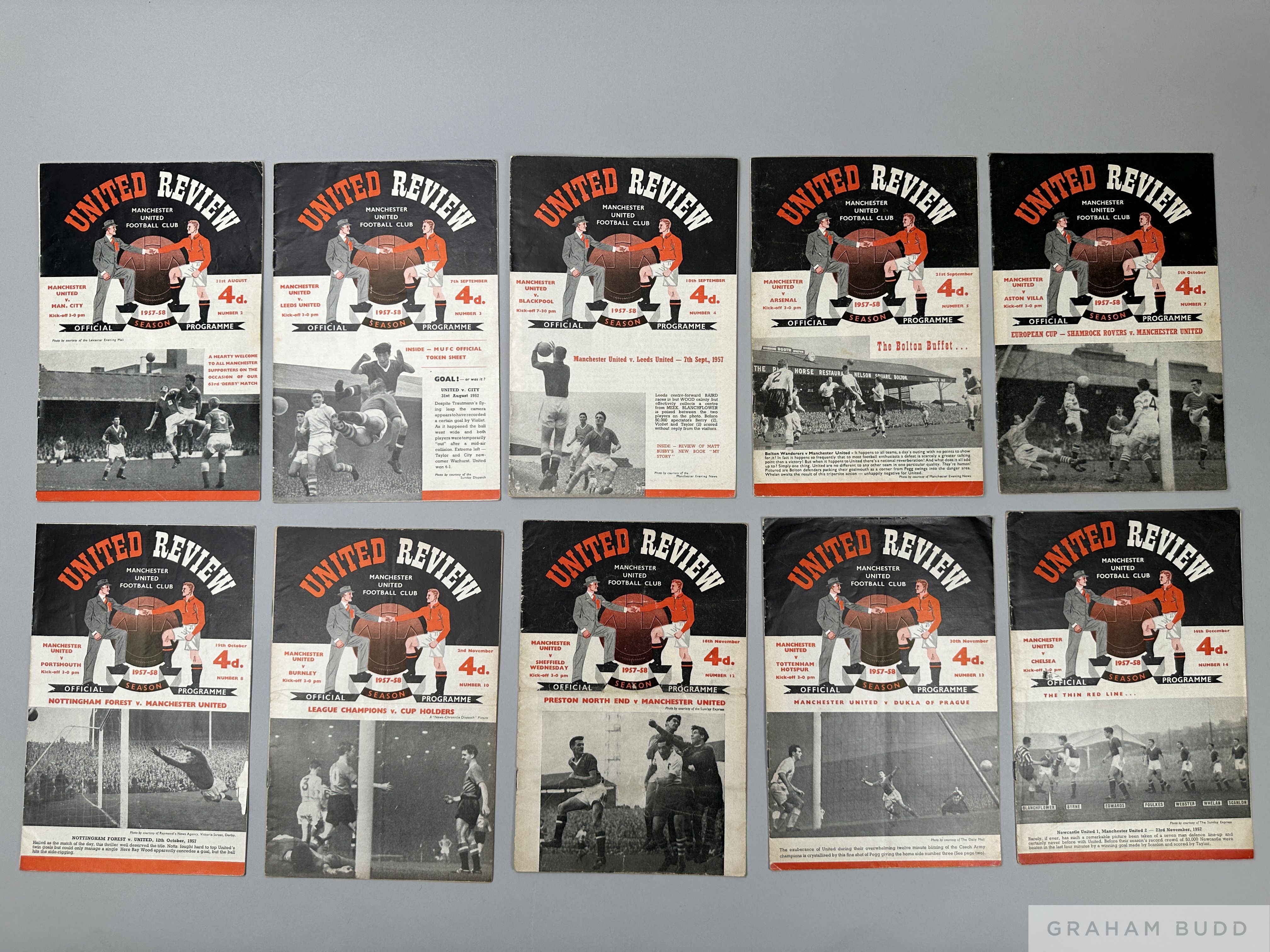 Complete run of Manchester United home league, cup and European programmes, 1957-58 including Shamrock Rovers, 2nd October 1957, Aston Villa, Charity