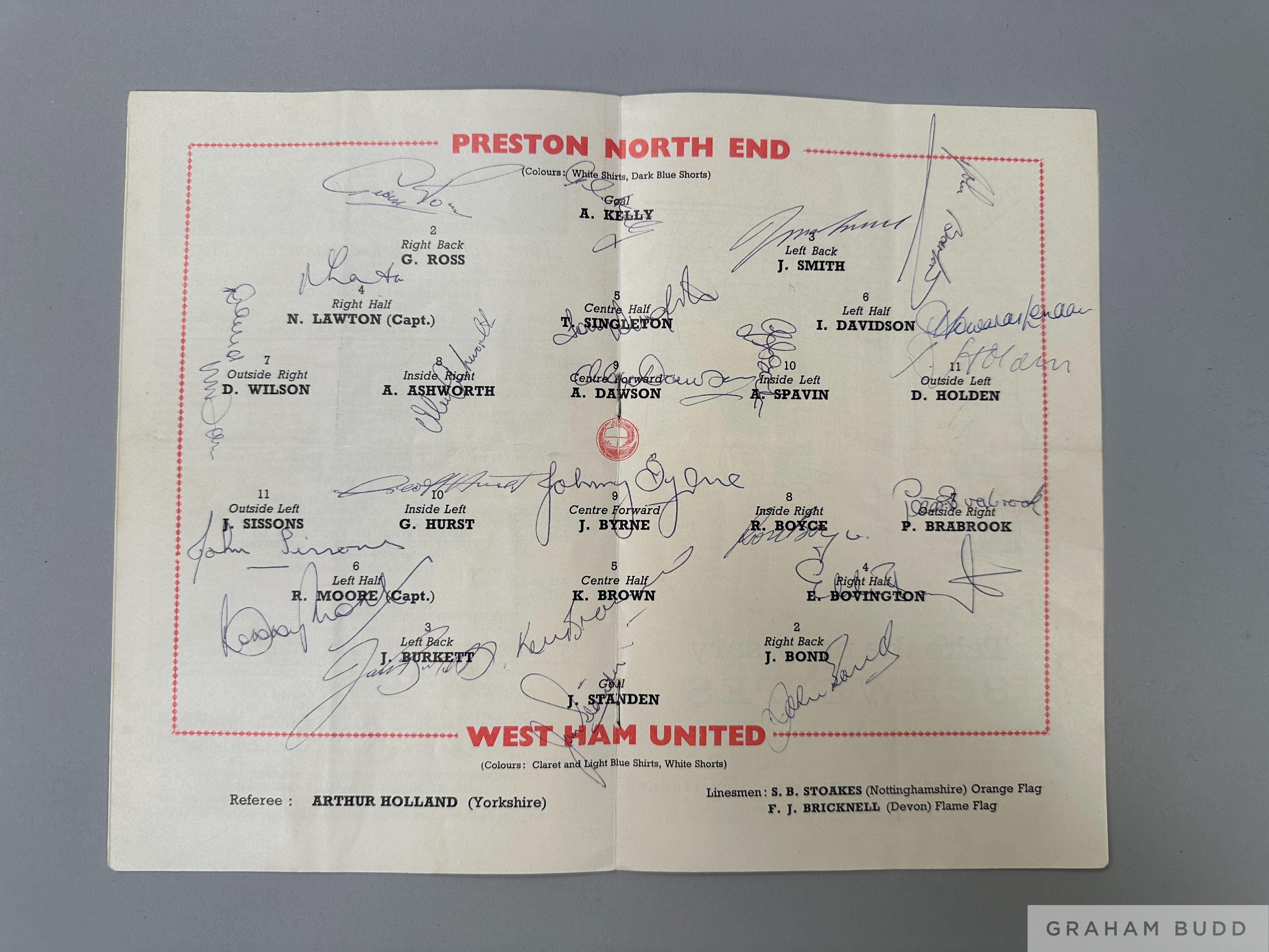 Programme fully autographed in ink by both Preston North End v West Ham United FAC F, 1964, played on 2nd May 1964, clearly signed with no overlappi