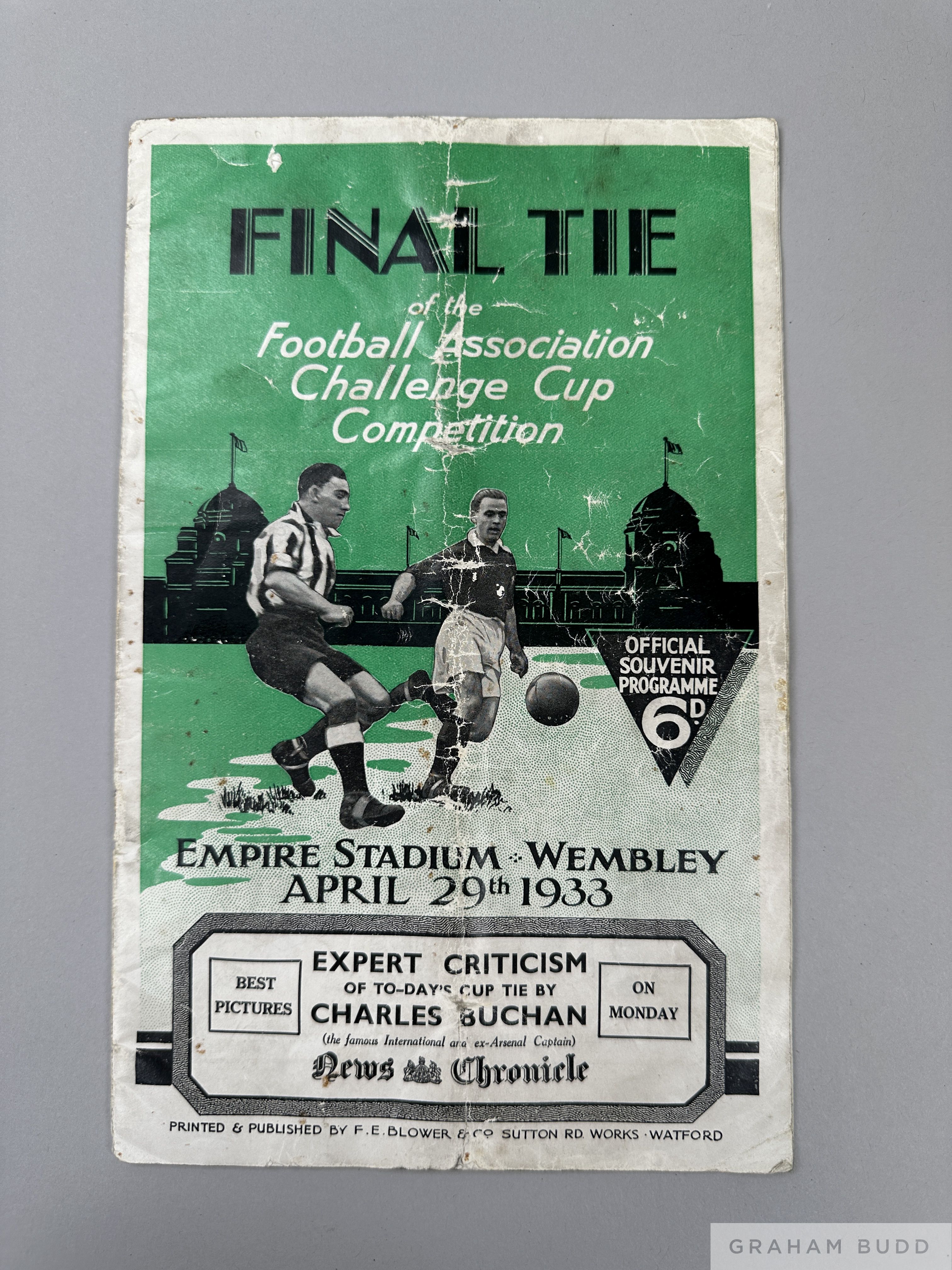 Programme fully autographed in ink by Manchester City 1933 FAC / F, Manchester City v Everton, played on 29th April 1933, clearly signed with no over
