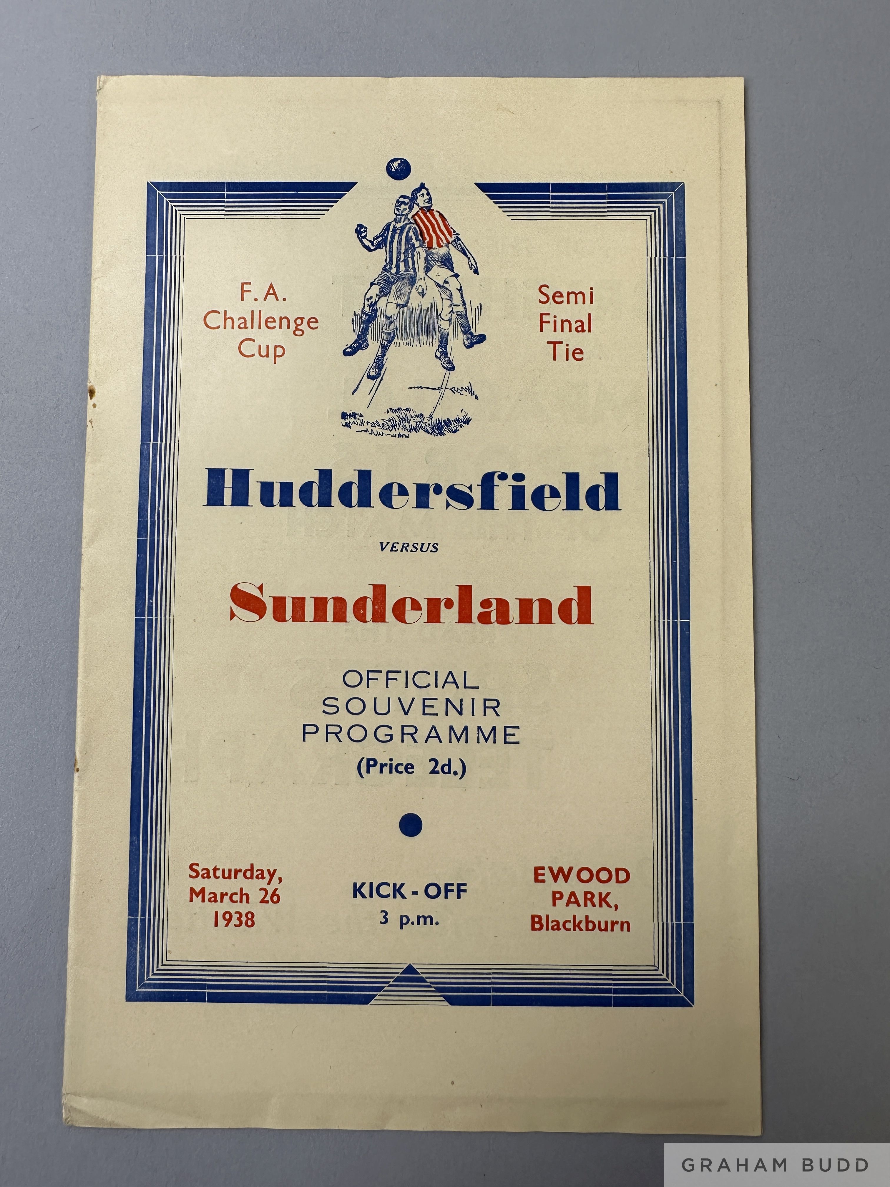 Huddersfield Town v. Sunderland, F.A.Cup Semi-Final match programme, 26th March 1938 at Ewood Park